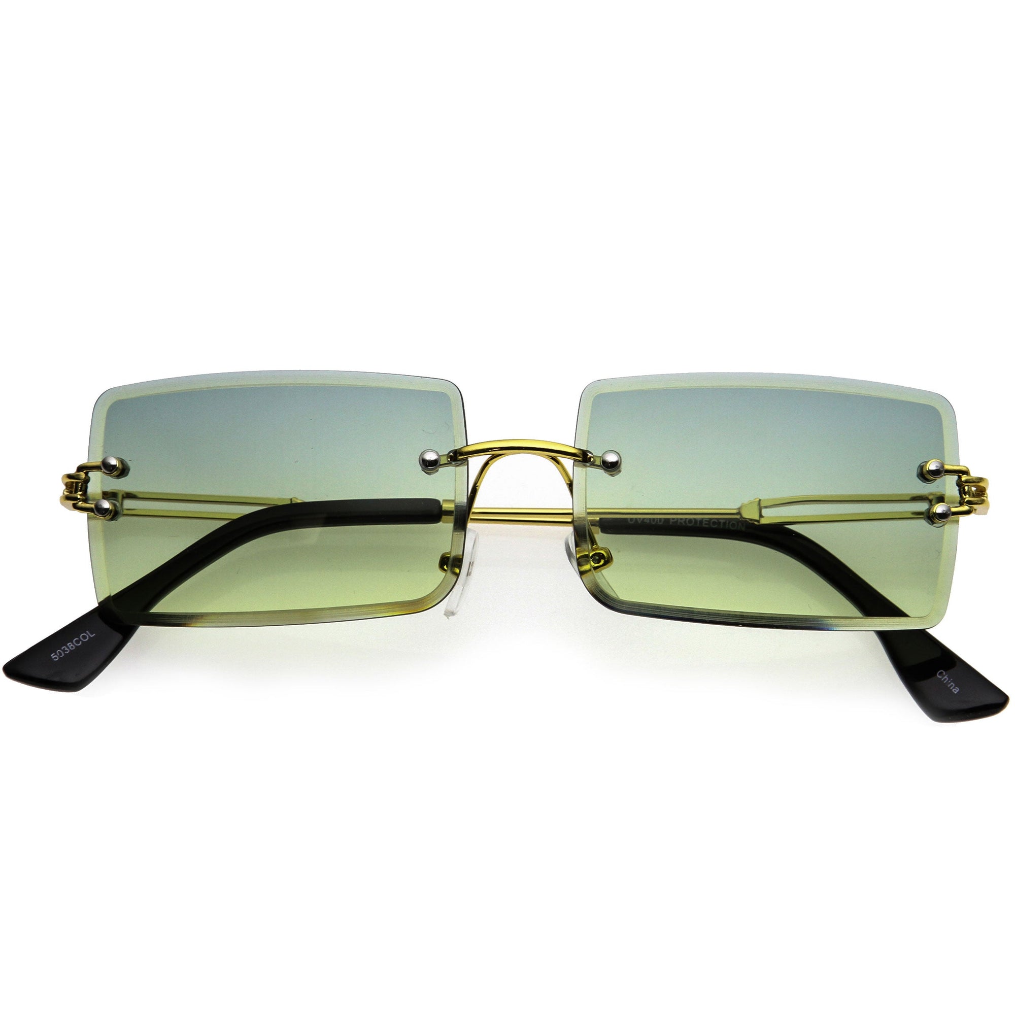 Inspired by the iconic metal square styles, these rectangular sunglasses are specially crafted with bevelled color gradient lenses. The rimless design is perfect for adding a touch of retro to any outfit. Finished with English-style nose pieces, metal hinges, and 100% UV Protected lenses.