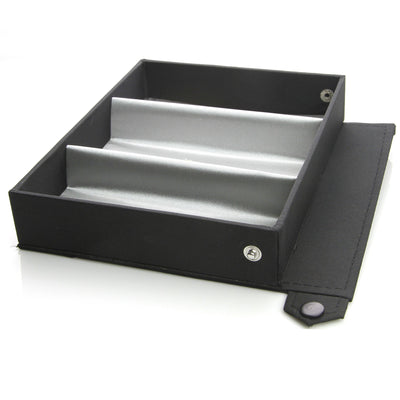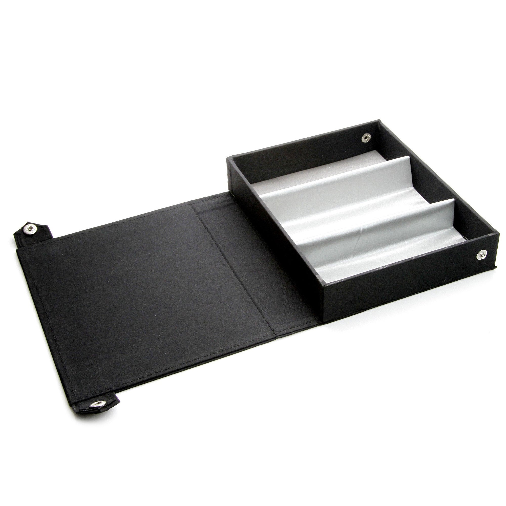 Looking for a unique case to display your wonderful collection? This texturized black vinyl case holds three sunglasses and is great for presentation, traveling or as a gift. Stock is extremely limited and you won't find this case anywhere else. Case is made from a texturized soft vinyl material with a silver soft nylon interior.