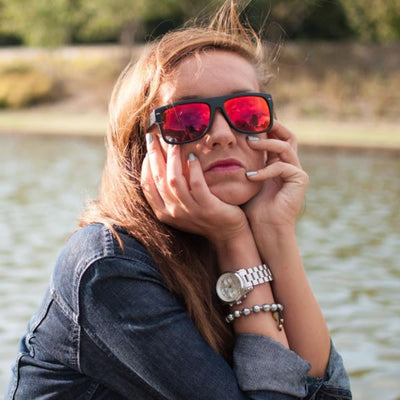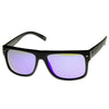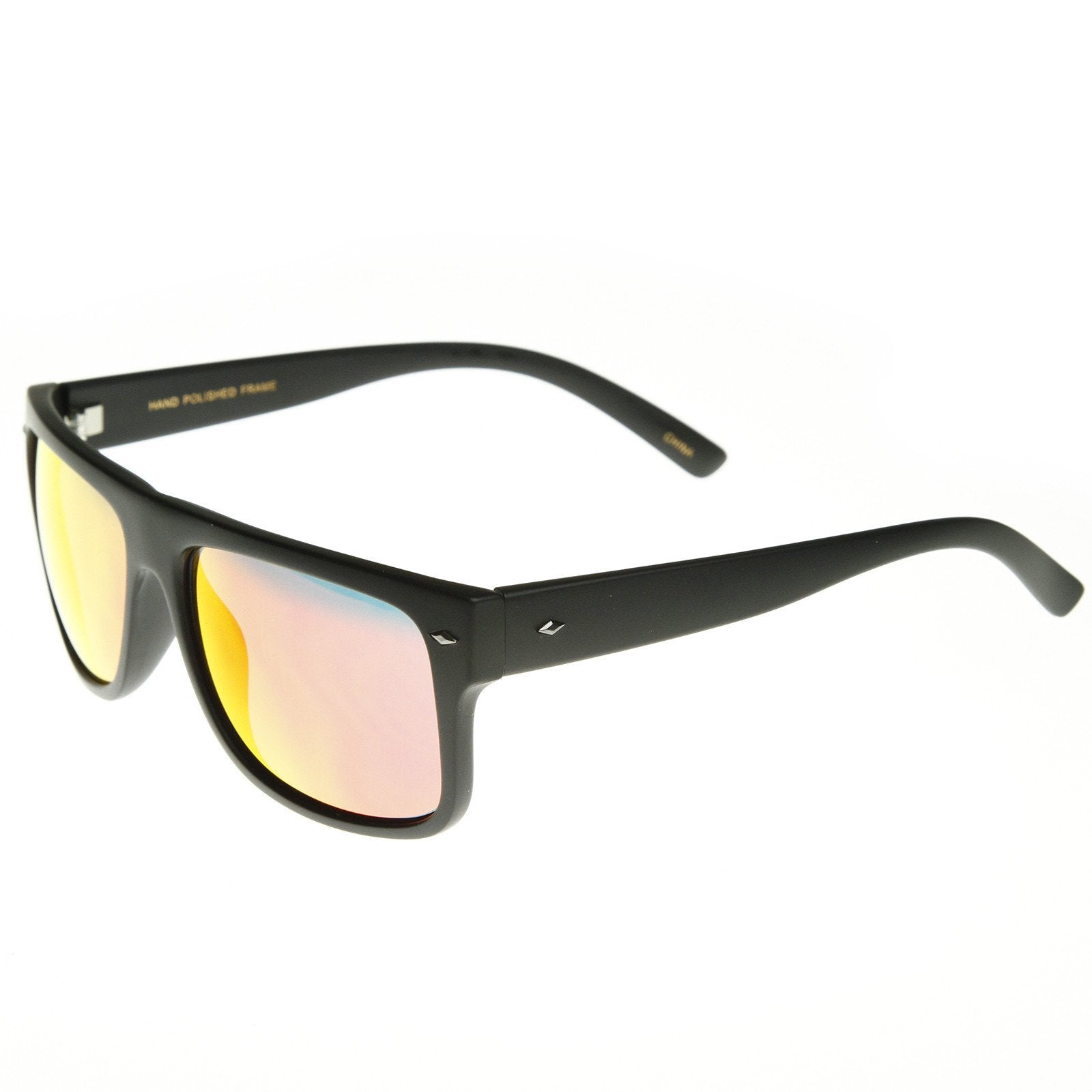 • High quality rectangular action sports sunglasses that features a smooth matte finish, bold lines and an eye-catching color mirror lens. An awesome choice for anyone searching for a modern sporty look this warm and sunny season. Made with an acetate based frame, double-barrel metal hinges, and color mirror UV protected lenses.