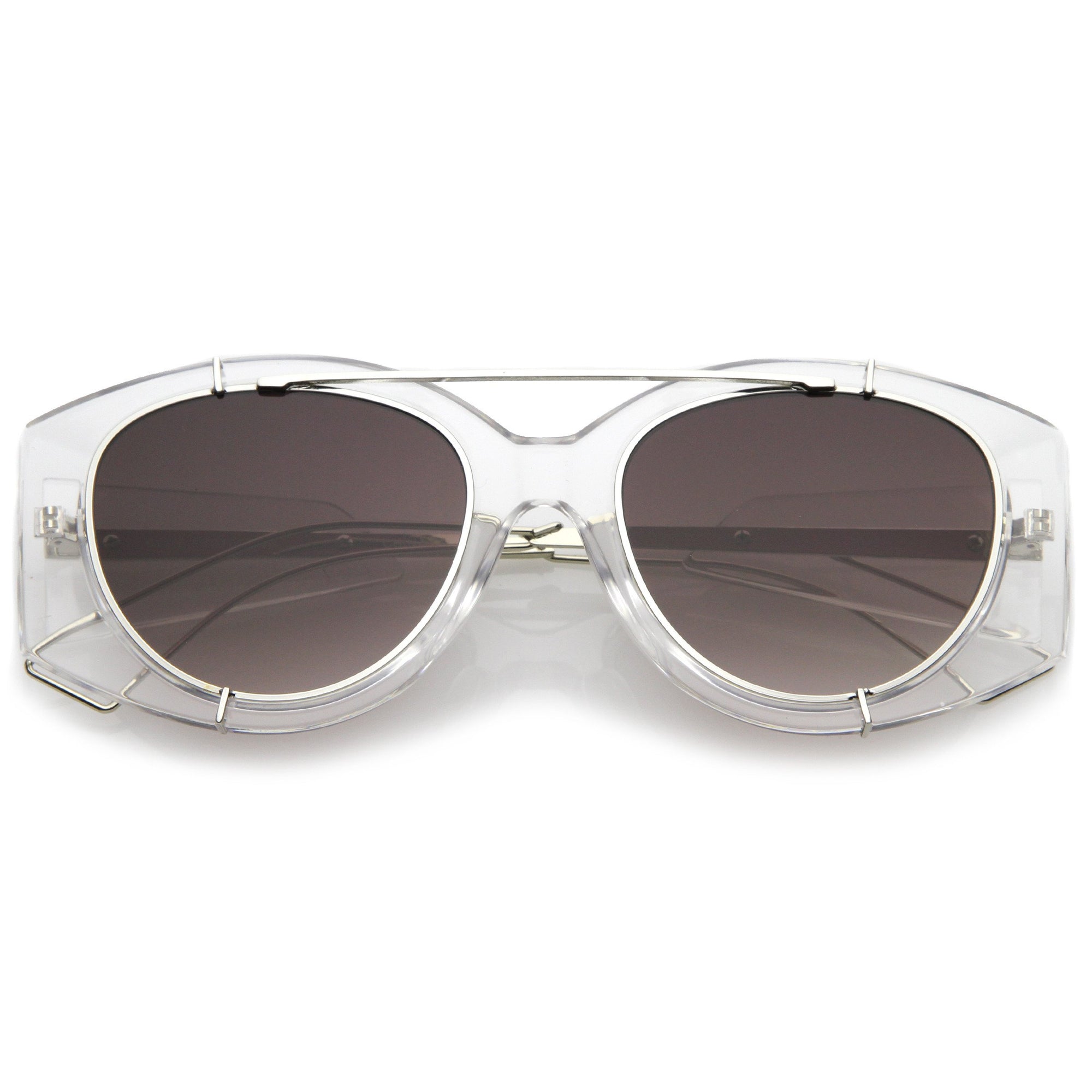 Oversize Retro Modern Round Top Bar Flat Lens Aviator Sunglasses C826