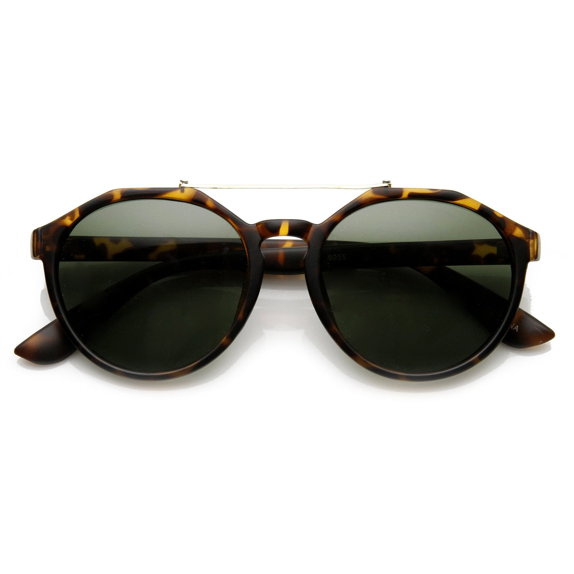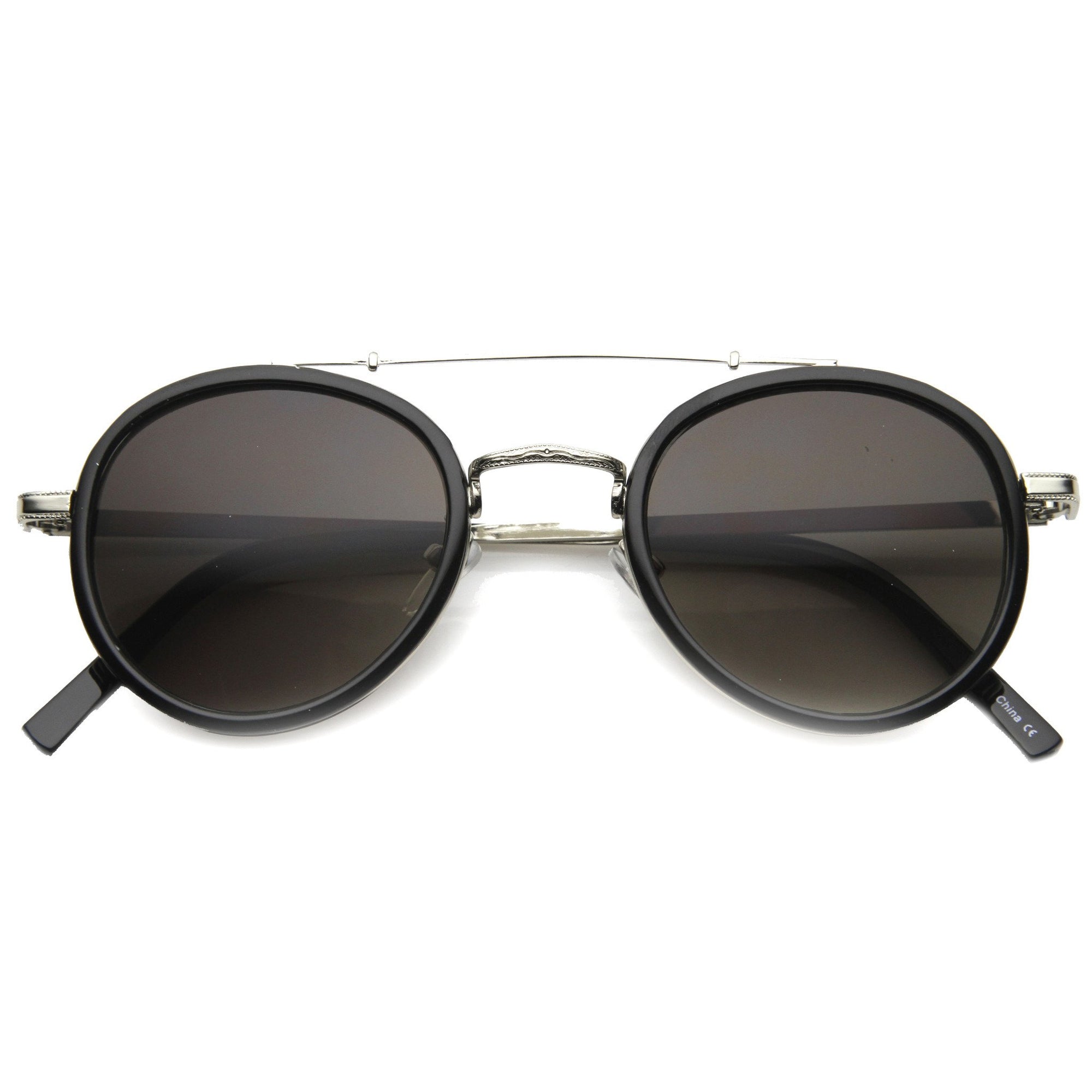 Dapper Double Crossbar Flat Front Round Aviator Sunglasses A144