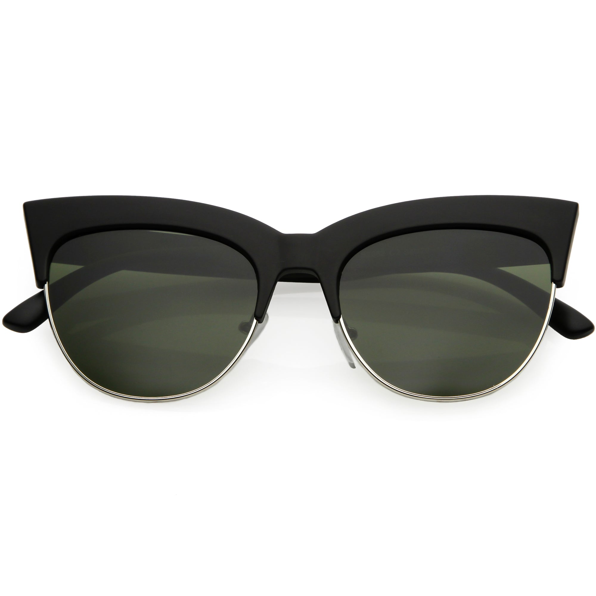 Women's Oversize Flat Lens Half Frame Cat Eye Sunglasses C327