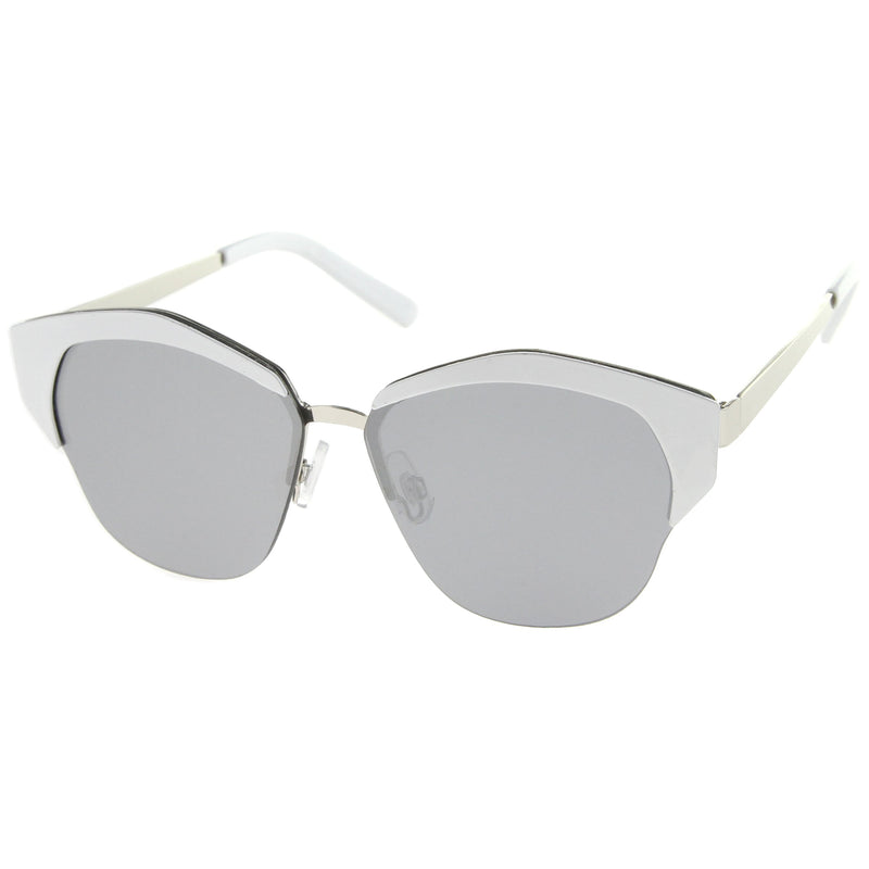 Women's Oversize Half Frame Mirrored Lens Cat Eye Sunglasses A443