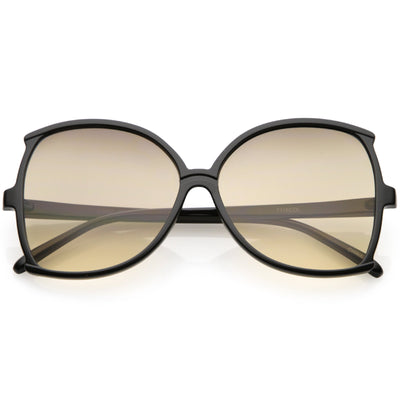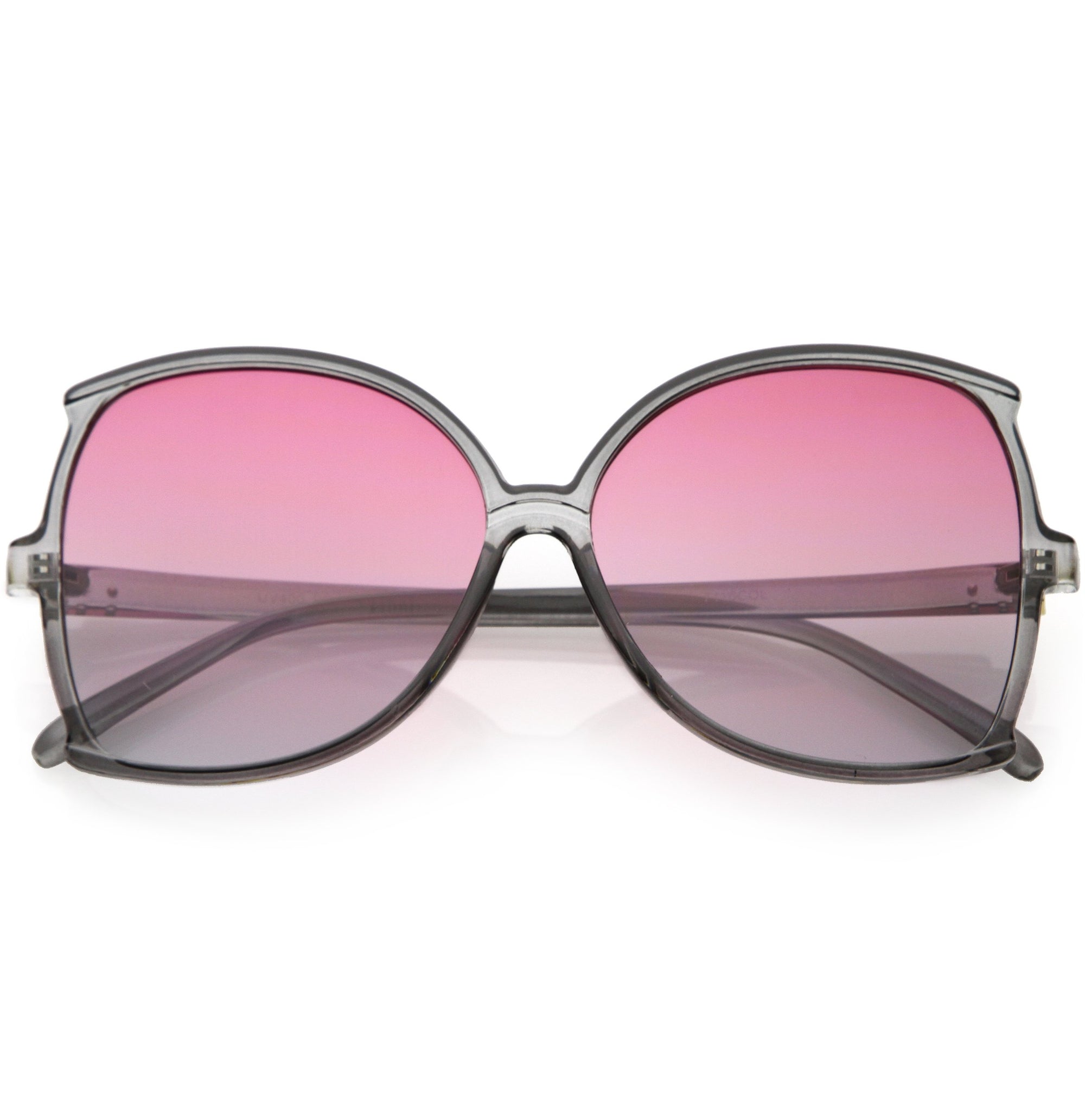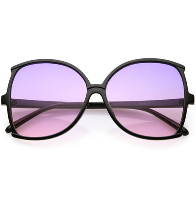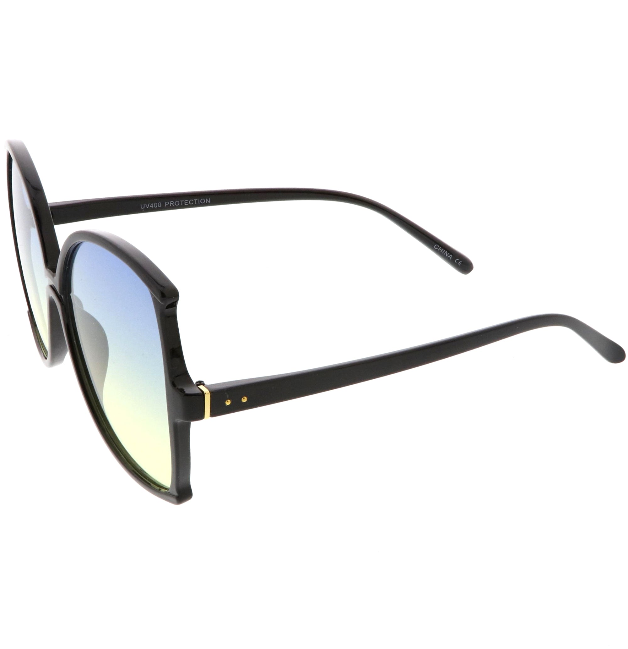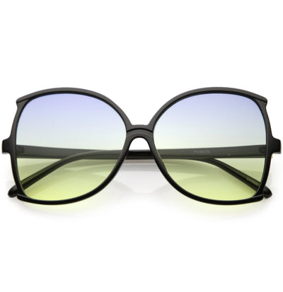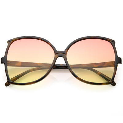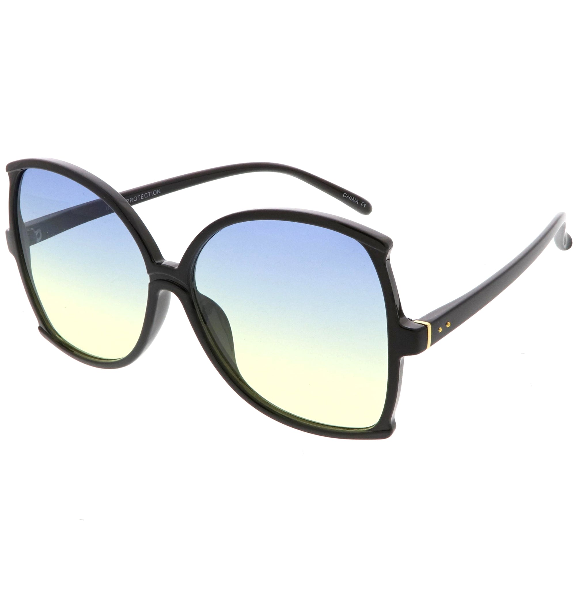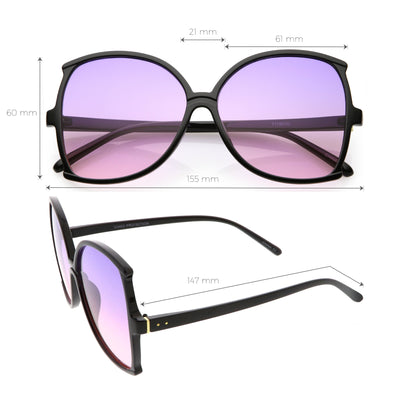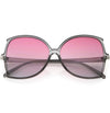 Glamorous and chic, these butterfly sunglasses are designed with an oversize silhouette and slim arms. Finished with color tinted lenses and metal accents at the arms, these stunning sunglasses add the perfect pop of color. Made with a plastic based frame, metal hinges, and 100% UV protected lenses.