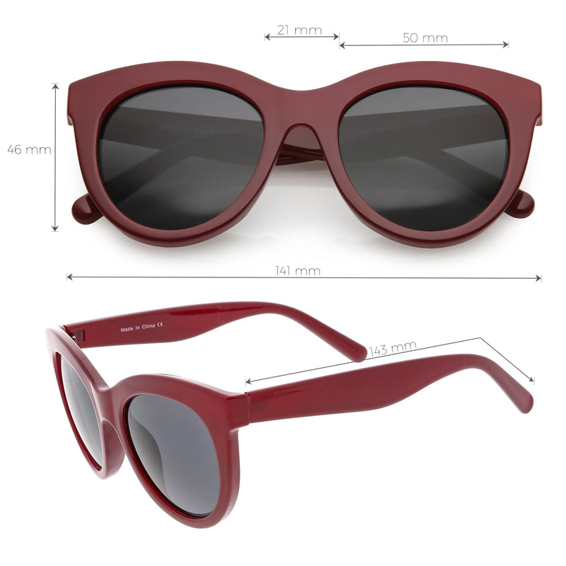Women's Oversize Round Cat Eye Mirrored Flat Lens Sunglasses C842
