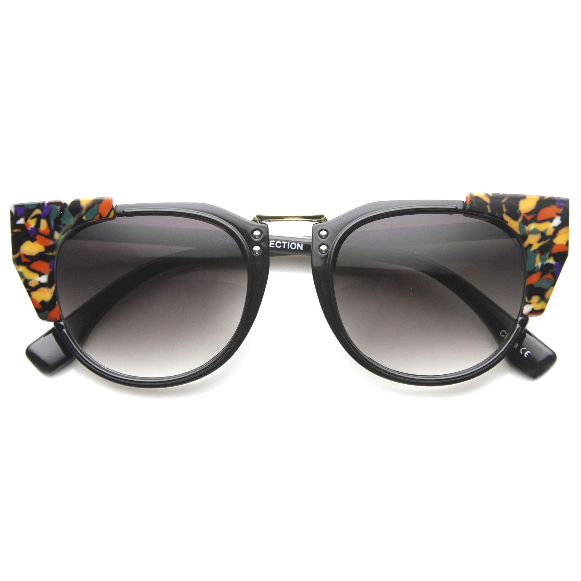 Women's Indie Flat Top Cat Eye Pattern Sunglasses 9986
