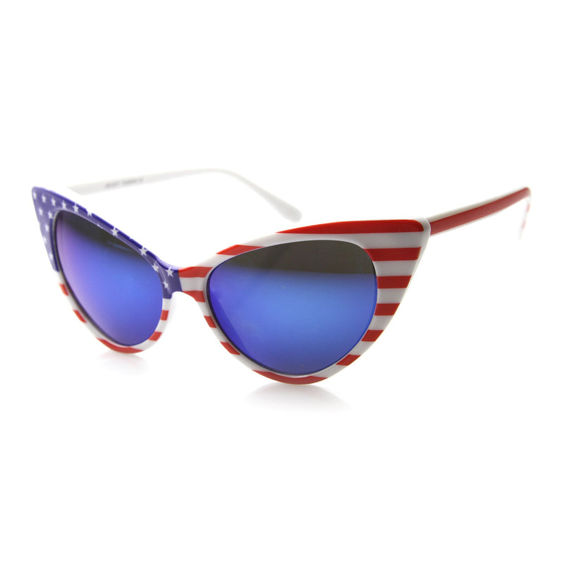 Women's USA Stars And Stripes Mirrored Cat Eye Sunglasses 9779