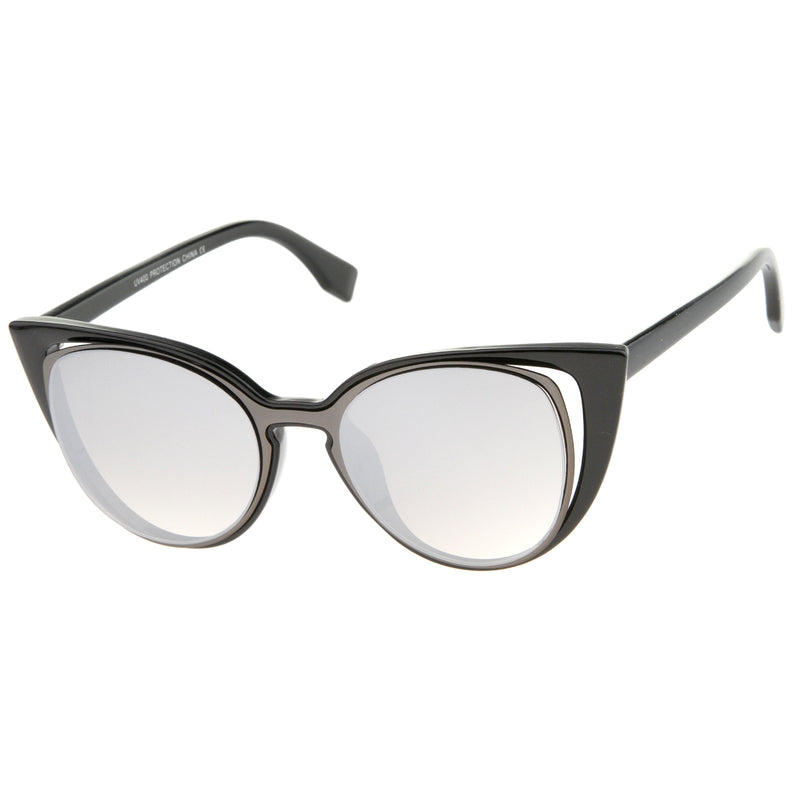 Super Oversize Window Cat Eye Sunglasses With Mirror Lenses 9952