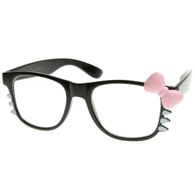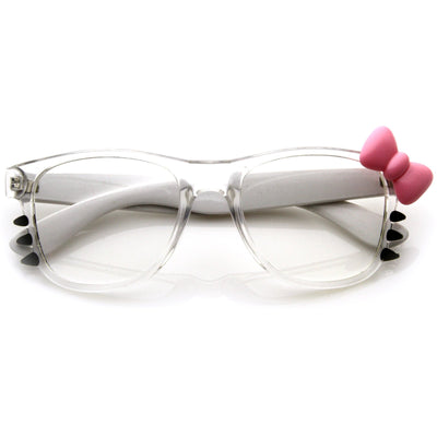 Cute Womens Kitty Bow Clear Lens Glasses With Whiskers 8499