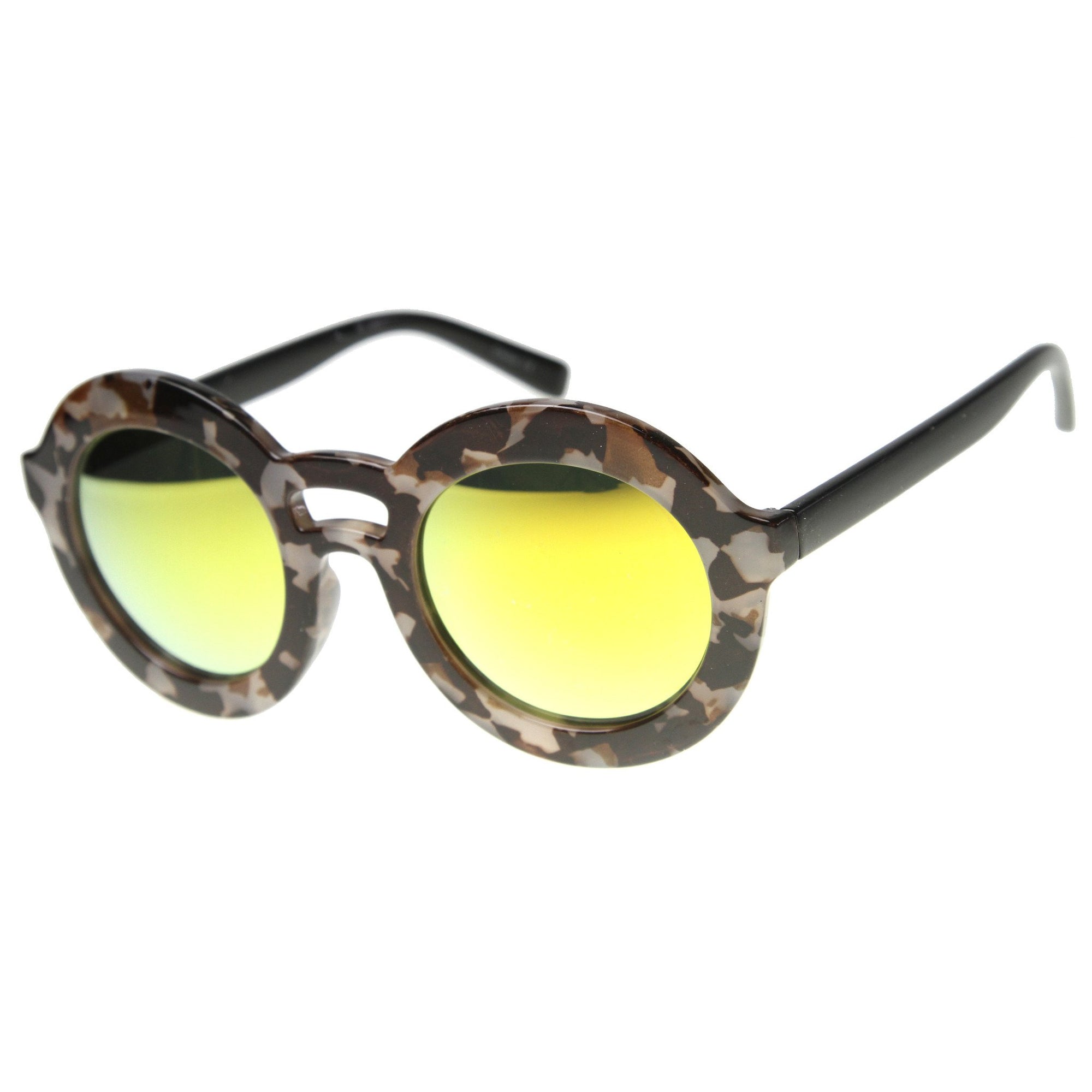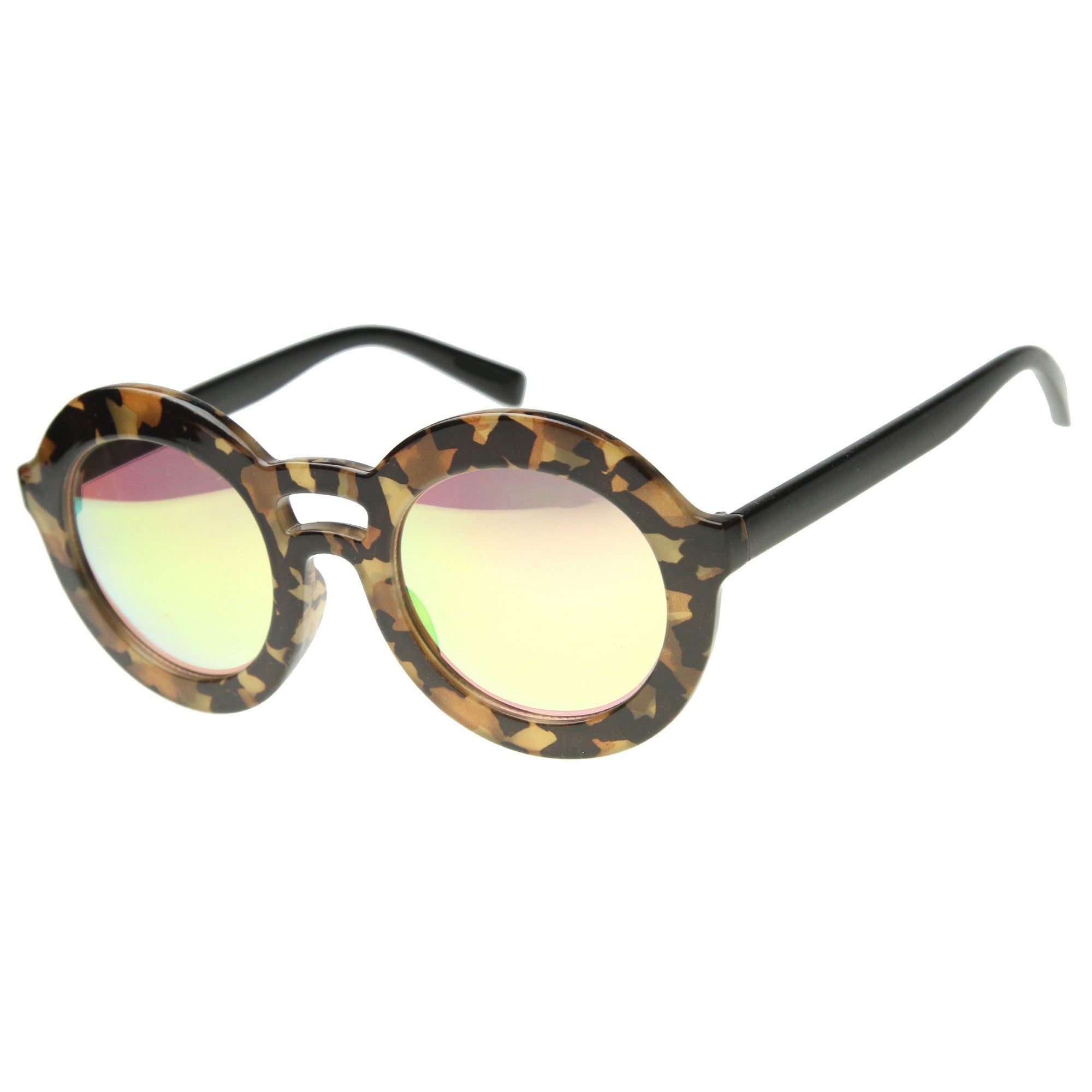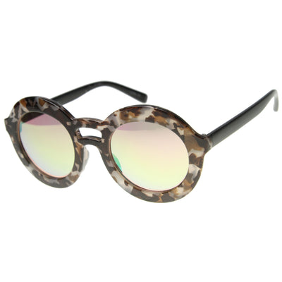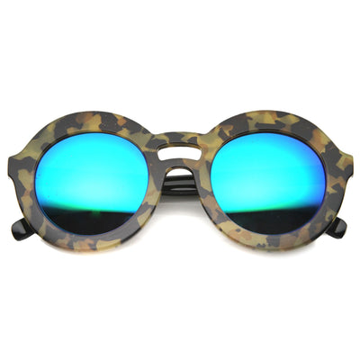 Women's Round Double Bridge Mirror Lens Sunglasses 9851