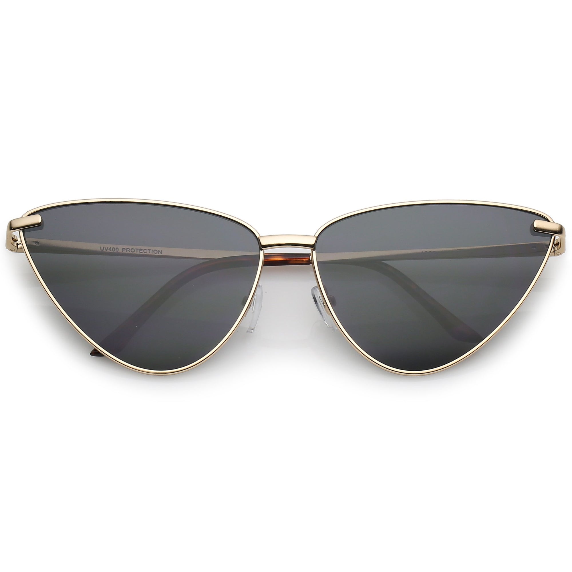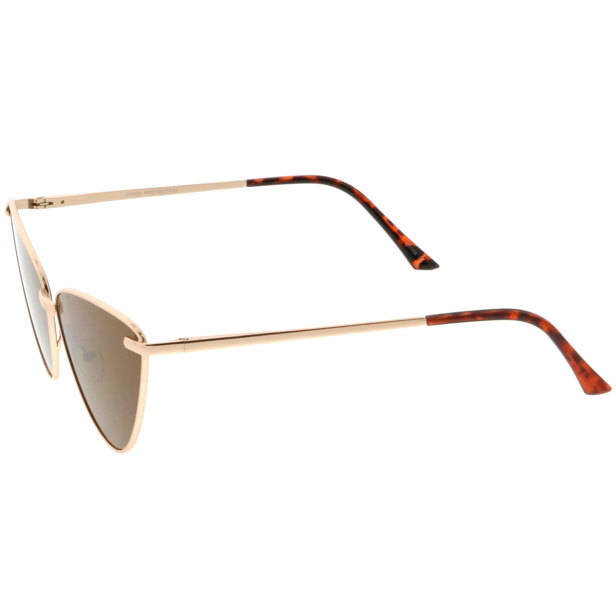 • Oversize metal cat eye sunglasses with high sitting arms anywhere you go! Designed with a thin metal frame and neutral-colored lenses, these flat lens glasses are perfect to pair with any outfit. Made with a metal based frame, adjustable English style nose pieces, spring metal hinges, plastic arm tips, and 100% UV protected lenses.