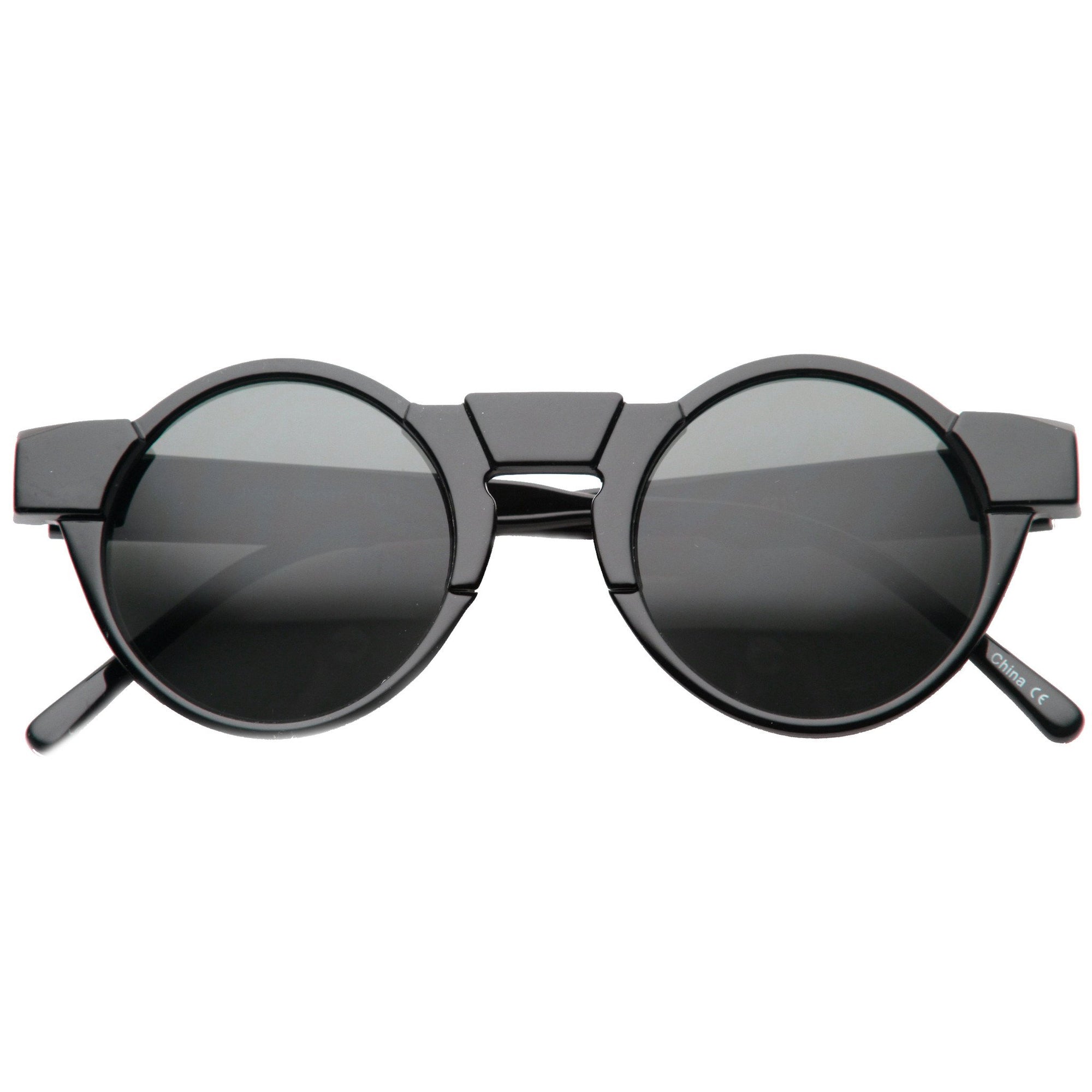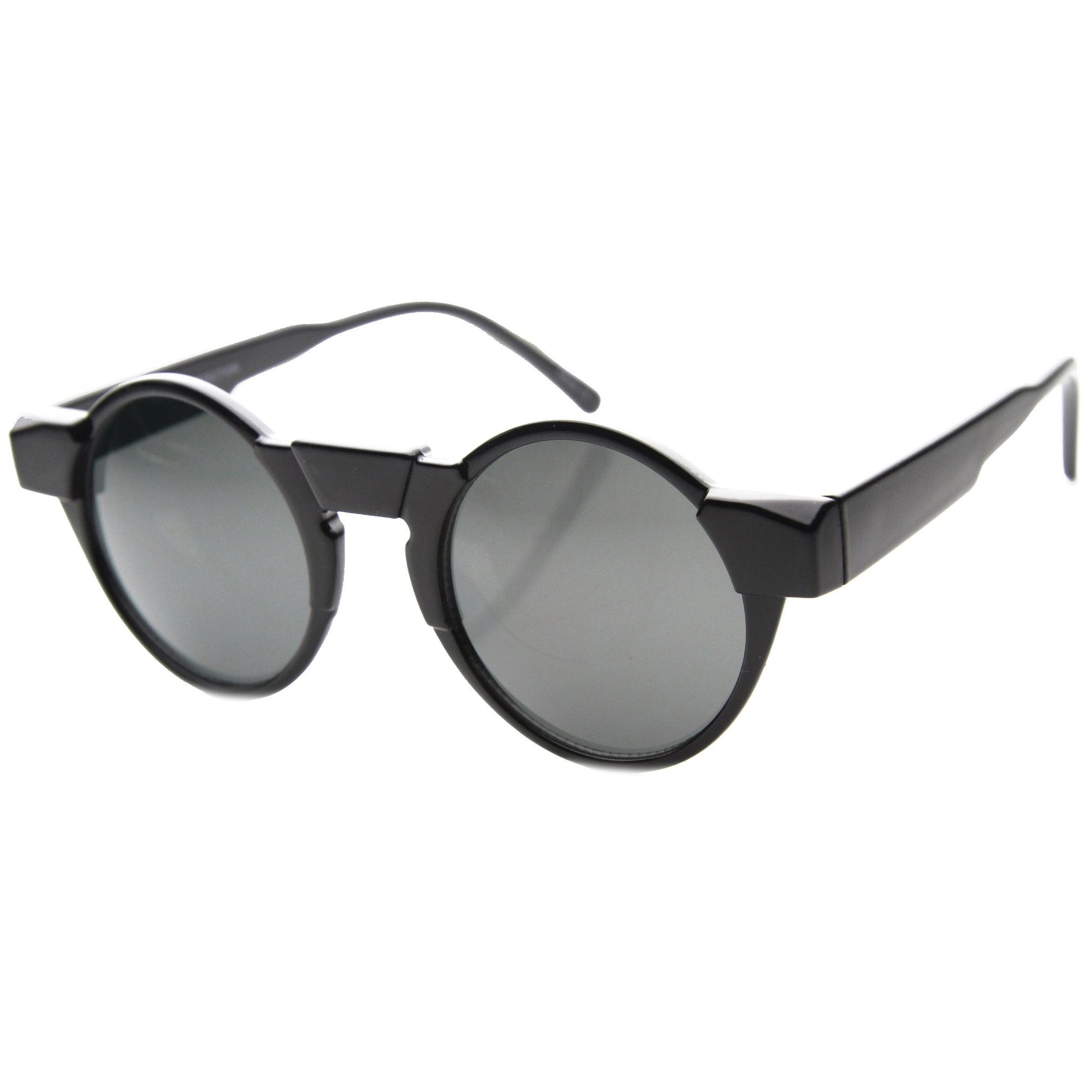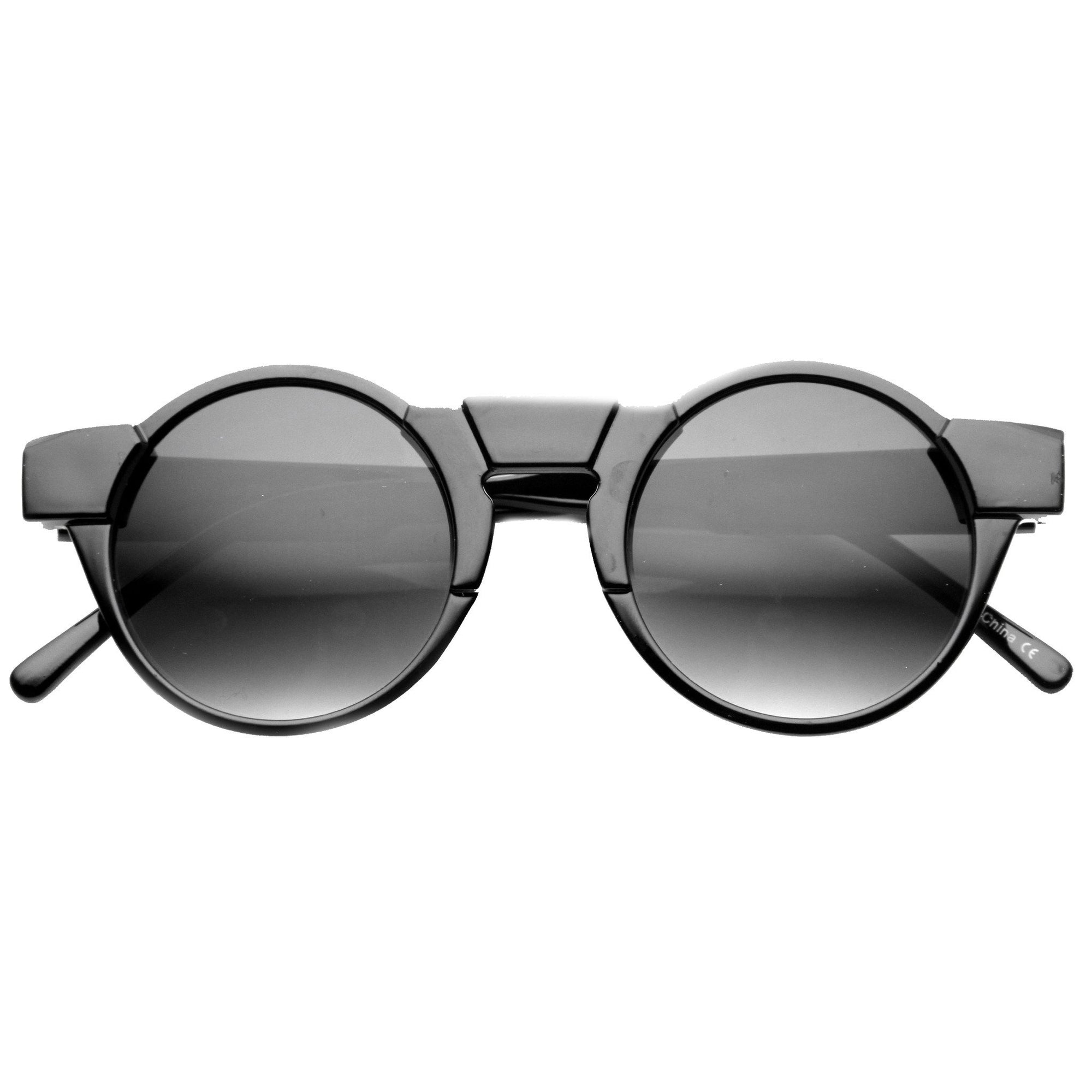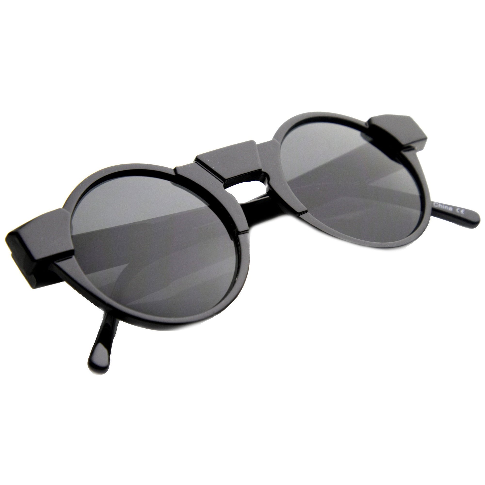 Unique Retro Futuristic Key Hole Round Horned Rim Sunglasses 9502