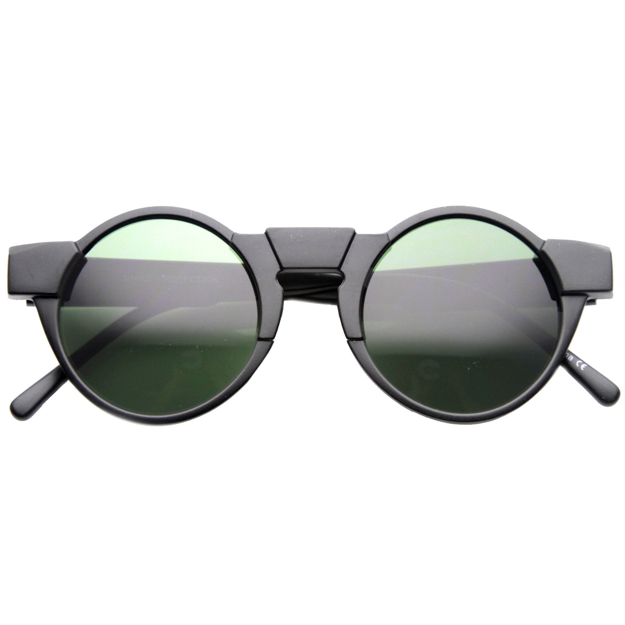 • Go for a retro look with this vintage inspired round circular shape that features a unique frame design and keyhole bridge. Made with a quality plastic frame, metal hinges, and polycarbonate UV protected lenses.