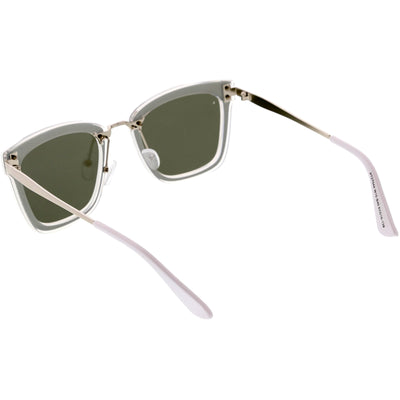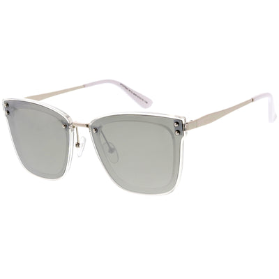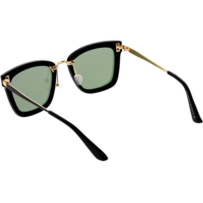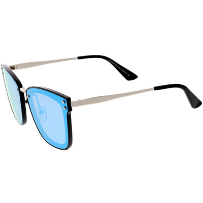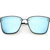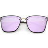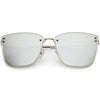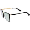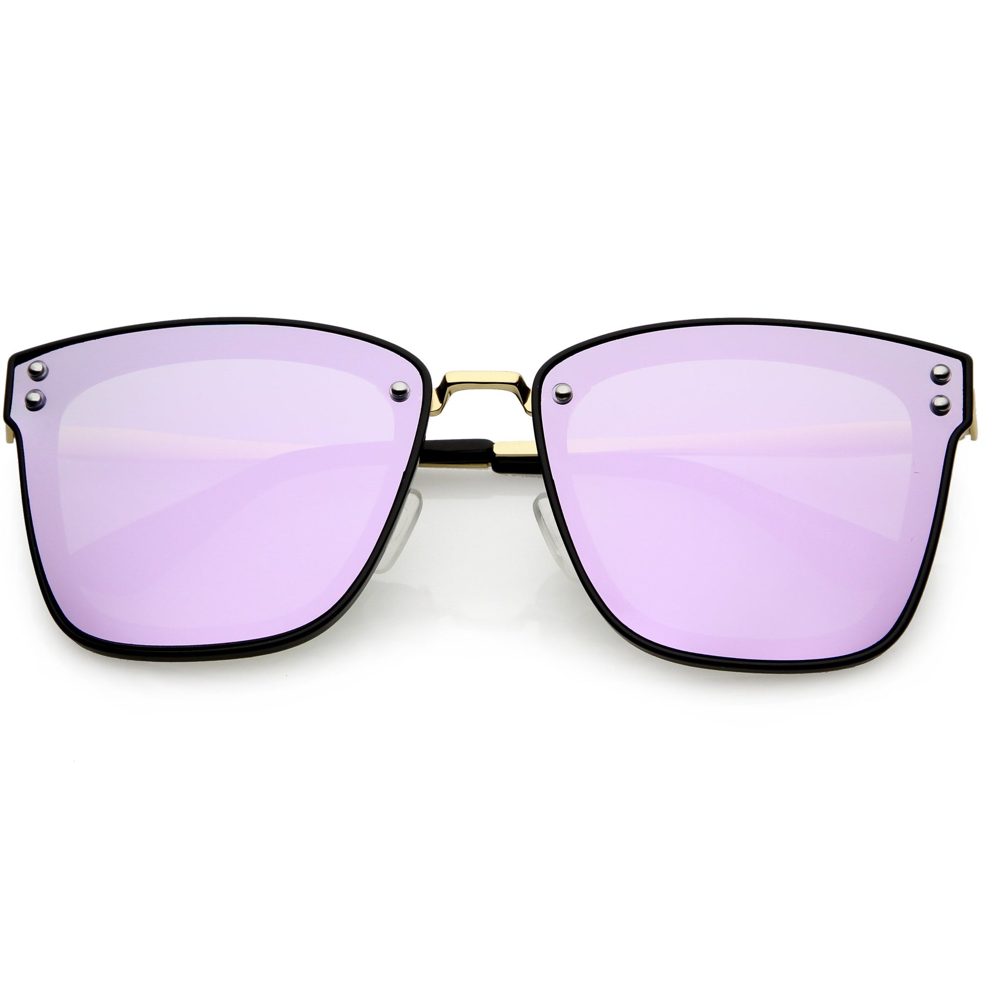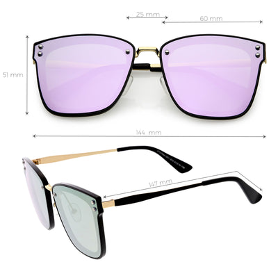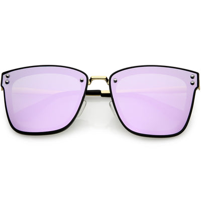 Perfect for adding a pop of color to your look, these square sunglasses are exquisitely designed with an oversize square frame and colored mirror polarized flat lenses that omit glare and reduce brightness. Accented with slim metal arms, a metal nose bridge, and metal rivet accents that give it a luxurious look, these stunning polarized square sunglasses are the perfect combination of style and functionality. Made with a plastic and metal based frame, adjustable English style nose pieces, metal hinges, and 100% UV protective lenses.