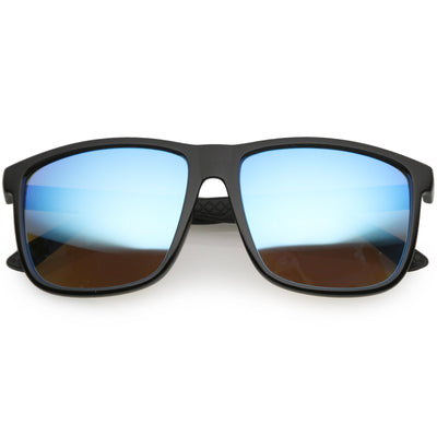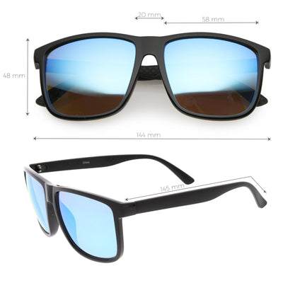 A great go-to style for summer, these oversize horn rimmed sunglasses are designed with a shiny front frame and contrasting matte-finished arms for a sleek effect. Designed with stunning colored mirror square lenses and neutral colored square lenses, these versatile sunglasses are an essential style that can be worn year round. Made with a plastic based frame, reinforced metal hinges, and 100% UV protected lenses.