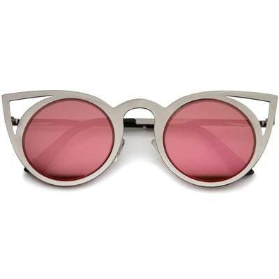 Women's Laser Cut Mirrored Lens Cat Eye Sunglasses A410