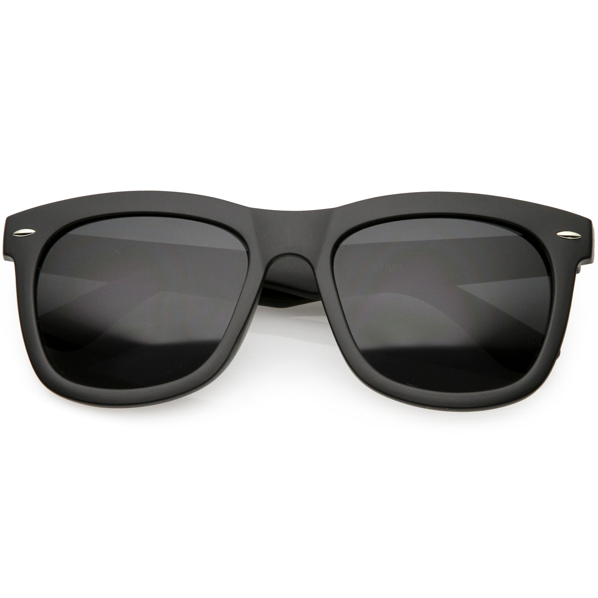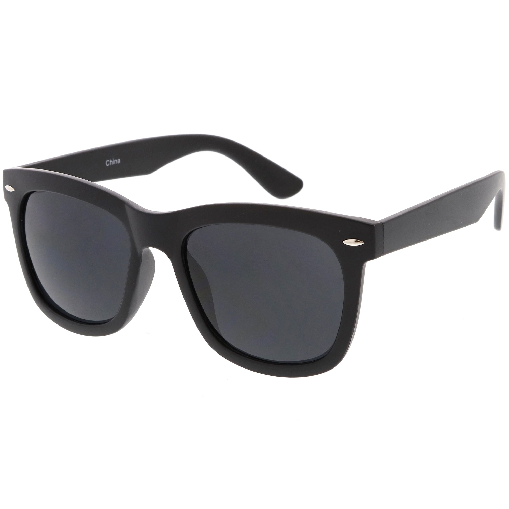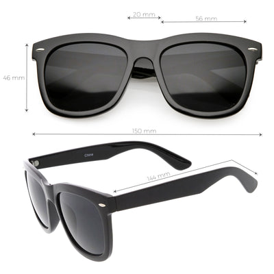 • Featuring a thick oversized frame, these horn rimmed sunglasses have a modern design with stylishly wide arms and metal rivet accents. Complete with neutral colored square lenses with a super dark tint, these horn rimmed sunglasses can be paired with any look. Made with a plastic based frame, reinforced metal hinges, and 100% UV protected lenses.