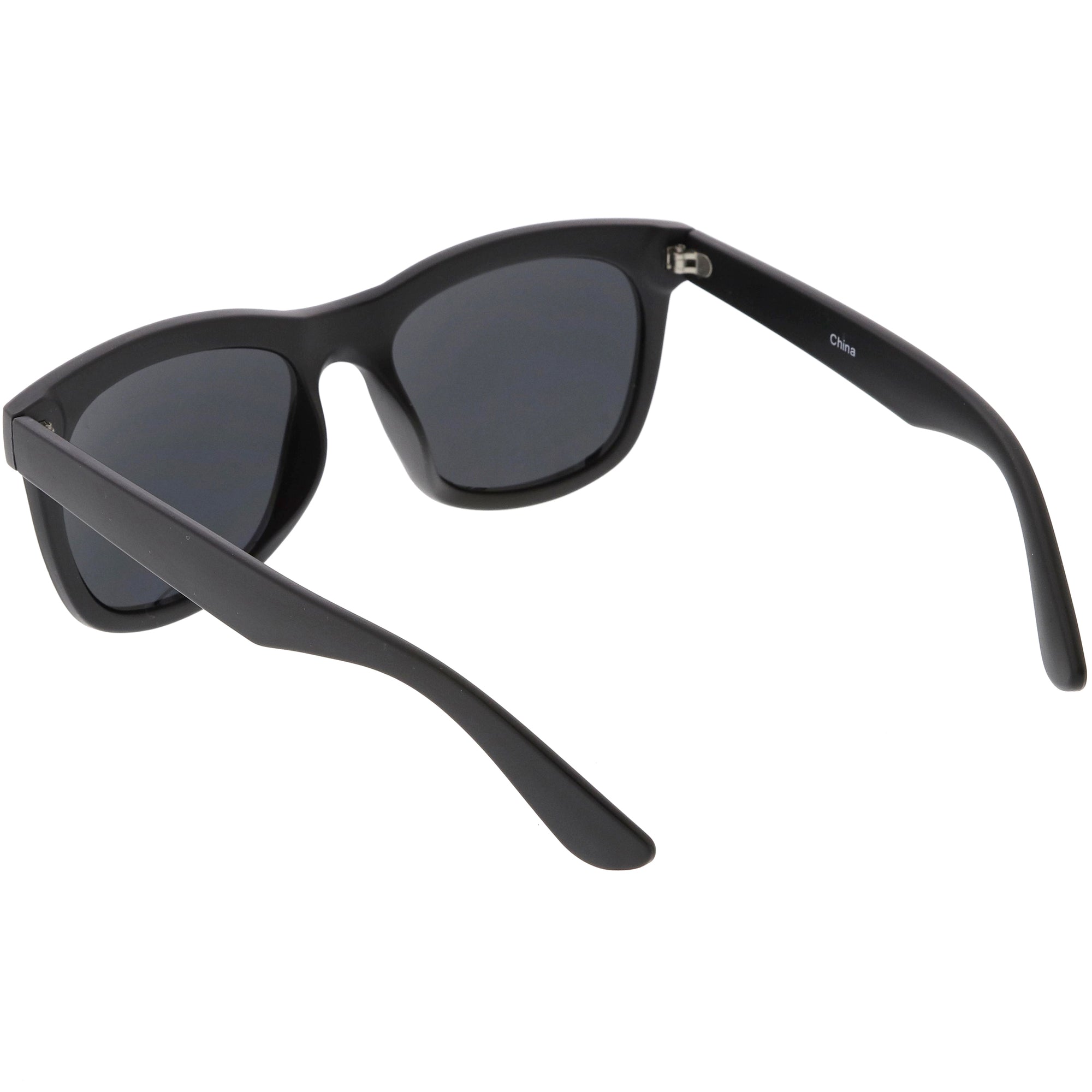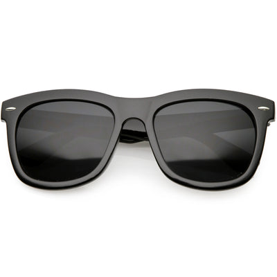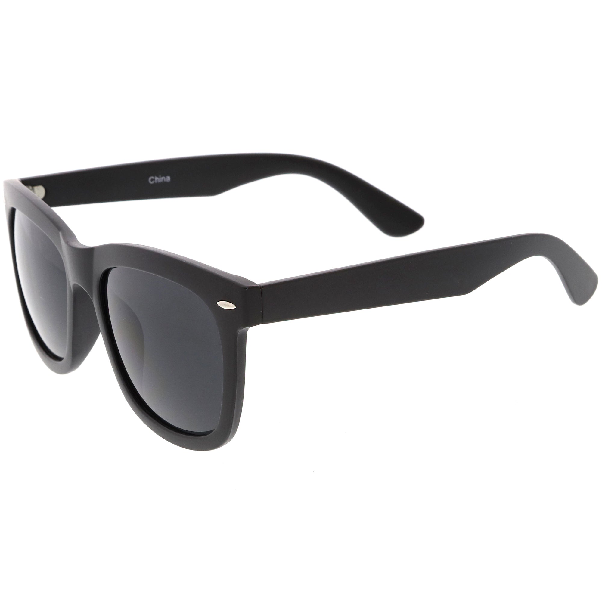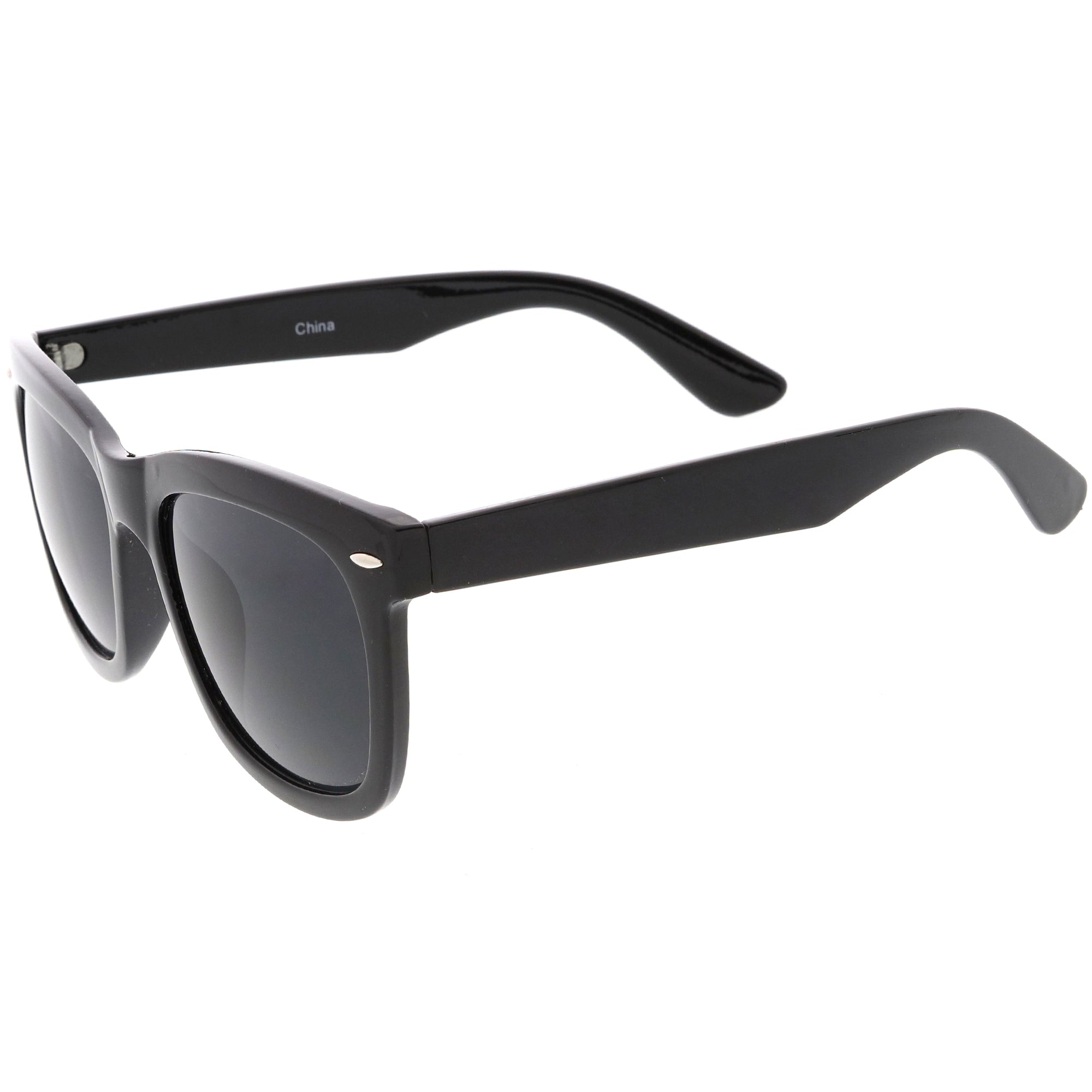 • Featuring a thick oversized frame, these horn rimmed sunglasses have a modern design with stylishly wide arms and metal rivet accents. Complete with neutral colored square lenses with a super dark tint, these horn rimmed sunglasses can be paired with any look. Made with a plastic based frame, reinforced metal hinges, and 100% UV protected lenses.