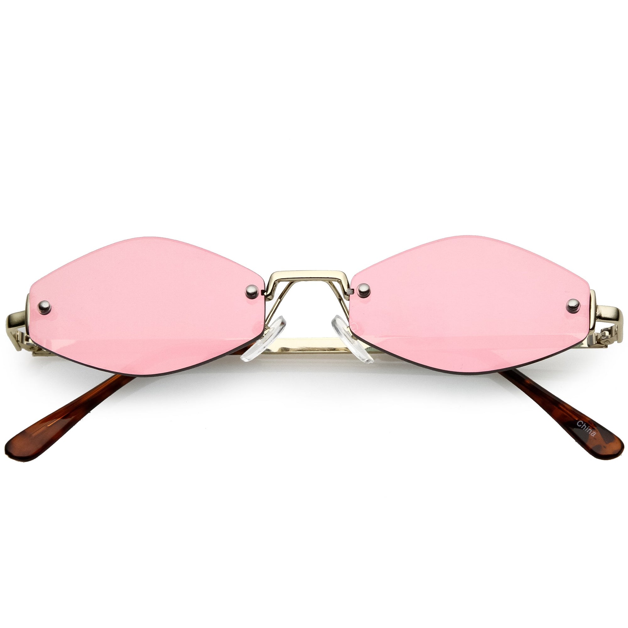 Luxe Bevelled Gradient Lens Small Rimless Geometric Sunglasses D215