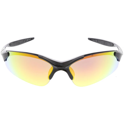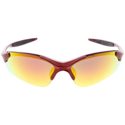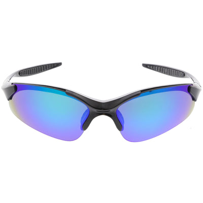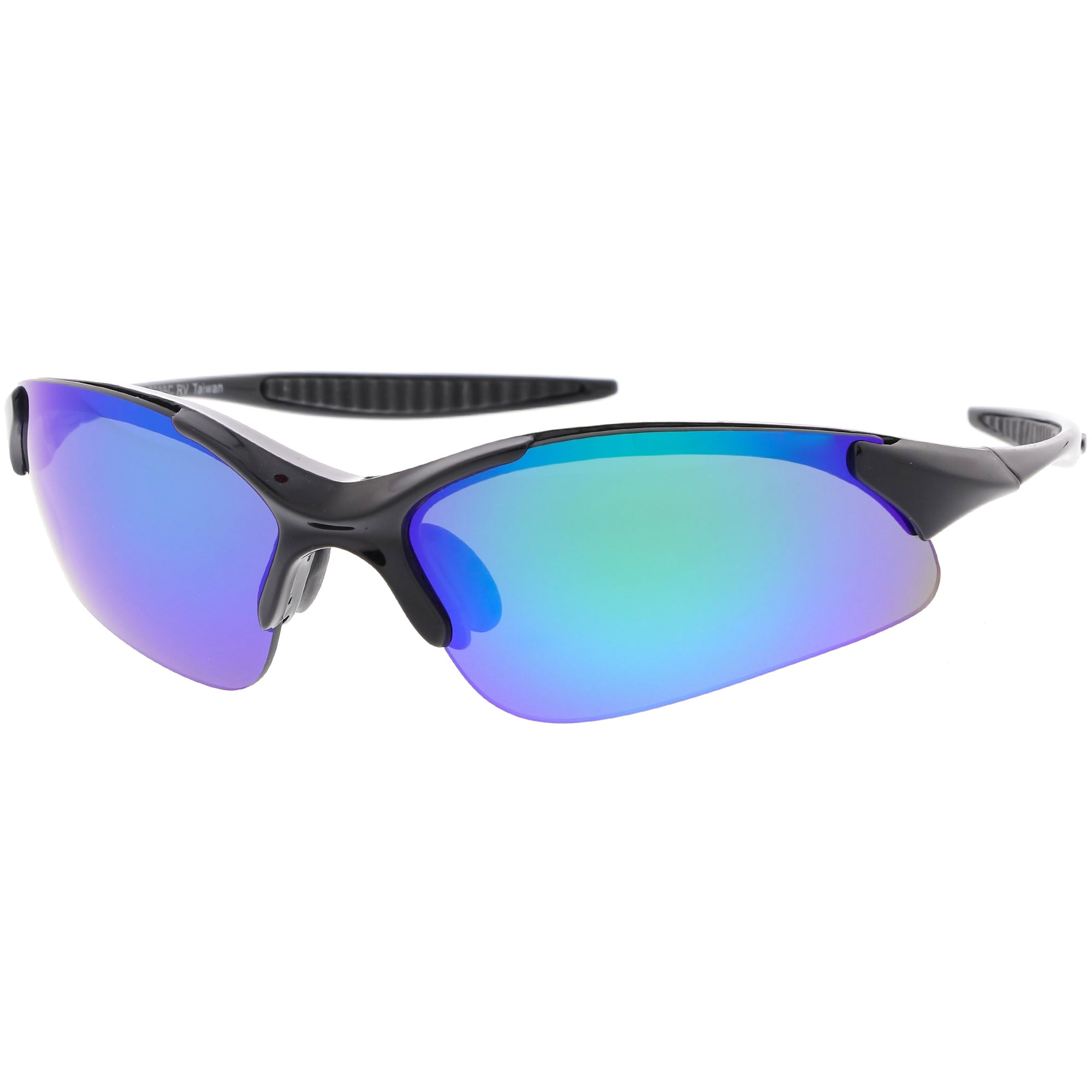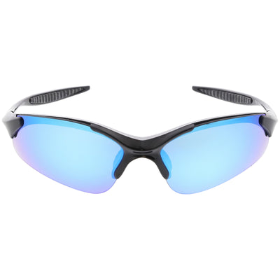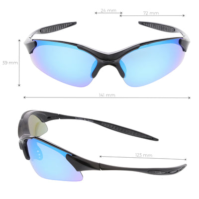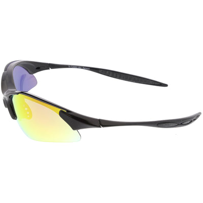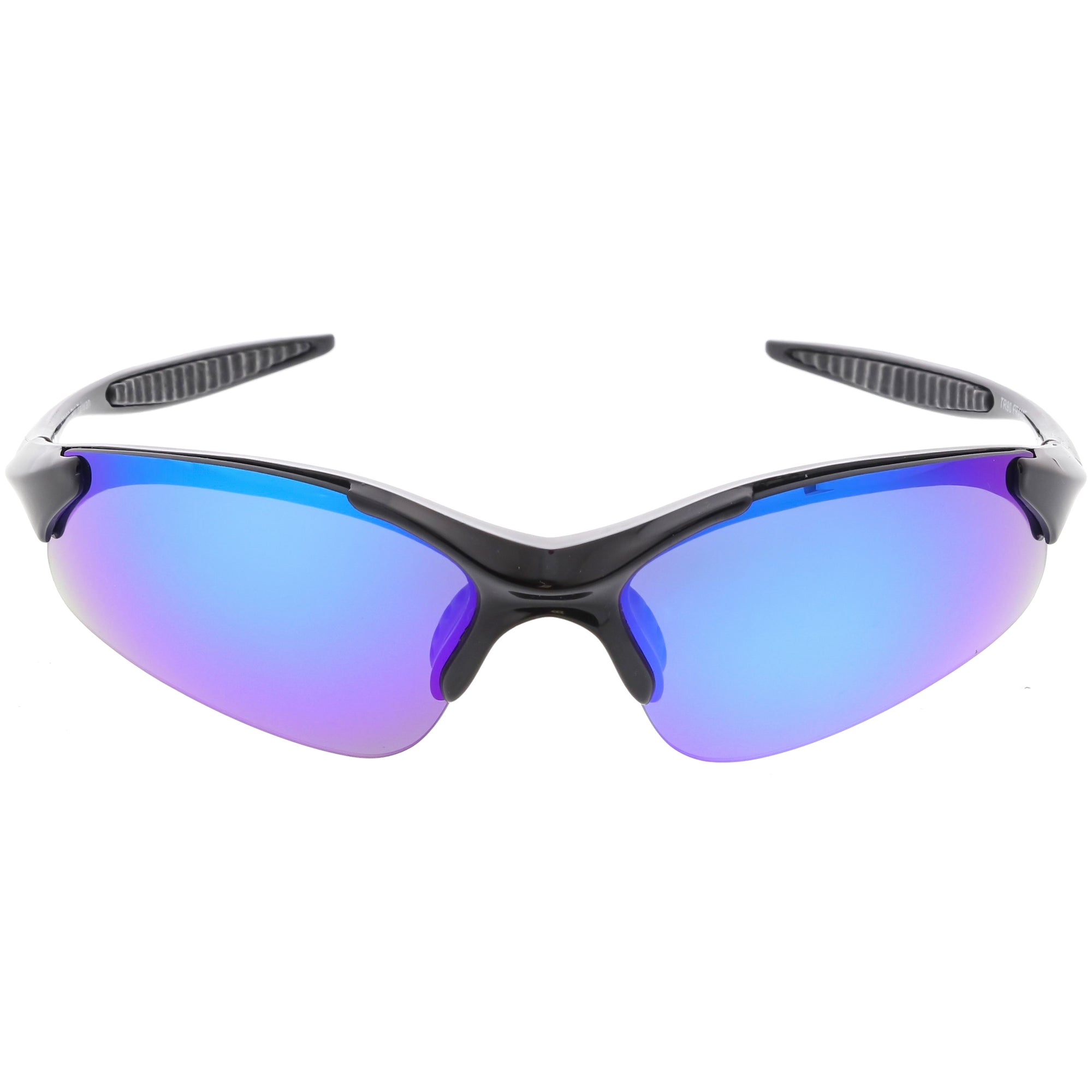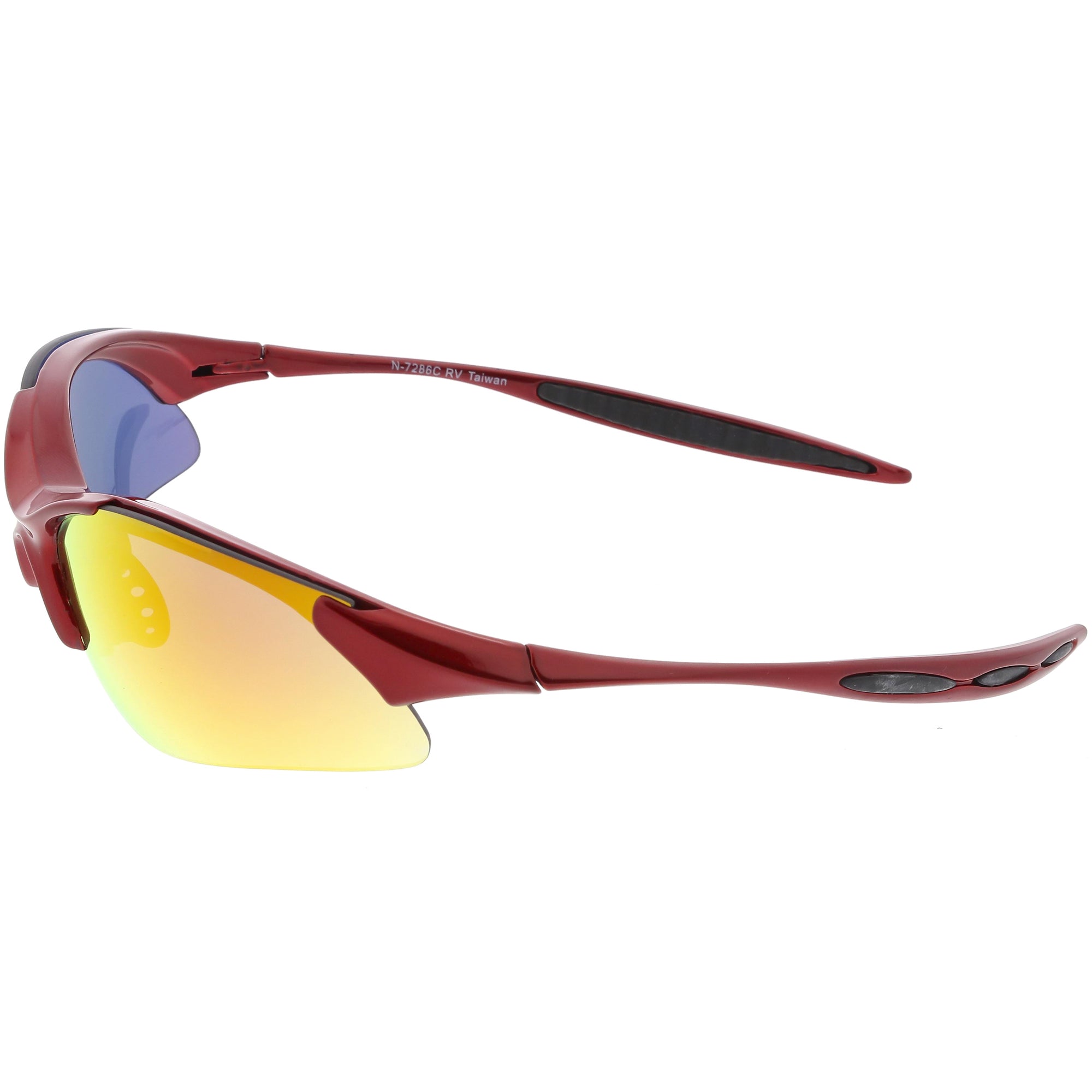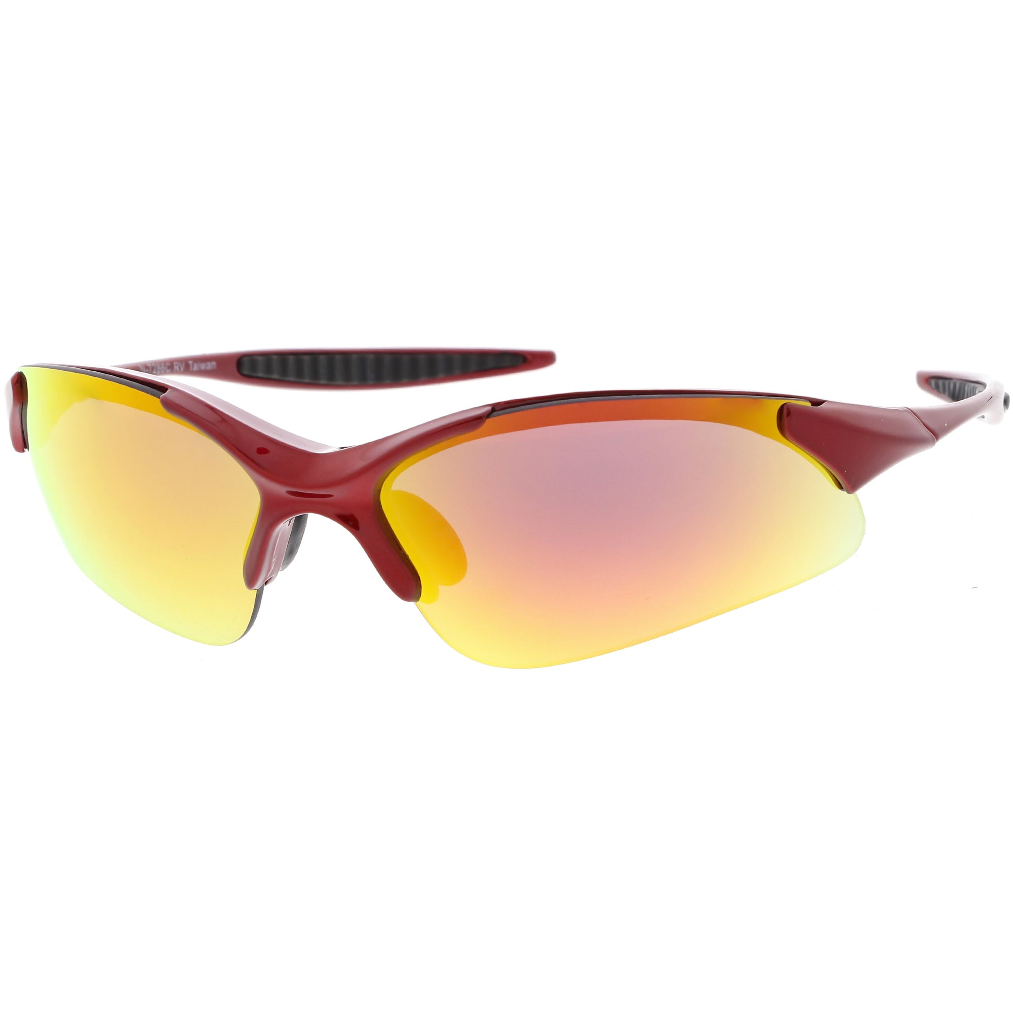 Keep up with the competition in these sports wrap sunglasses exquisitely crafted with TR-90 plastic for a lightweight and durable frame. A curved colored mirror lens gives it it's eye-catching look, while ventilated non-slip nose pads and injected mold temples keep them on and comfortable during perspiration. A great sport sunglasses that is ideal for multiple sports, these wrap sunglasses were built to perform. With pin hinges, and 100% UV protected lenses.