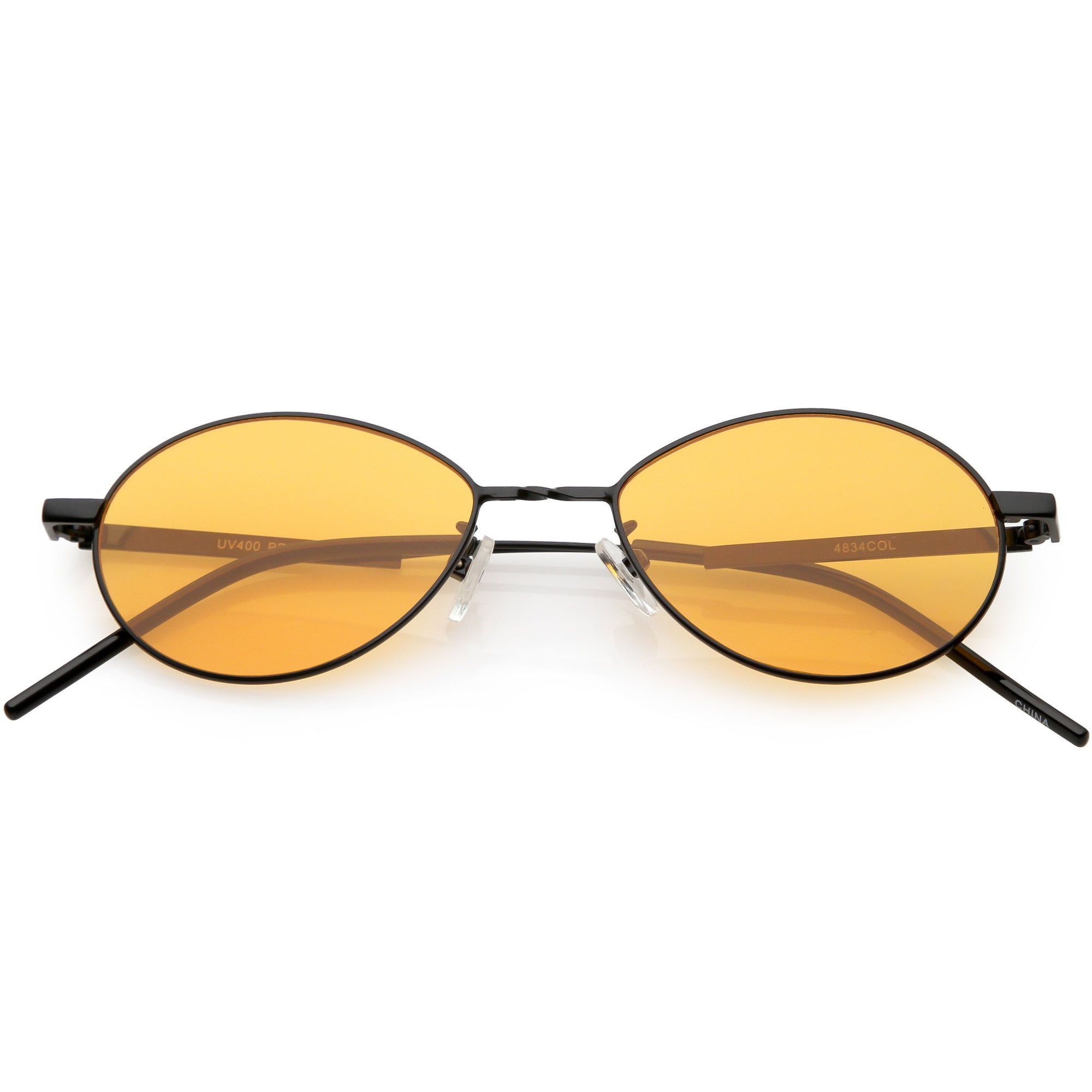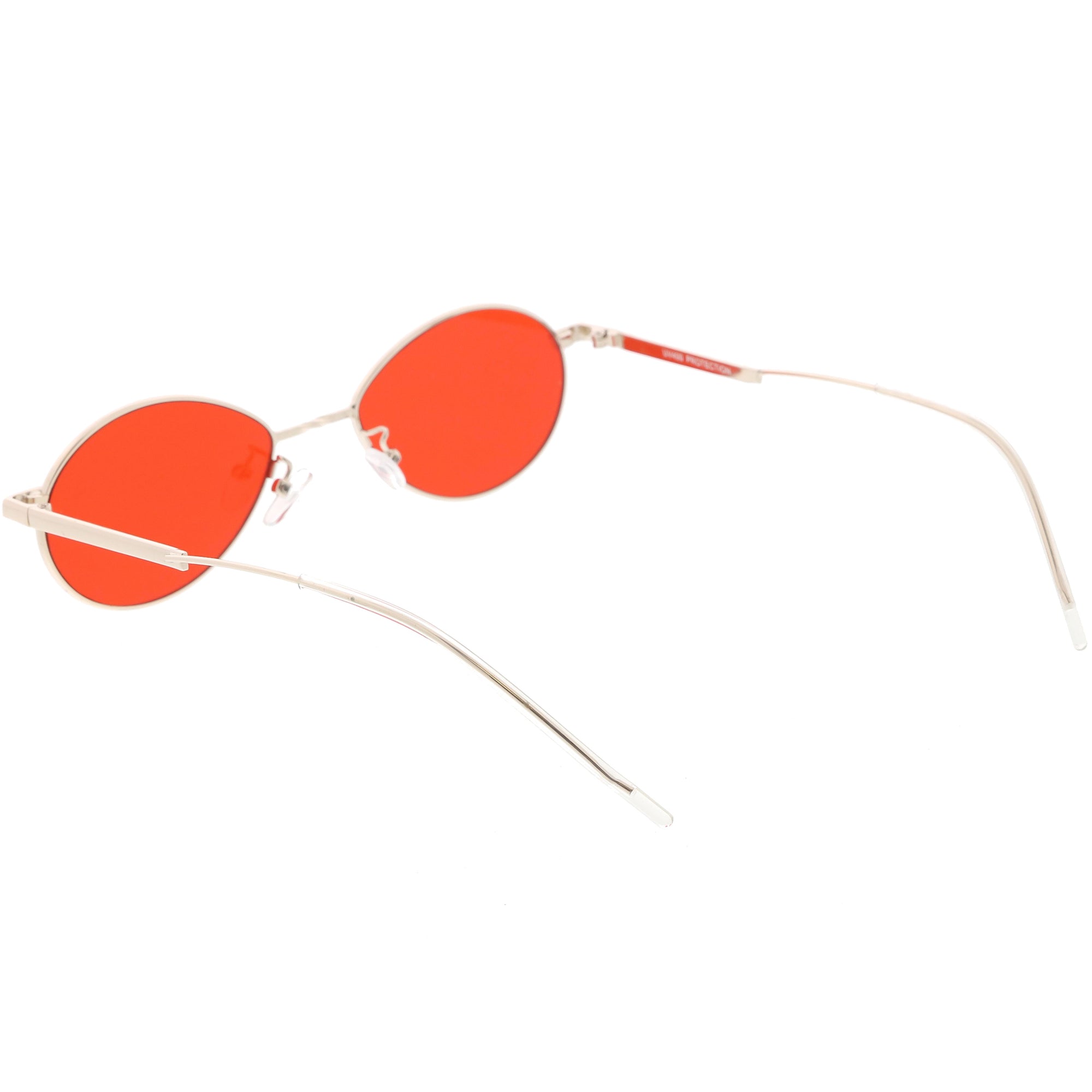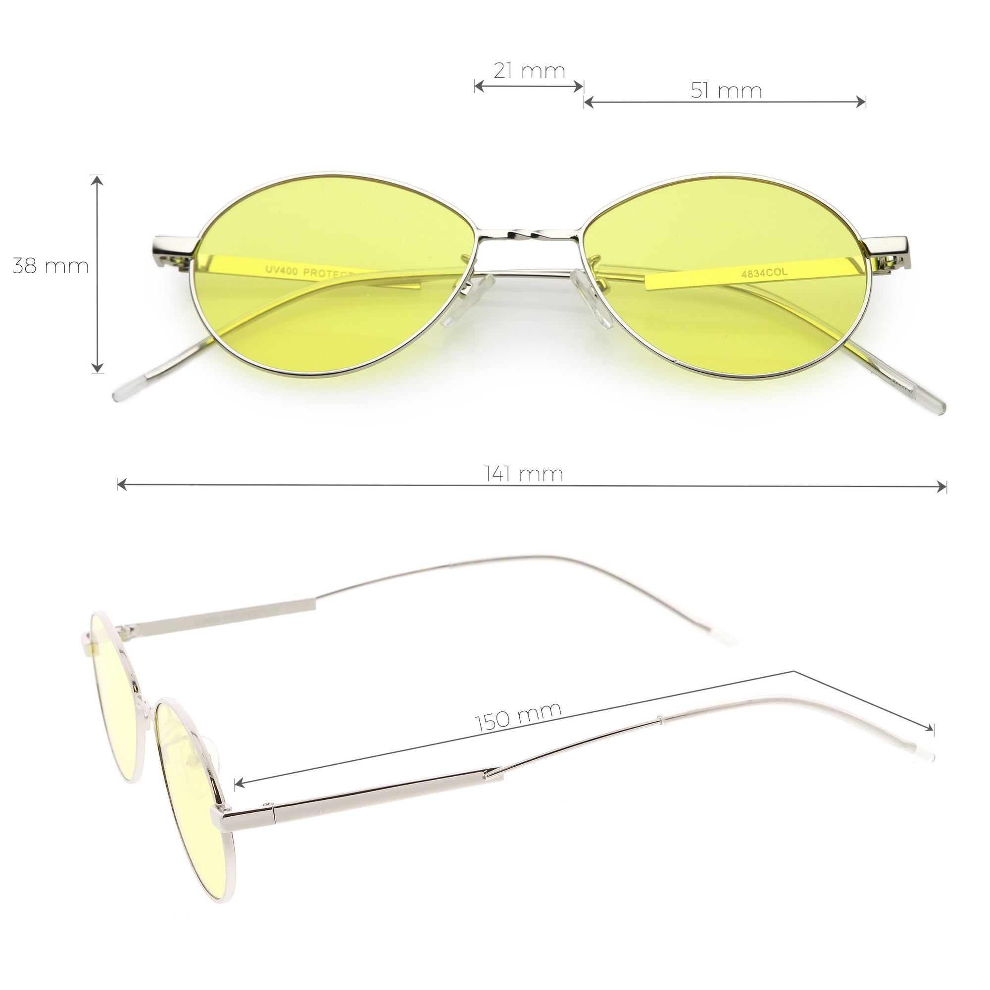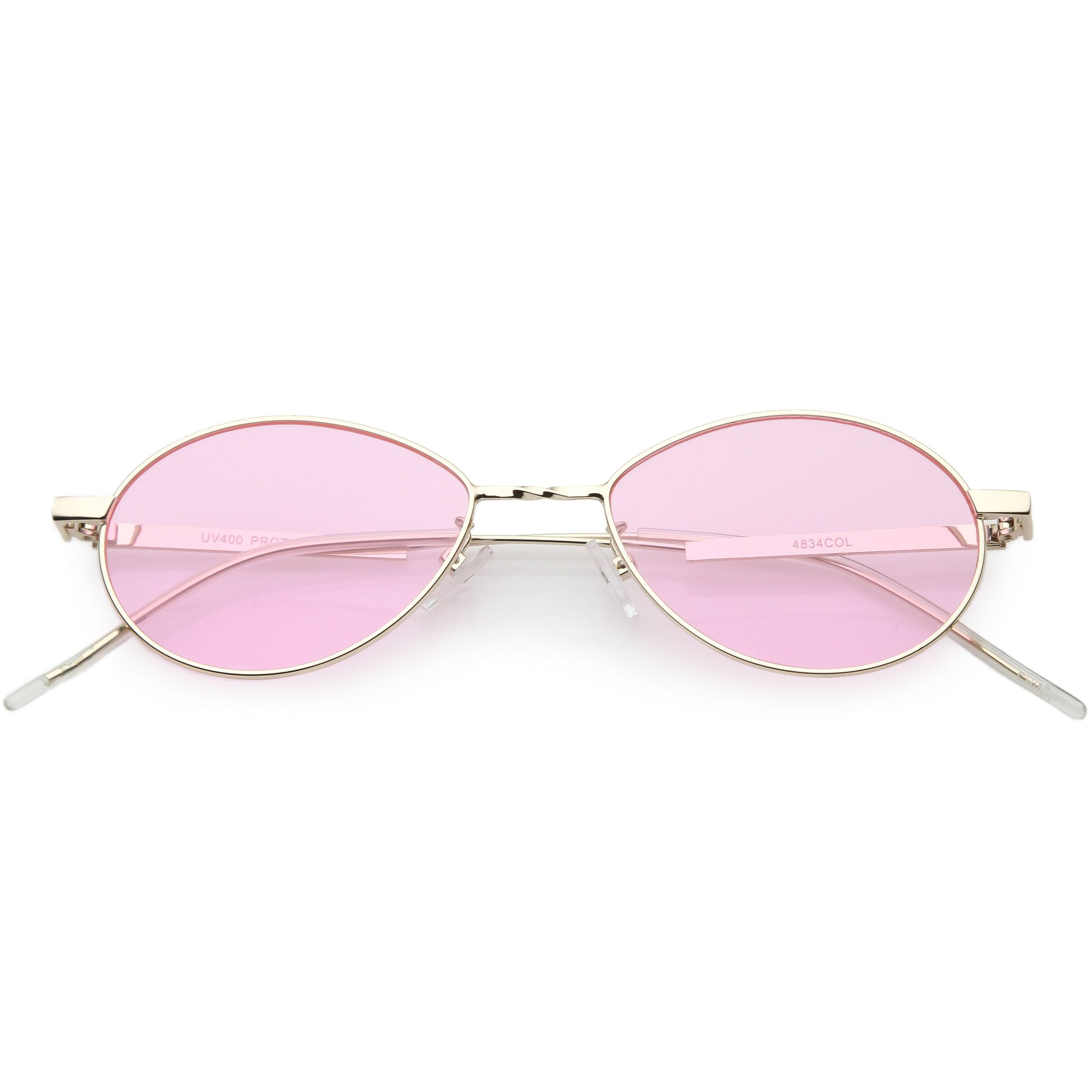 Modern and sophisticated, these metal oval sunglasses are crafted with a thin metal frame and ultra slim metal arms. A twisted nose bridge adds a unique element, while color tinted flat lenses are perfect for adding color to your outfits. Wear this fashion forward style all summer long. Made with a metal based frame, metal hinges, and 100% UV protected lenses.