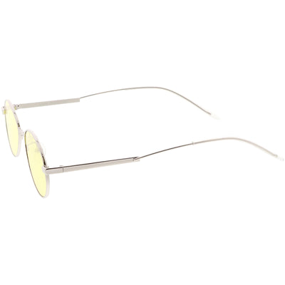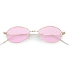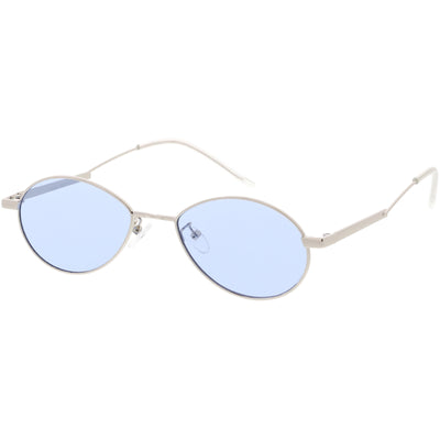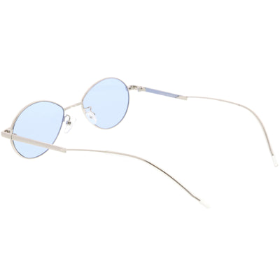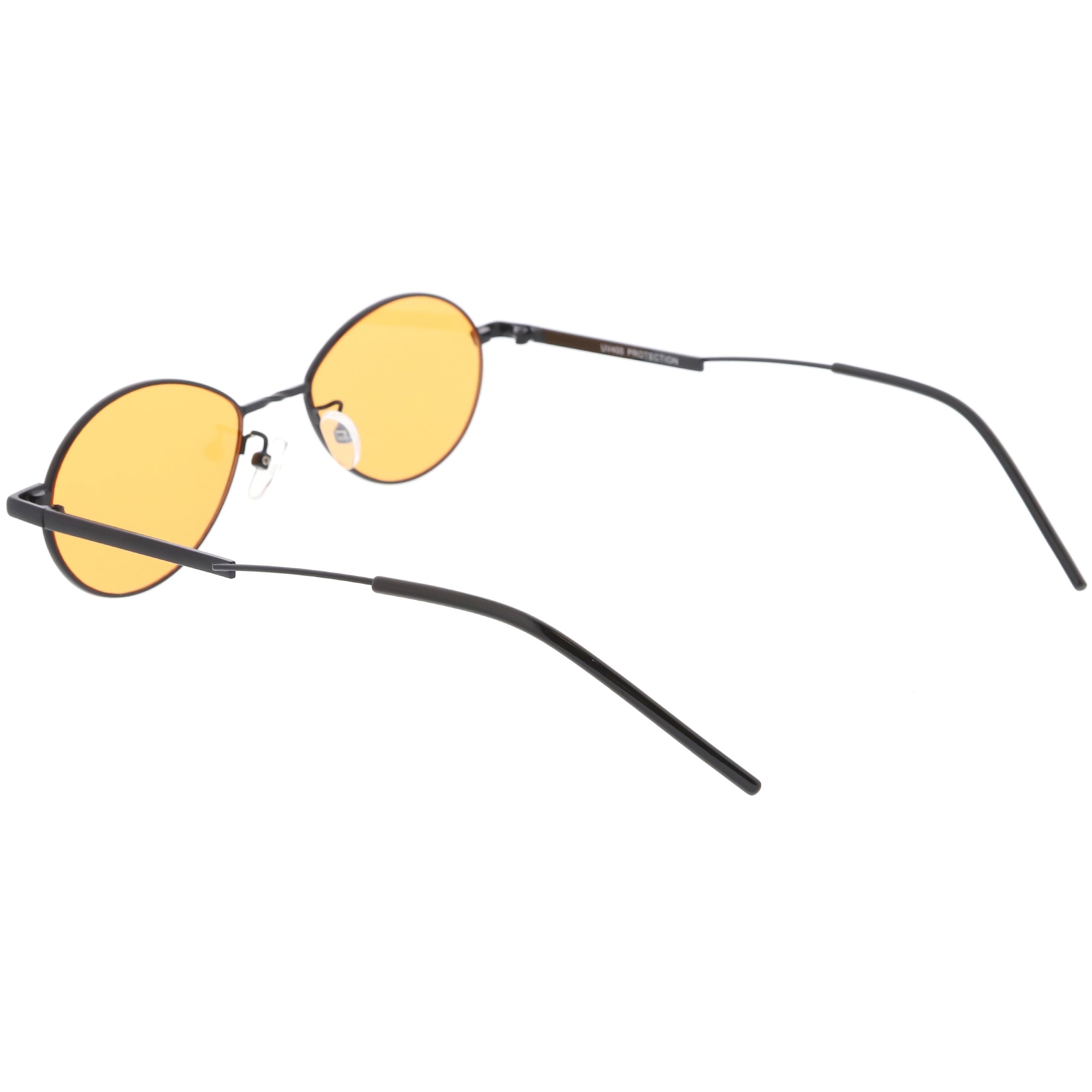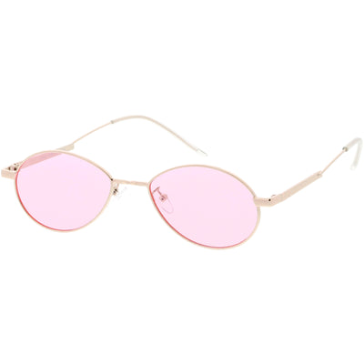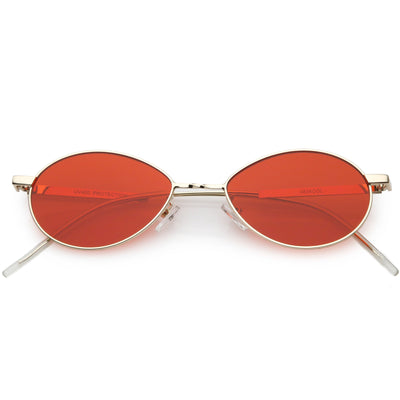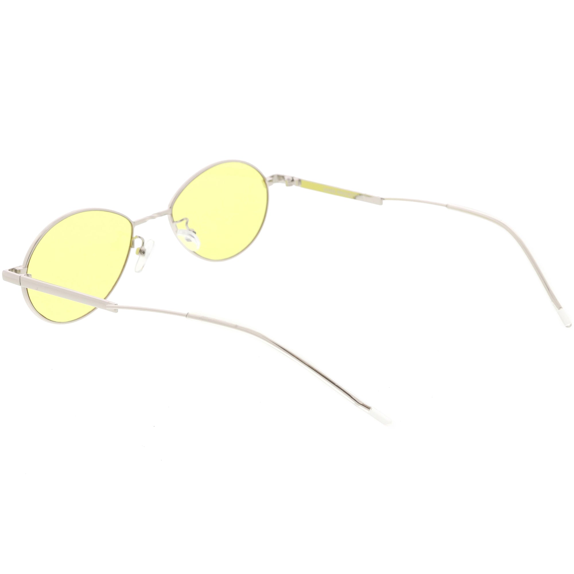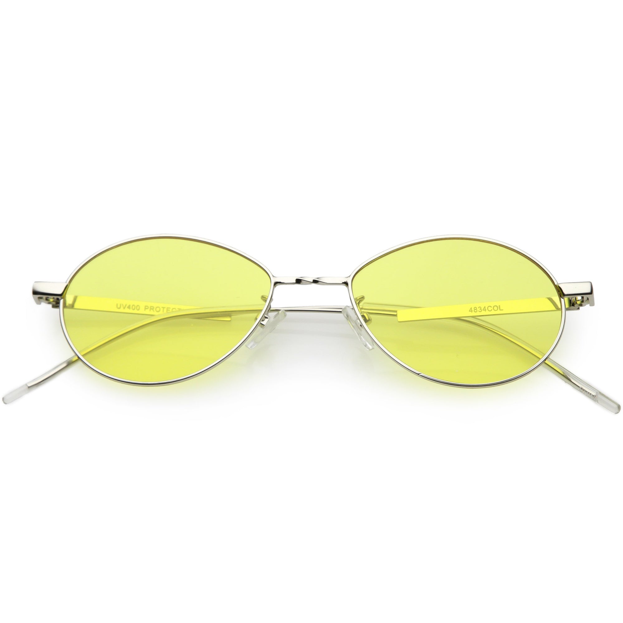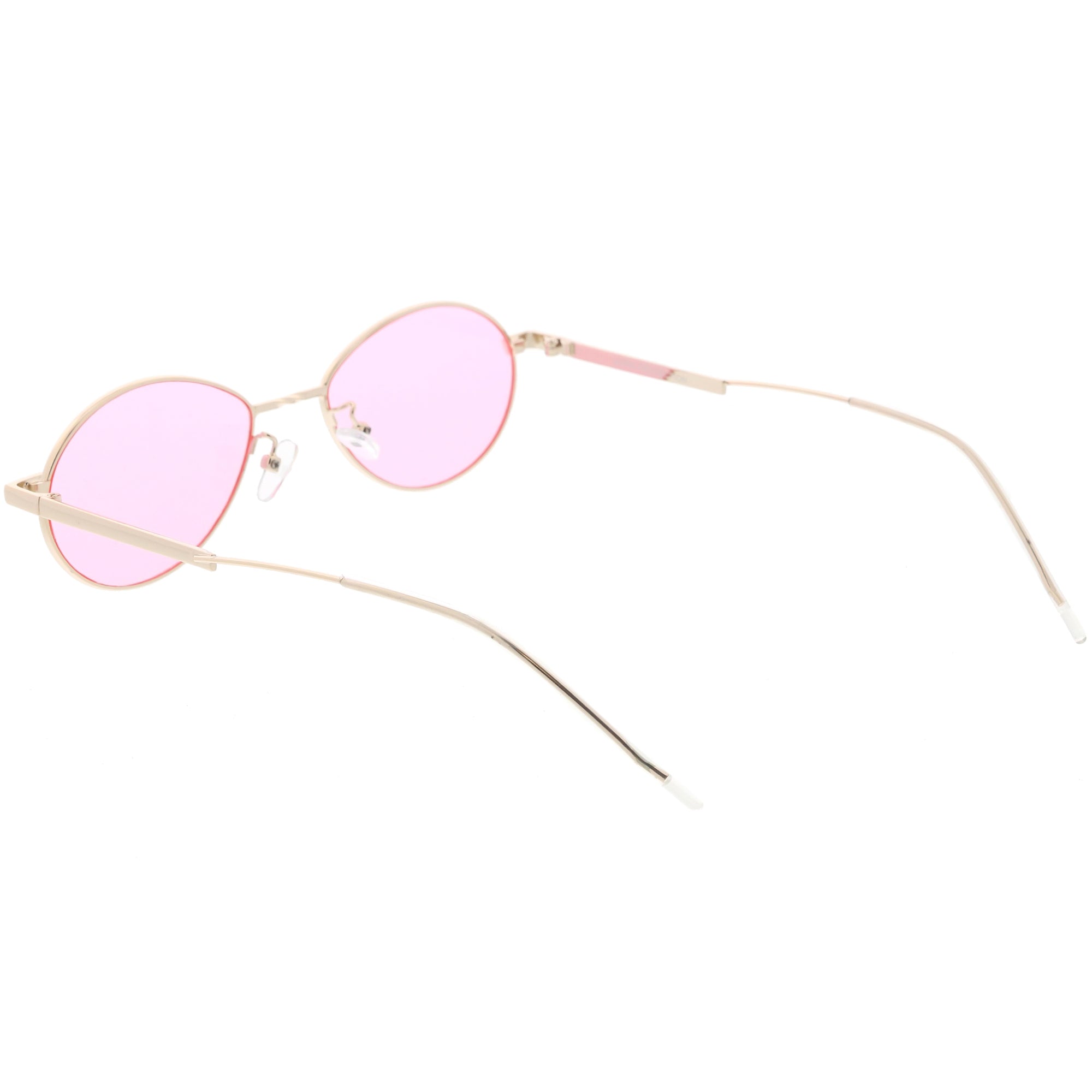 Modern and sophisticated, these metal oval sunglasses are crafted with a thin metal frame and ultra slim metal arms. A twisted nose bridge adds a unique element, while color tinted flat lenses are perfect for adding color to your outfits. Wear this fashion forward style all summer long. Made with a metal based frame, metal hinges, and 100% UV protected lenses.