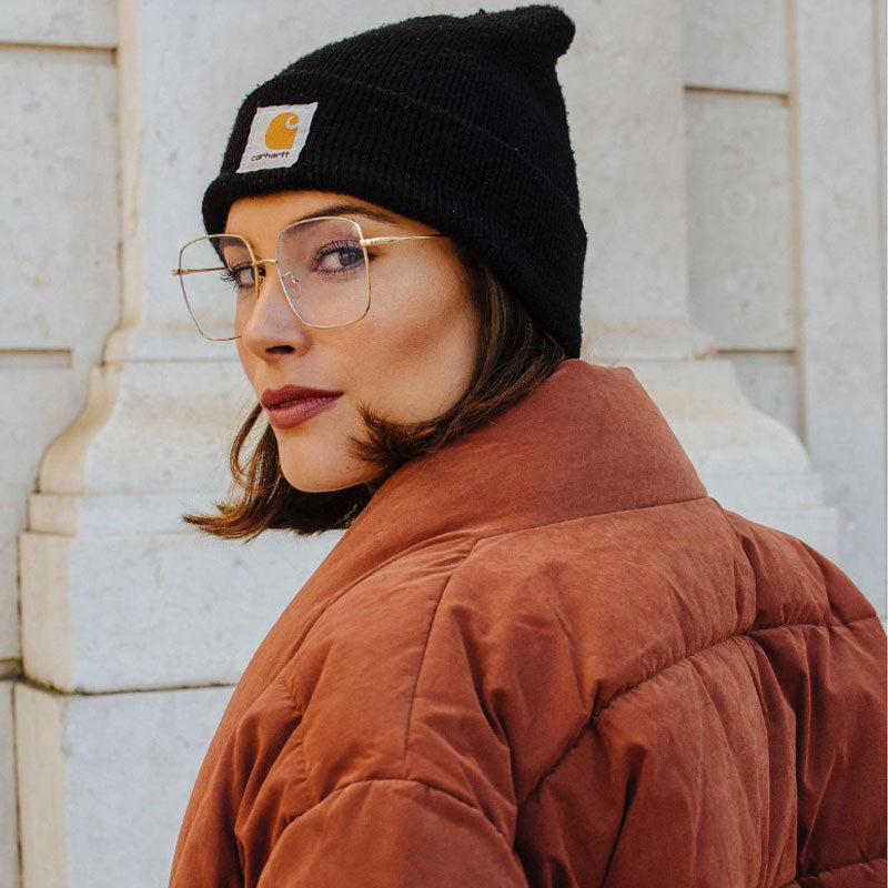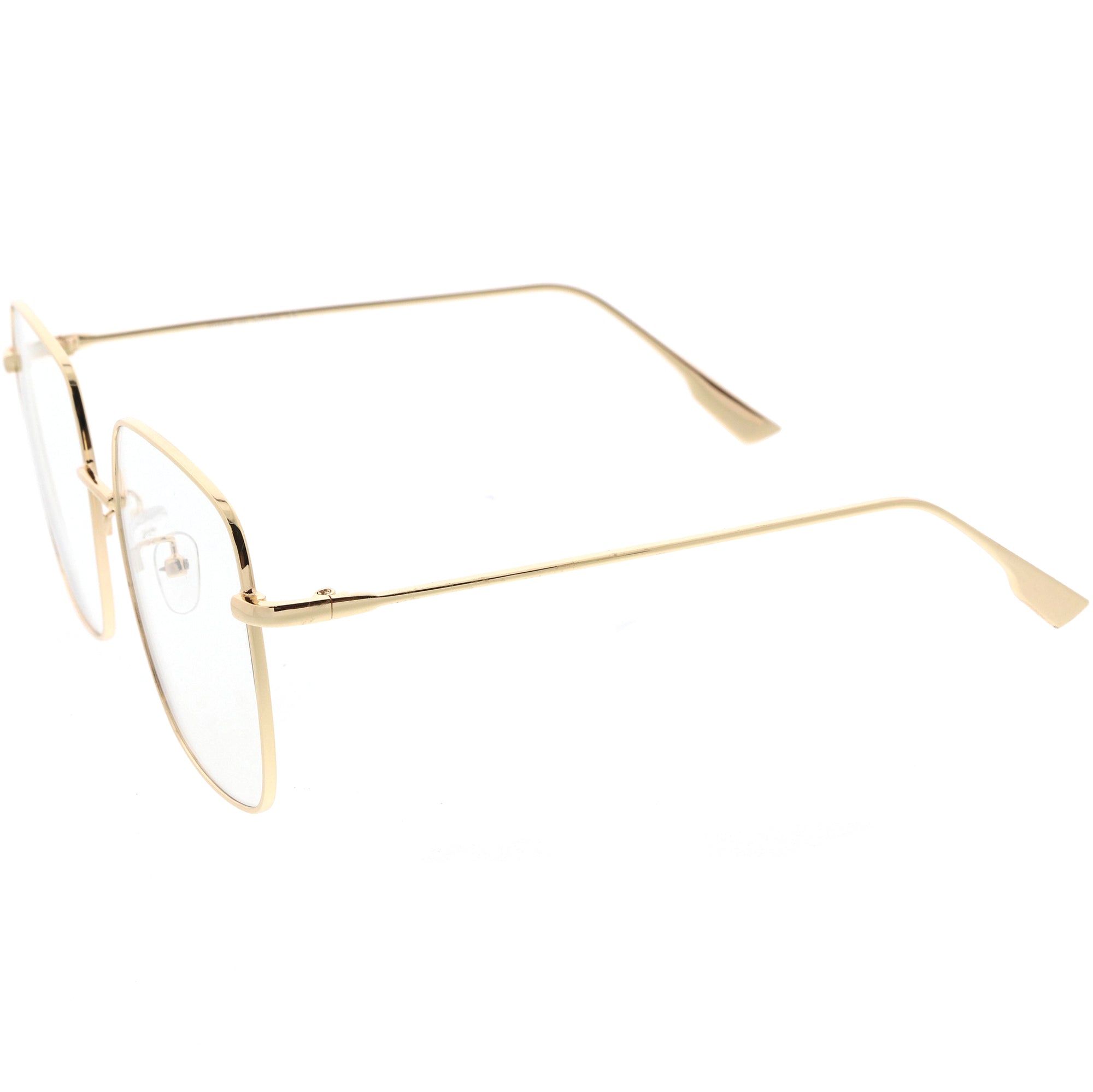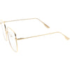 Large sleek metal square glasses featuring blue light blocking clear lens. The delicate silhouette is perfect to accentuate any stylish look. Crafted with anti blocking lens, these glasses are designed to protect your eyes from harmful blue light emitted from digital devices. Made with a metal based frame, metal hinges, and UV protected blue light clear lens.
