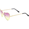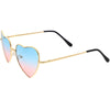 • Adorable thin sleek metal heart silhouette frame that are sure to get some love on all your sunny days! Stay fun and flirty all season long with these color gradient lens heart shaped sunglasses. Made with a lightweight metal frame, metal hinges, and polycarbonate UV400 protected lenses.