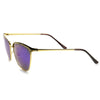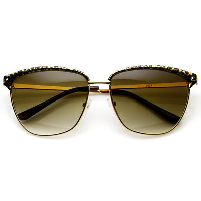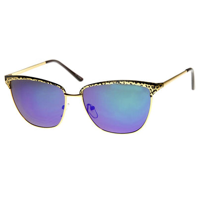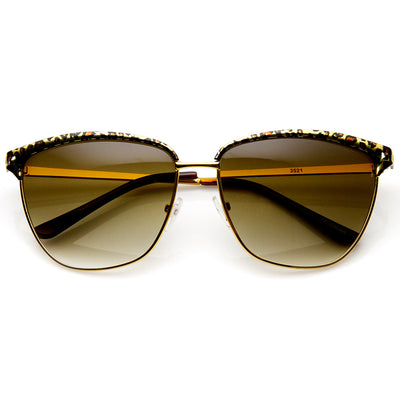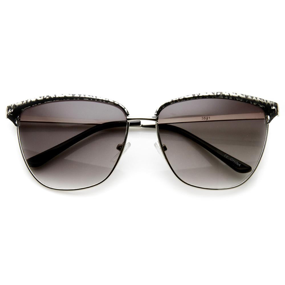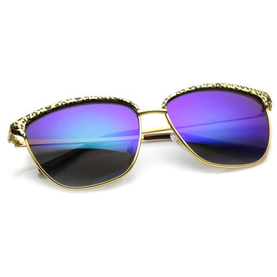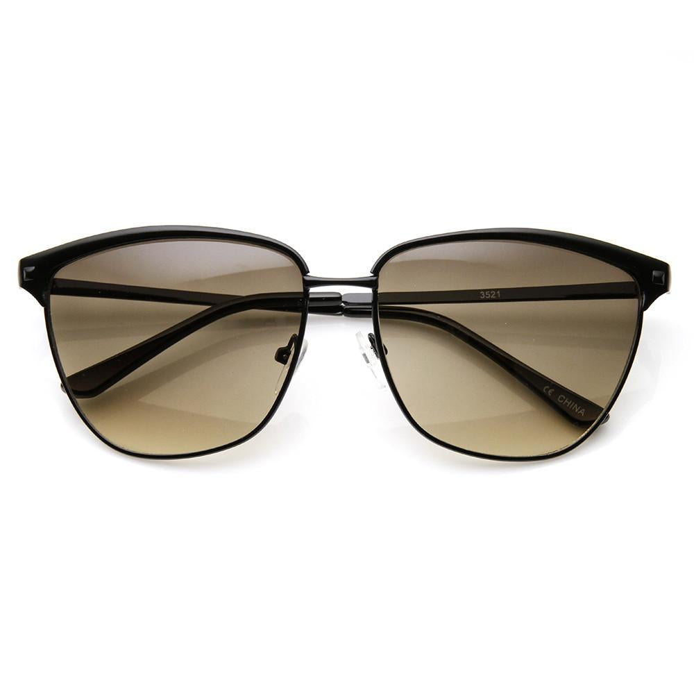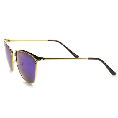 Half frame horned rim shape that stays true to the classic and iconic look. Frame is made with an acetate brow and arms, metal wire lens lining and metal nose bridge. Features metal hinges, English style nose pieces, and dark-tinted polycarbonate UV400 protected lenses. Includes microfiber cleansing cloth.