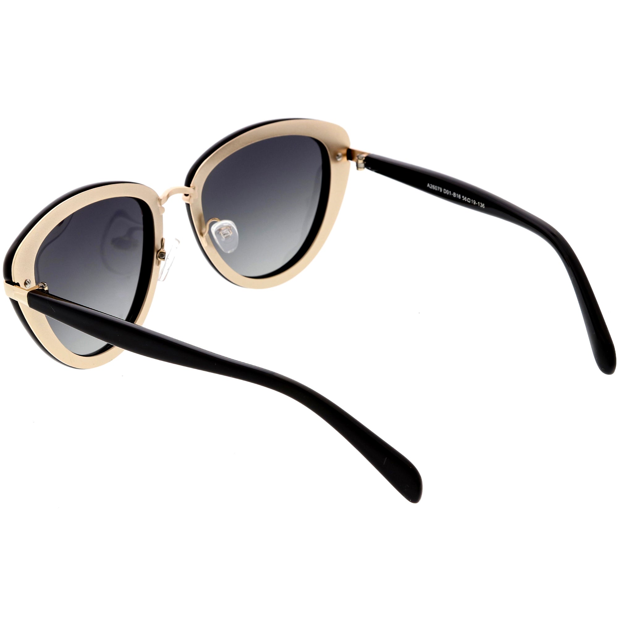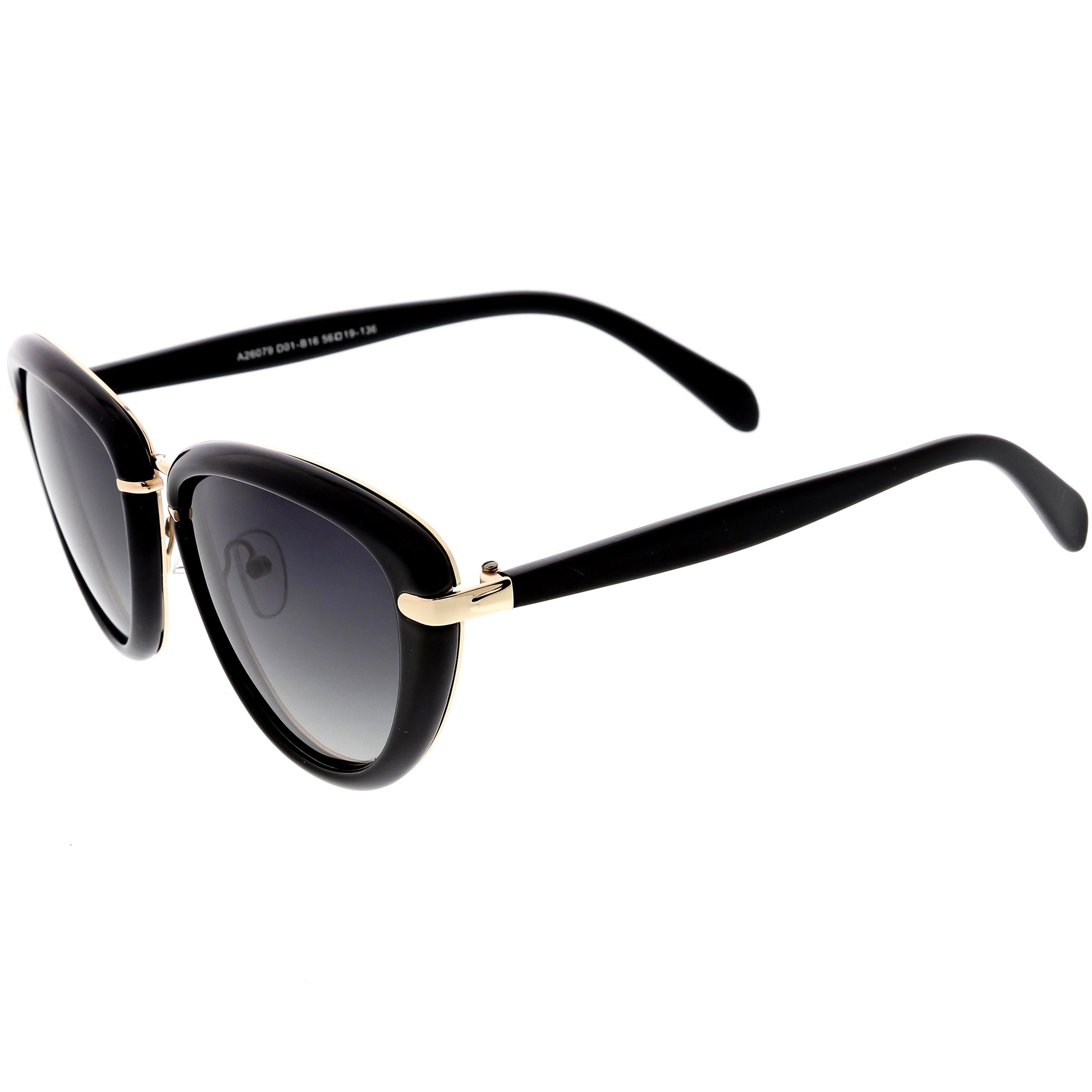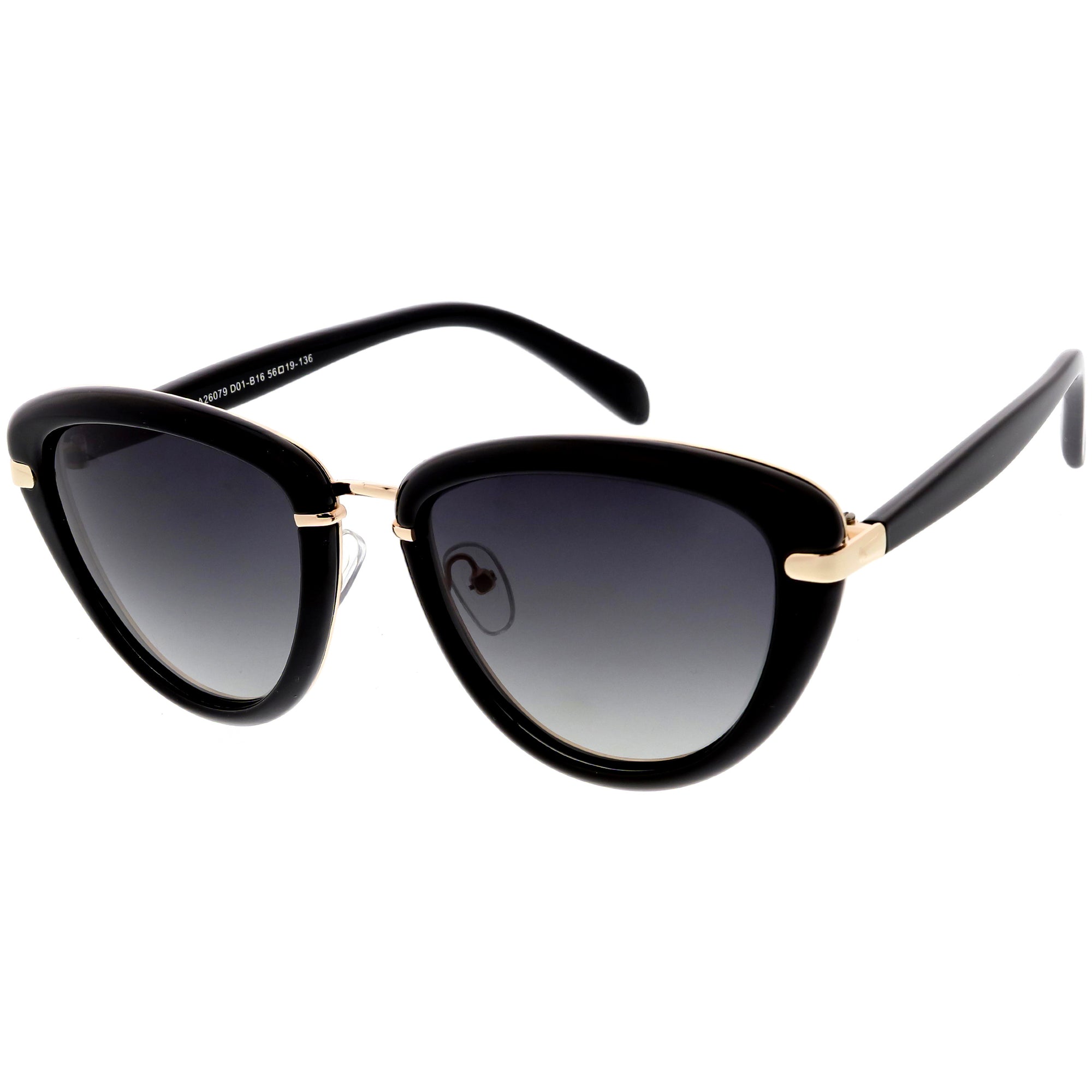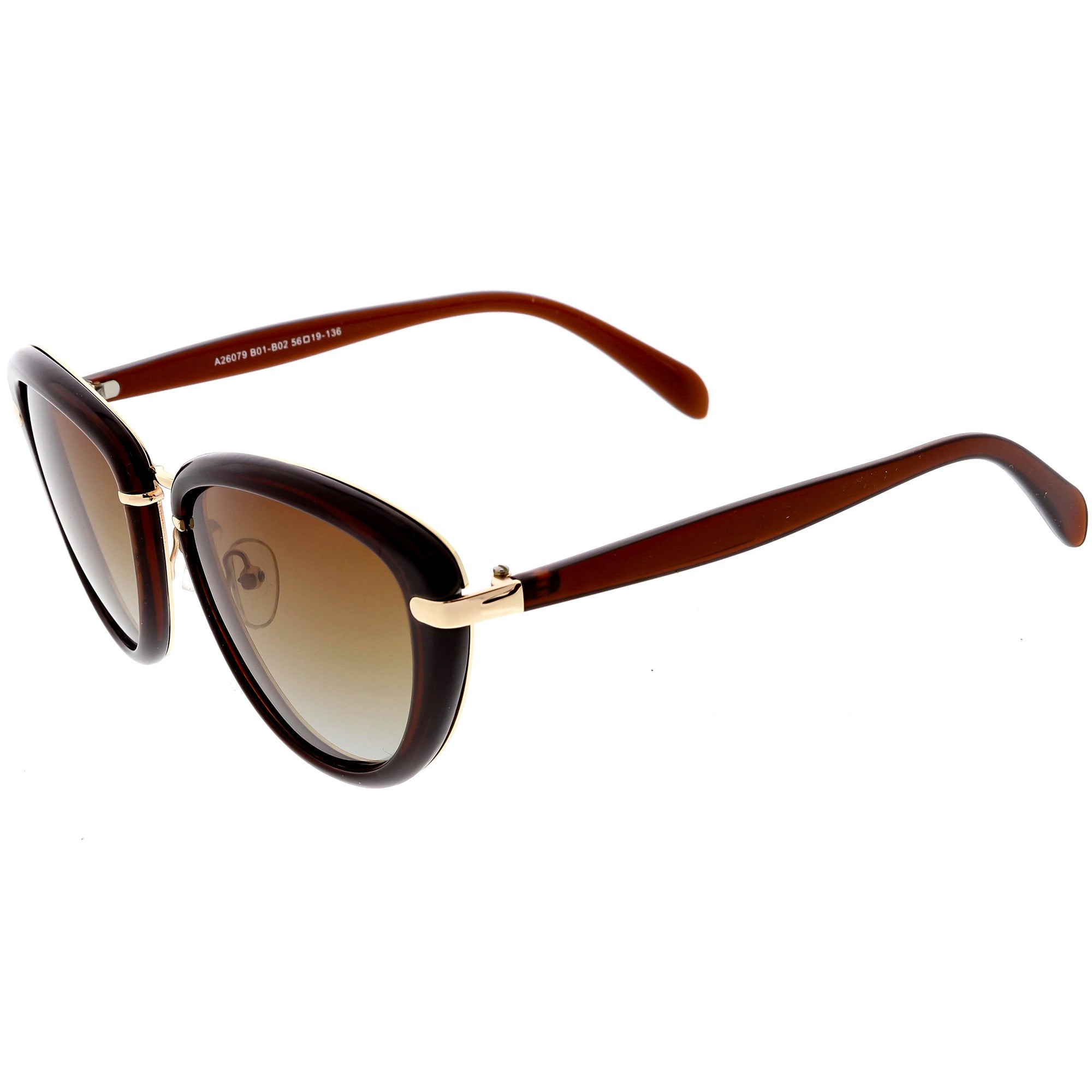 The perfect combination of style and function, these cat eye sunglasses are exquisitely crafted with a metal nose bridge and metal temple accents for a touch of elegance. Finished with gradient polarized lenses that omit glare and reduce brightness, these polarized cat eye sunglasses give you that fashion forward look, all the while protecting your eyes. Made with a plastic based frame, adjustable English style nose pieces, metal hinges, and 100% UV protected lenses.