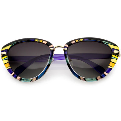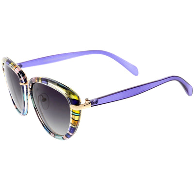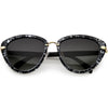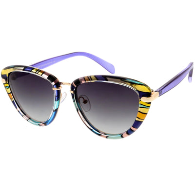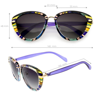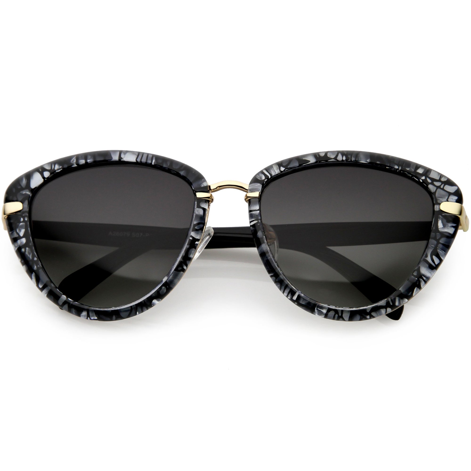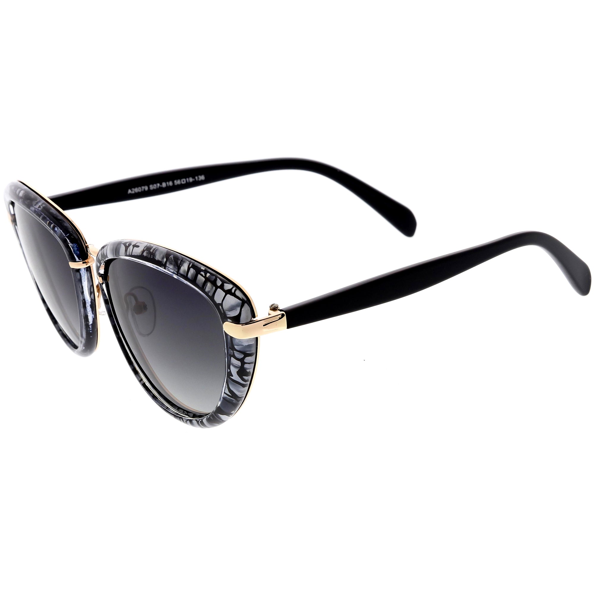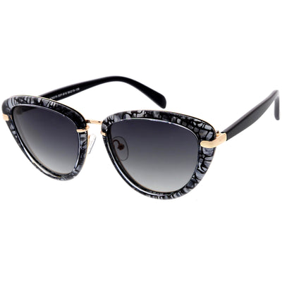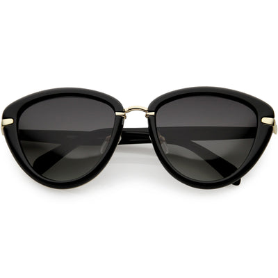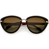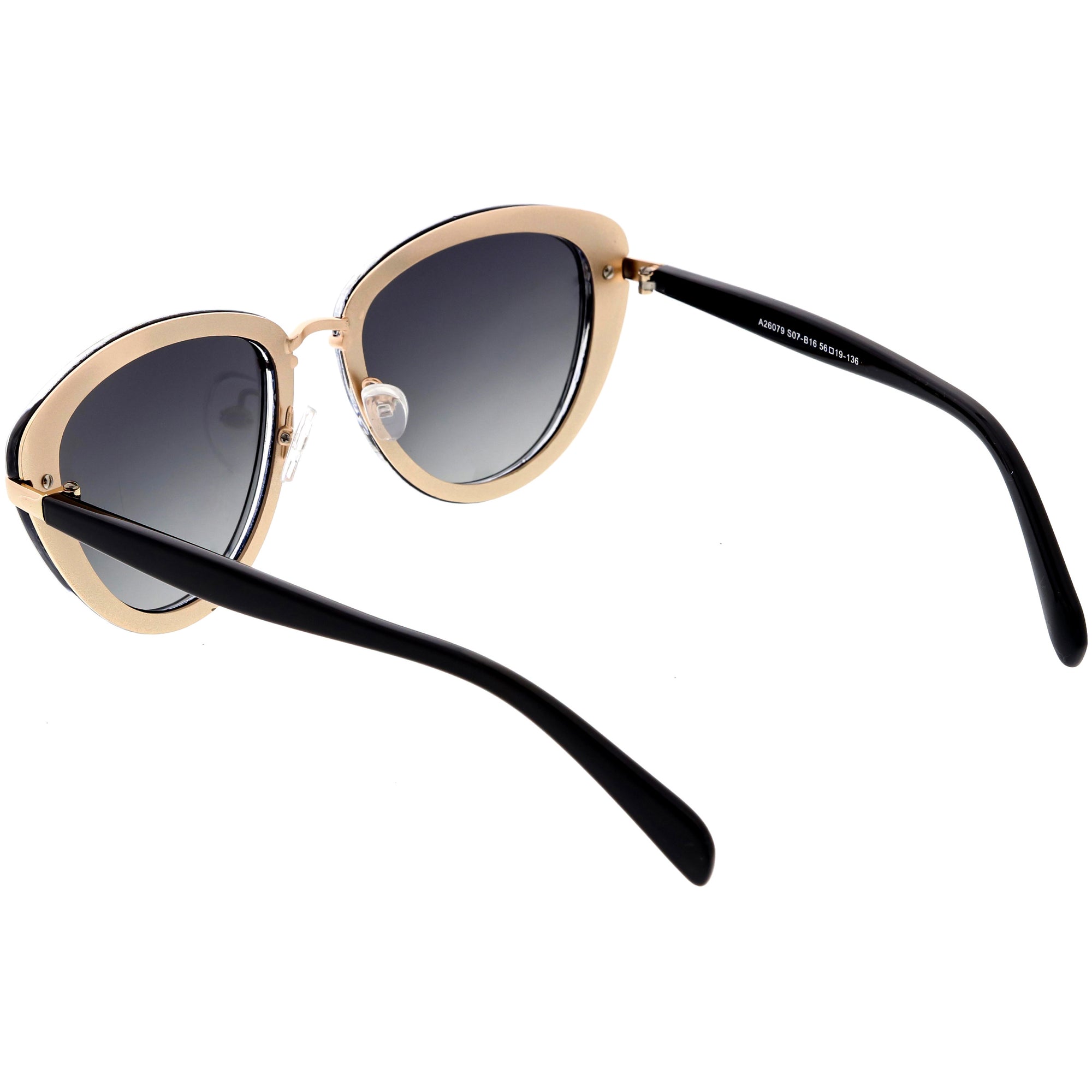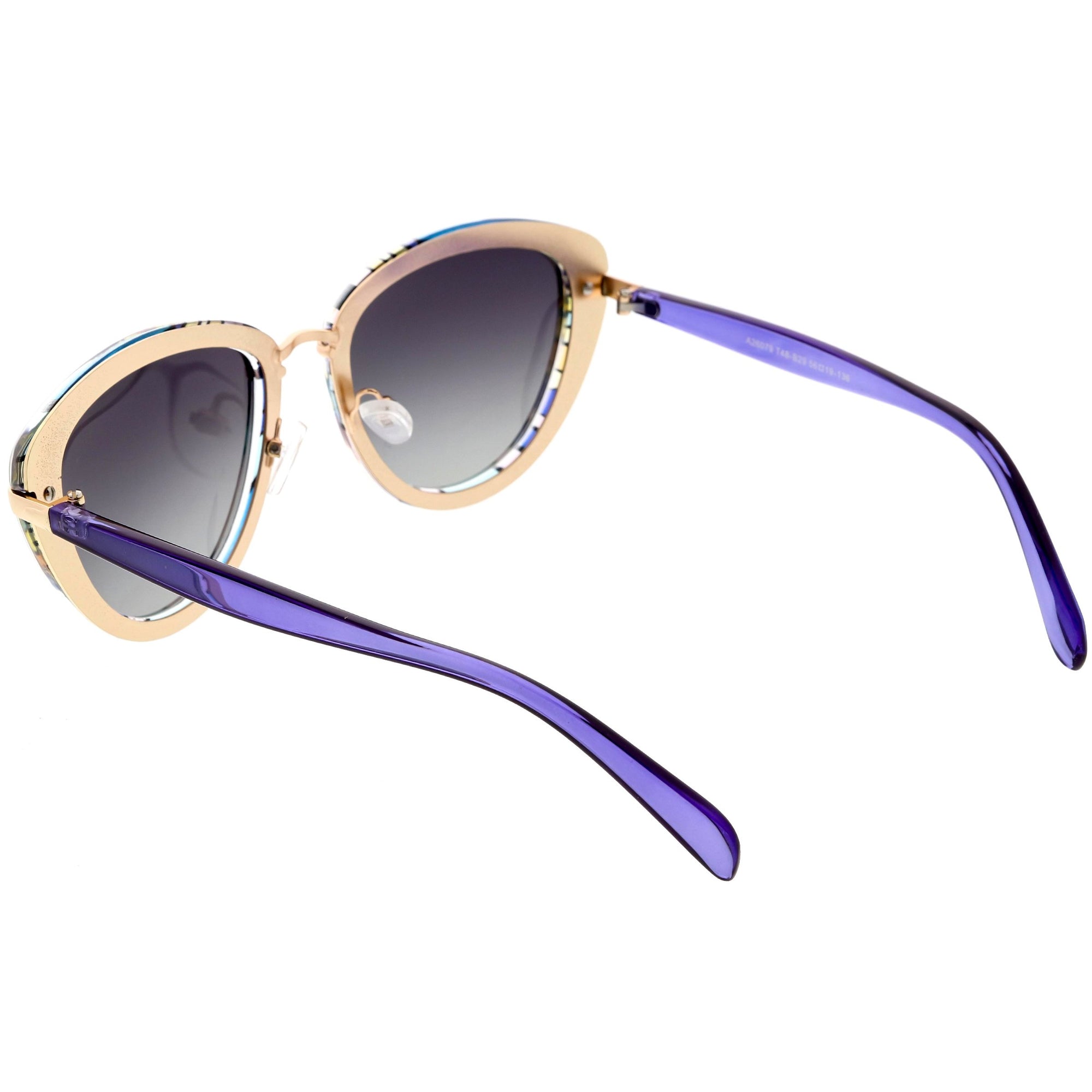 The perfect combination of style and function, these cat eye sunglasses are exquisitely crafted with a metal nose bridge and metal temple accents for a touch of elegance. Finished with gradient polarized lenses that omit glare and reduce brightness, these polarized cat eye sunglasses give you that fashion forward look, all the while protecting your eyes. Made with a plastic based frame, adjustable English style nose pieces, metal hinges, and 100% UV protected lenses.