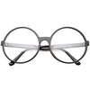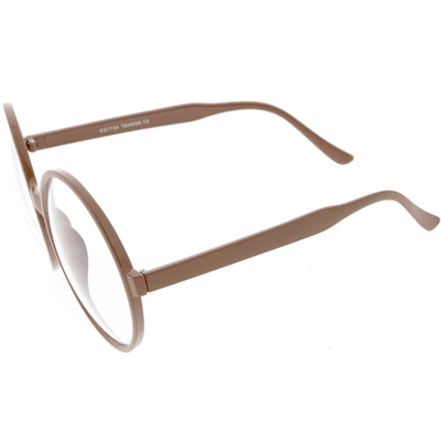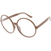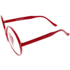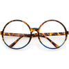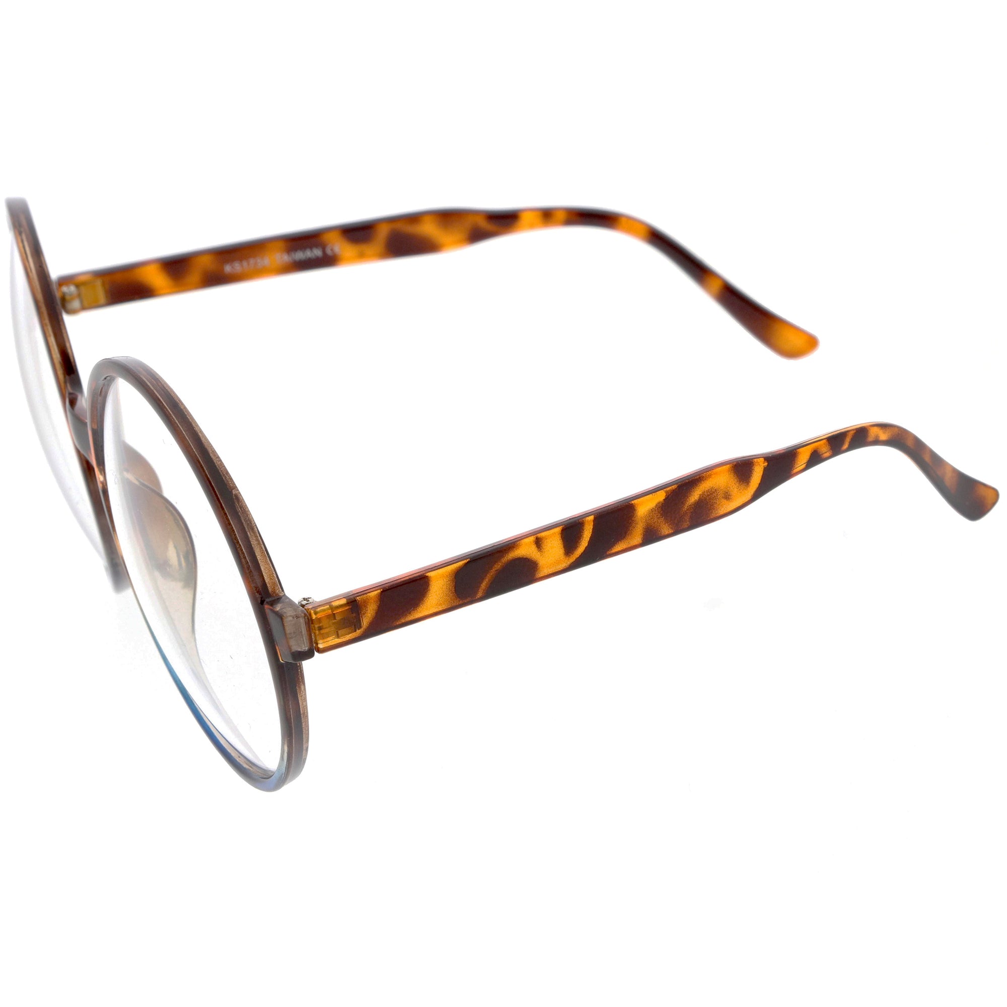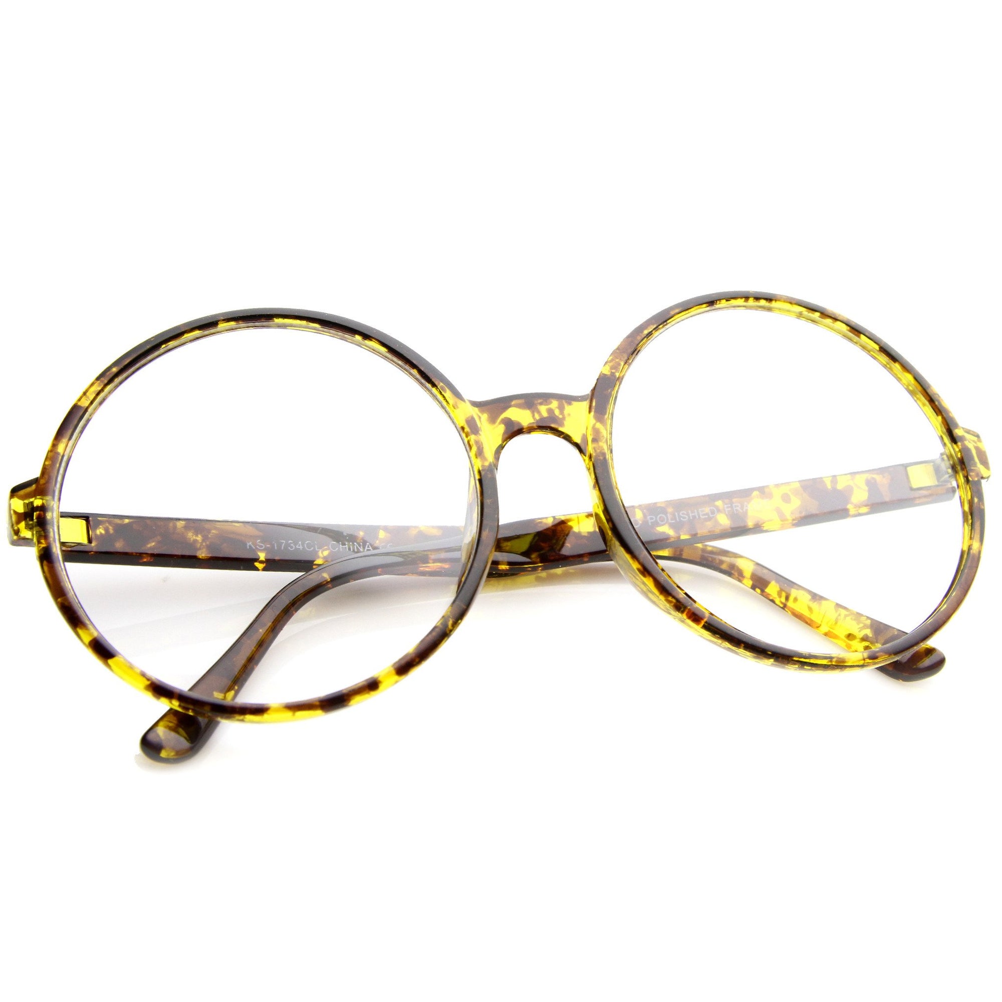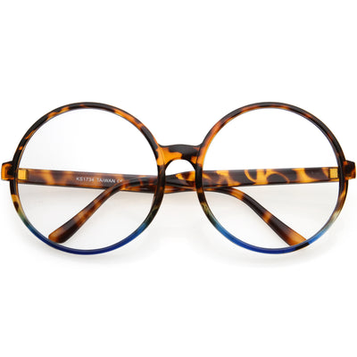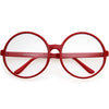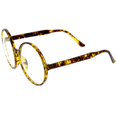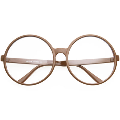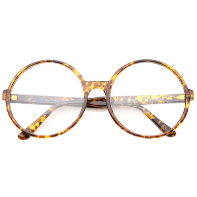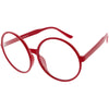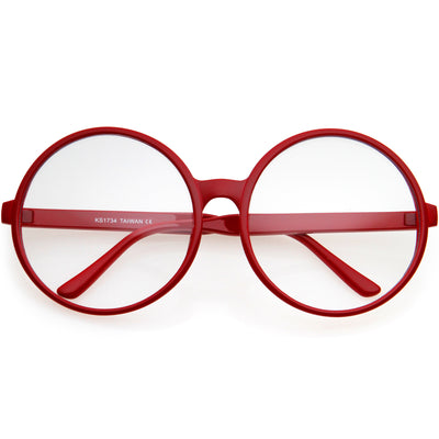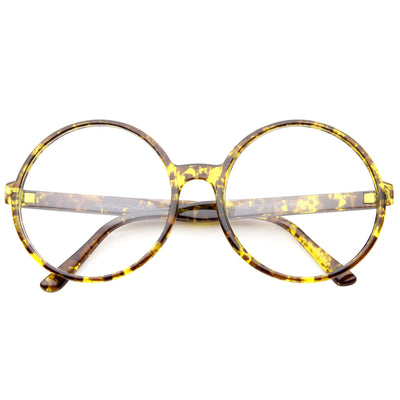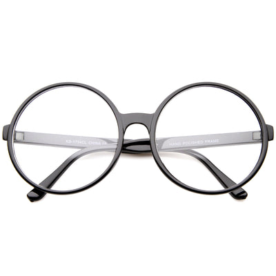 Retro-inspired and stylishly bold, these round glasses are designed with an oversize frame and round clear lenses. Crafted with a minimal and lightweight design, these oversize glasses are great for everyday wear. Style them with your favorite outfits for a nerdy-chic look. Made with a plastic based frame, reinforced metal hinges, and polycarbonate UV400 clear lenses.