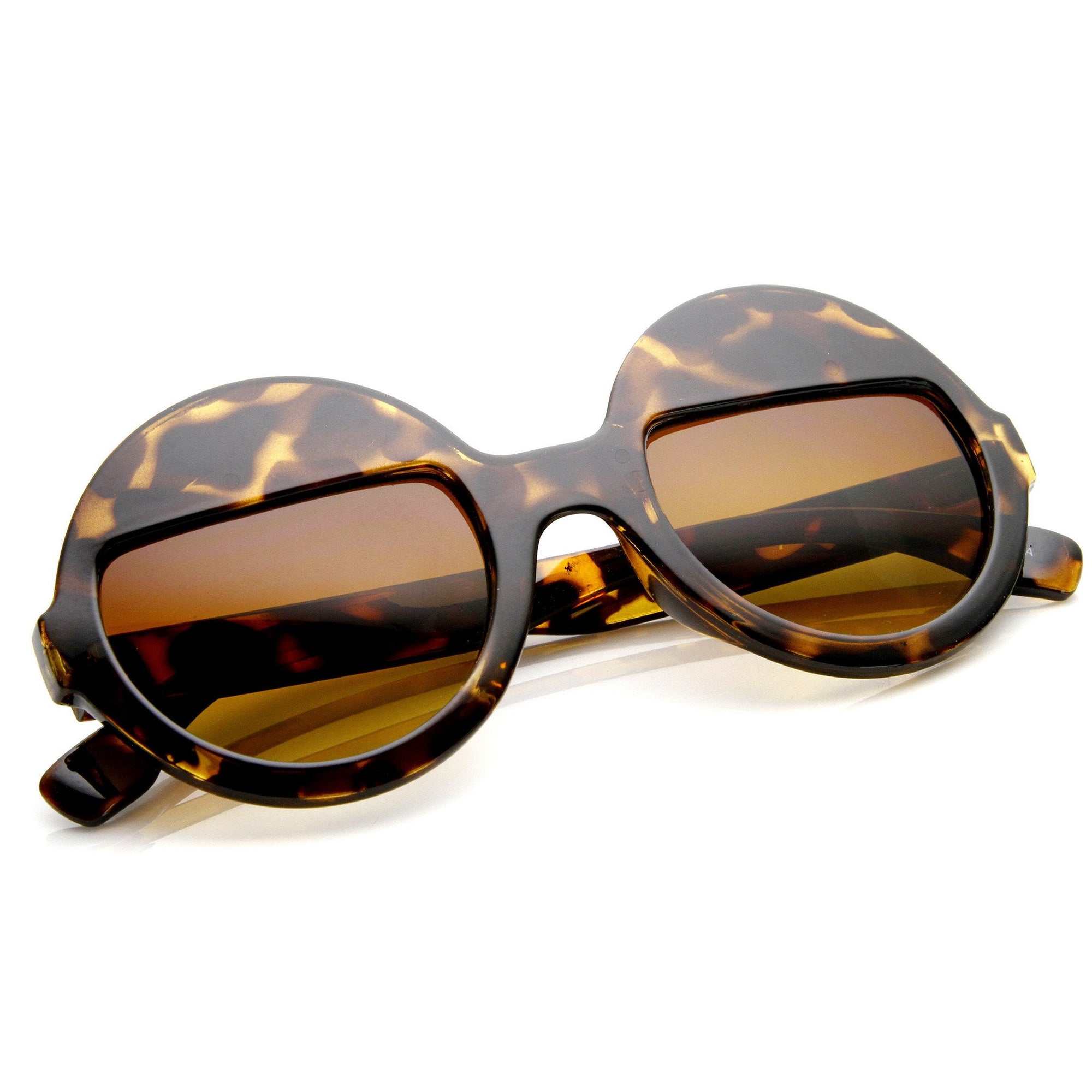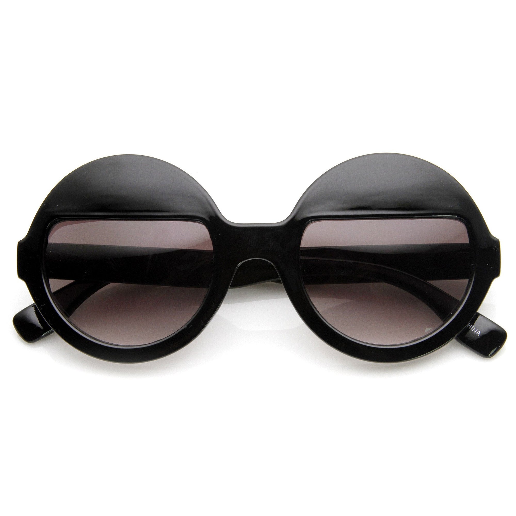 Women's fashion round silhouette features a unique quarter half lens that resembles eyelids. The half lens eyelids create a very unique and stylish look, they are sure to send a out a bold fashion statement this season. Made with a plastic based frame, metal hinges and UV400 protected lenses.