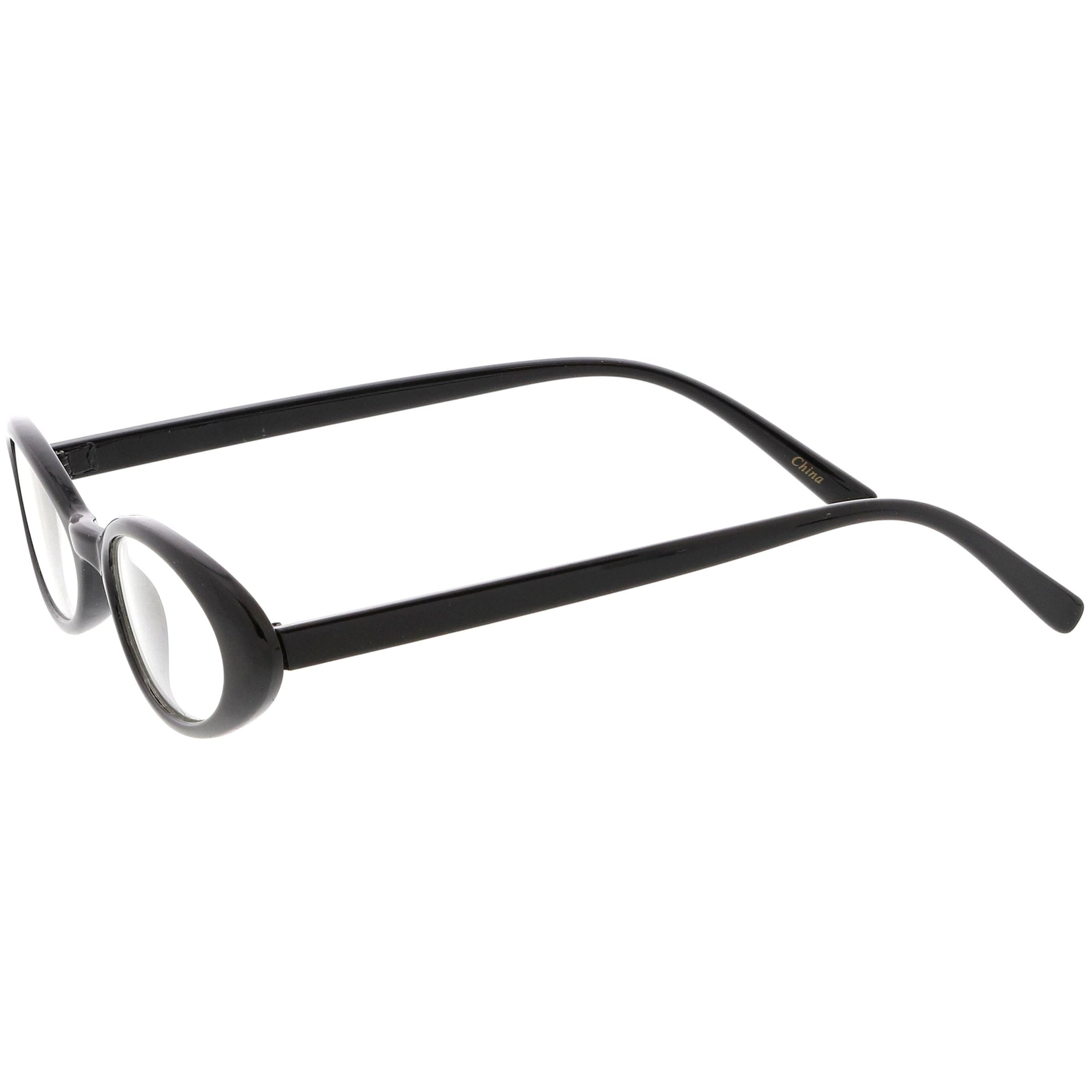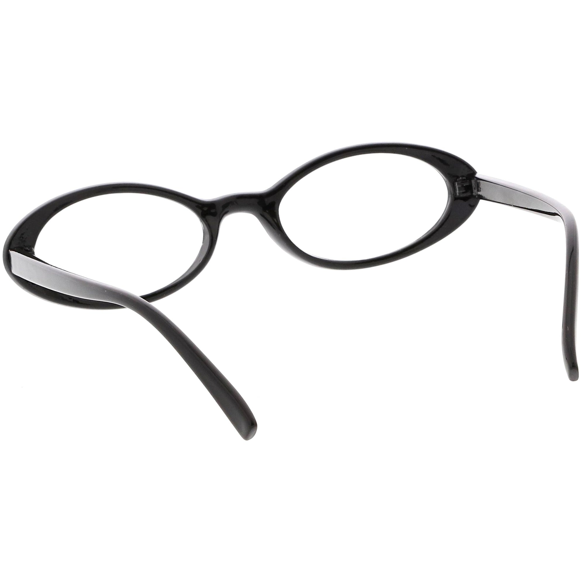 Perfect for creating a retro 90's inspired look, these small oval glasses feature a small oval and narrow frame and slim arms for a lightweight feel. Complete with oval clear lenses, these tiny glasses have a vintage flair that add a cute touch to any outfit. Made with a plastic based frame, reinforced metal hinges, and 100% UV protected lenses.