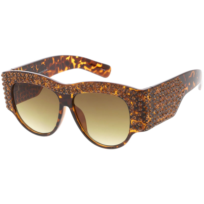 Women's Retro Handmade Rhinestone Oversize Sunglasses C610
