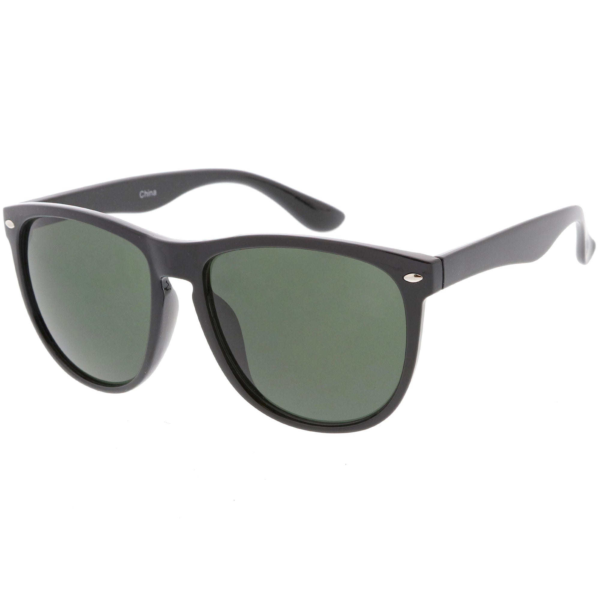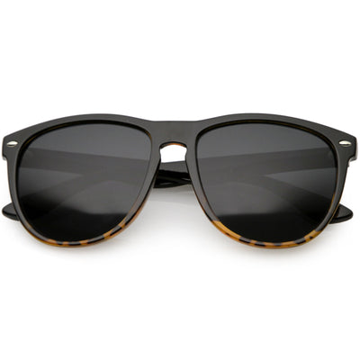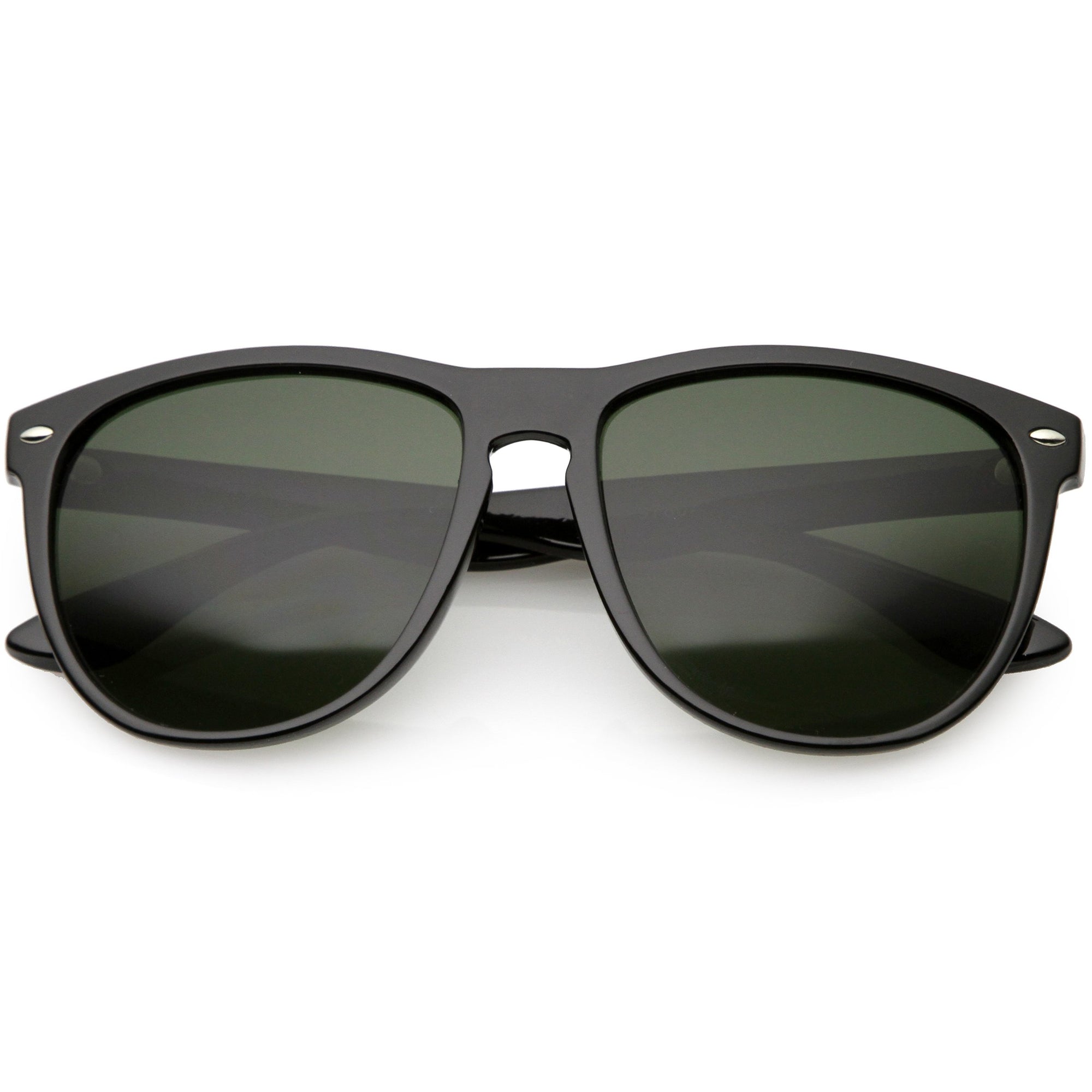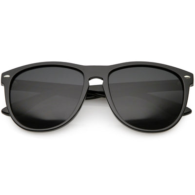 A modern take on a classic design, these oversize horn rimmed sunglasses are exquisitely designed with a classic keyhole nose bridge and wide arms. Accented with metal rivet details on the front frame for added luxe, these are a great pair to take from the city to the beach. Made with a plastic based frame, reinforced metal hinges, and 100% UV protected lenses.