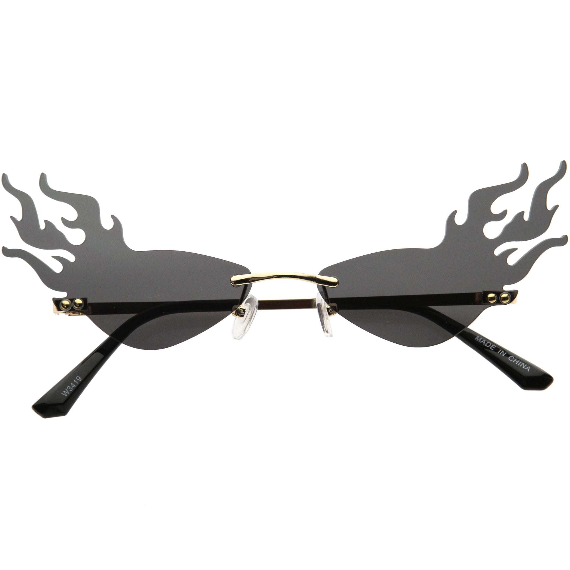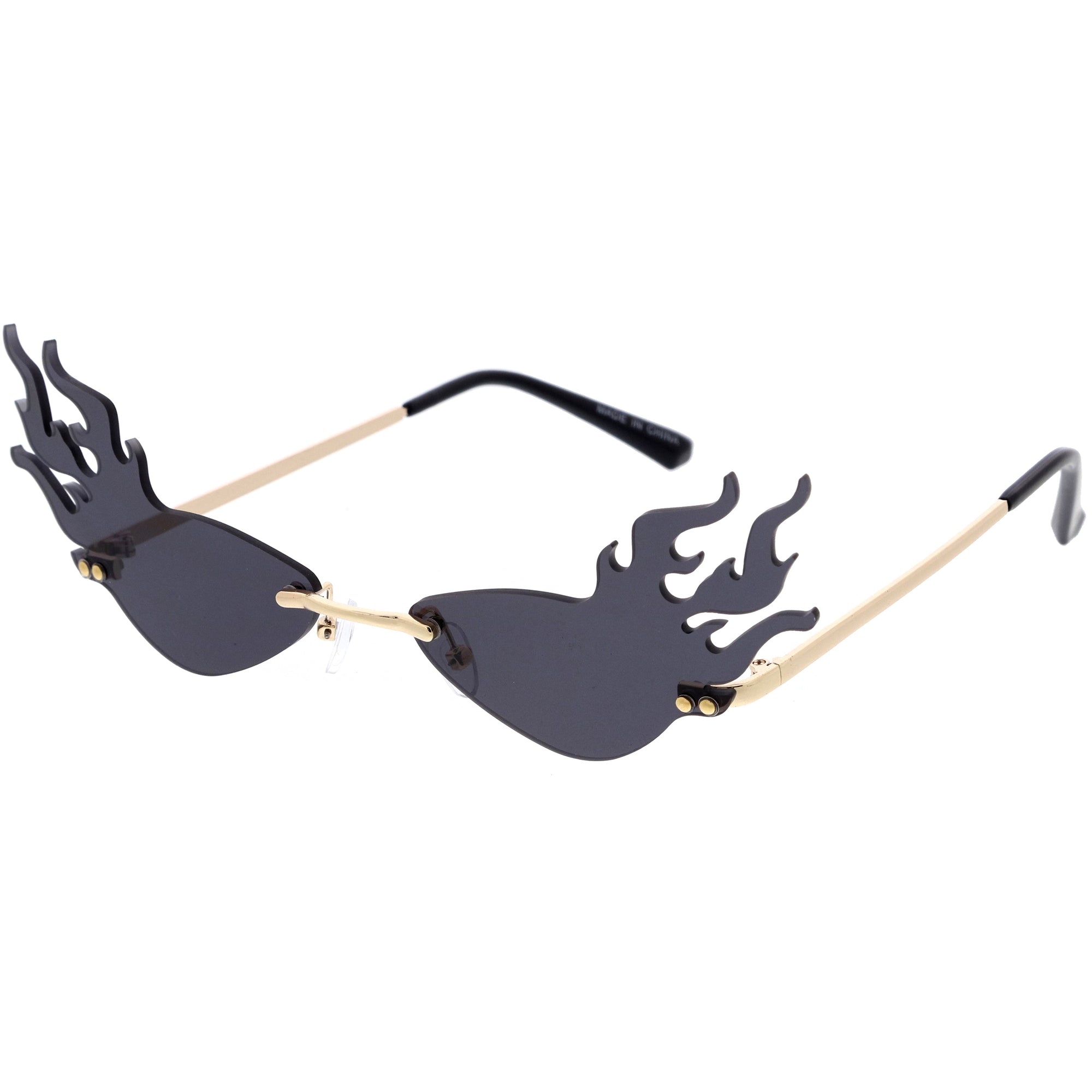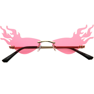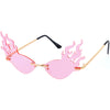 Flaming Fire Color Tinted Lens Oval Rimless Flames Sunglasses D073