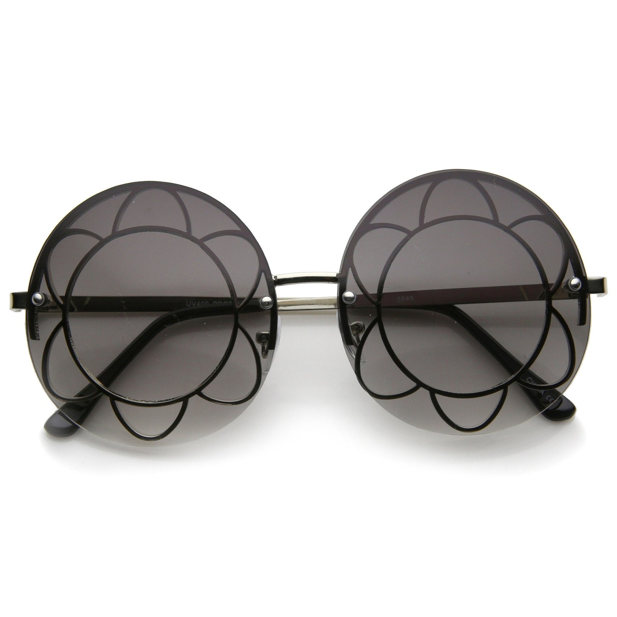 Women's Oversize Rimless Round Outline Cat Eye Sunglasses C203