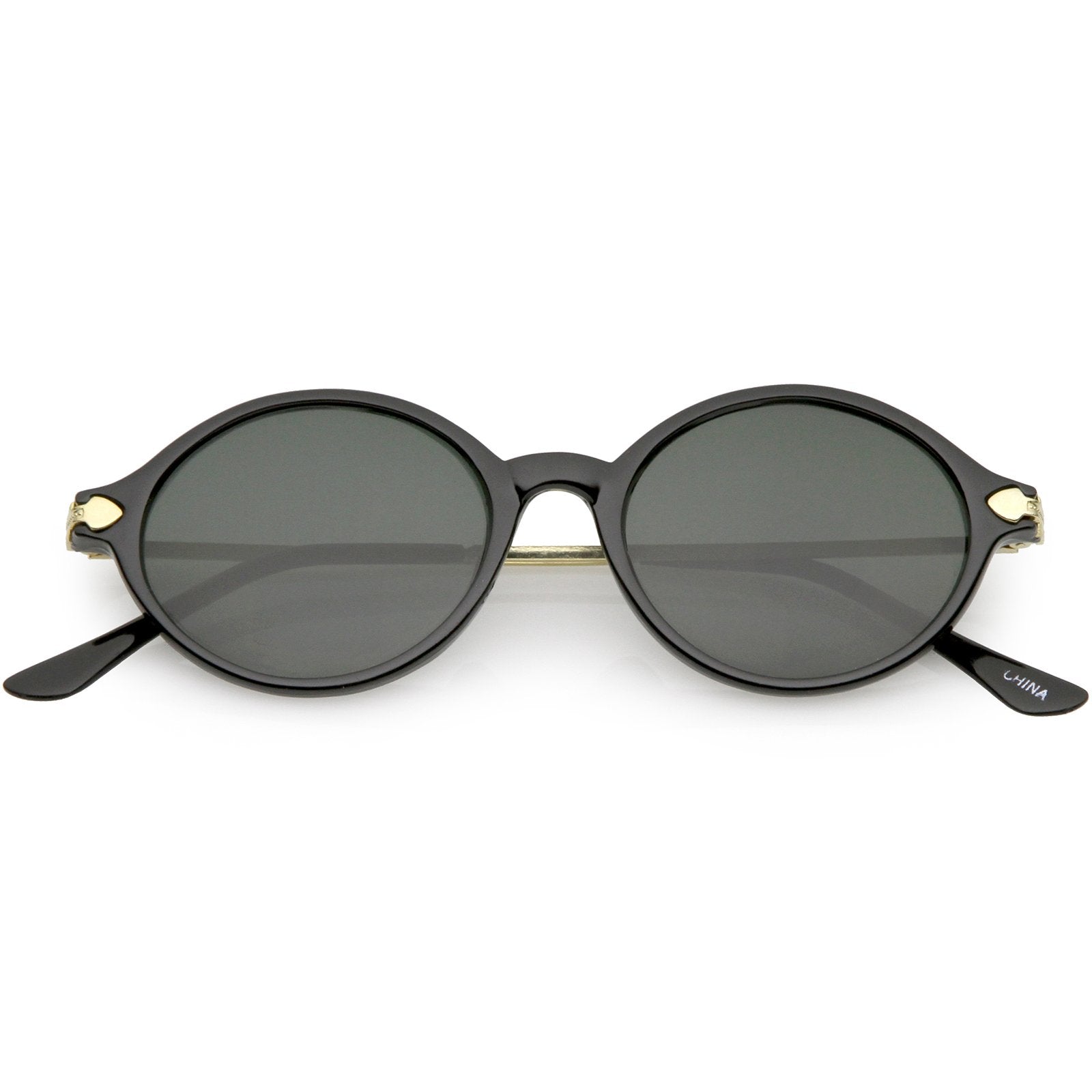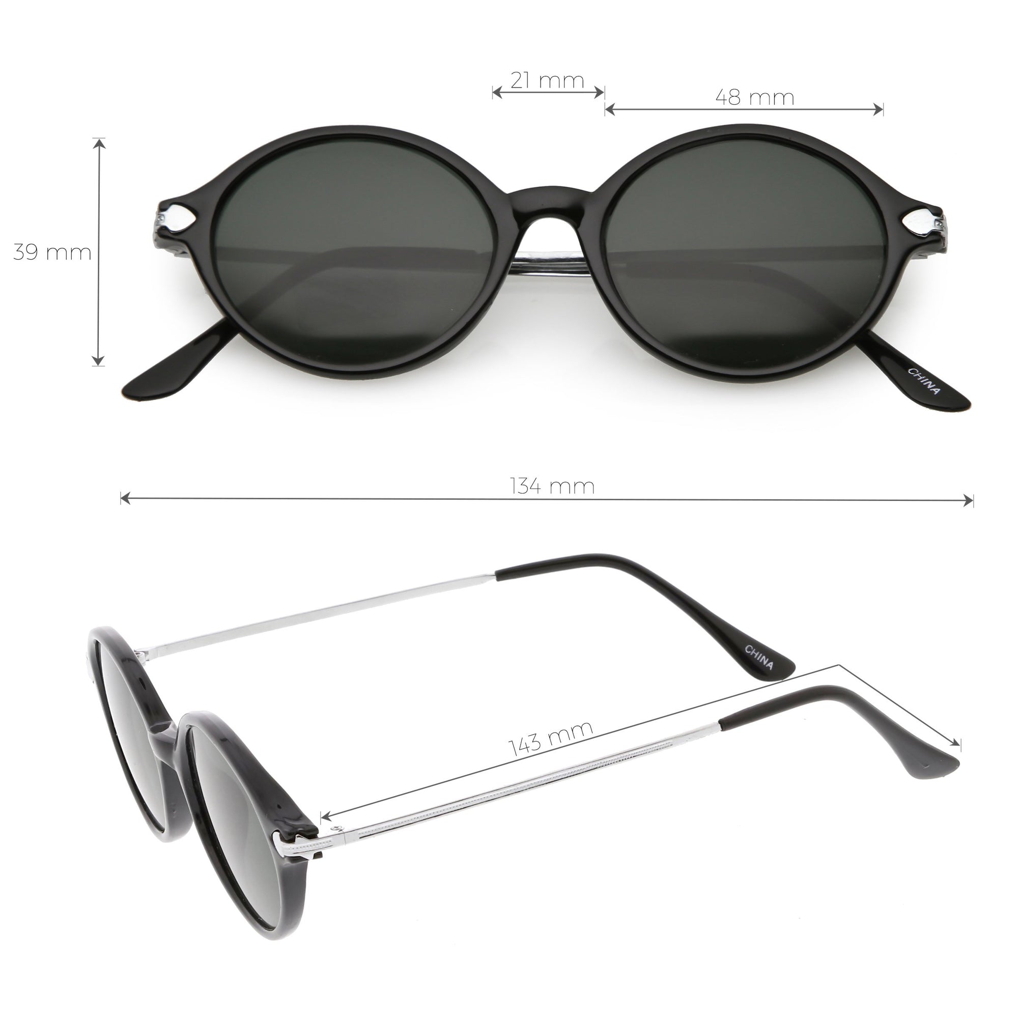 • Classic and cool, these true vintage sunglasses are designed with an oval frame and thin metal arms with engraved details. Accented with impact resistant, round neutral colored glass lenses and metal arrow details at the front, these oval sunglasses are a great vintage piece to add to your everyday looks. Made with a plastic and metal based frame, metal hinges, and 100% UV protected lenses.