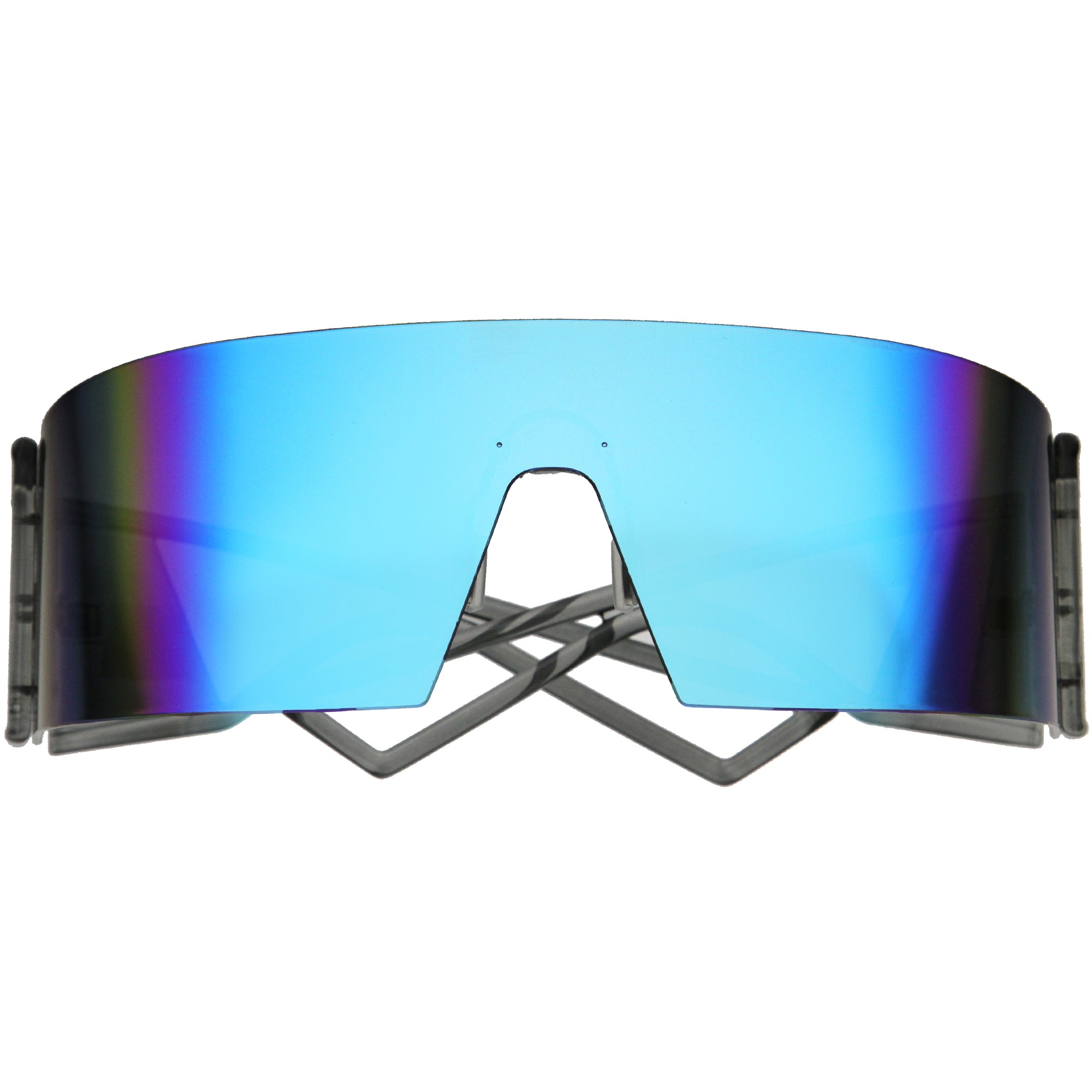 • Designed with retro-futuristic vibes, these are the ultimate wraparound high fashion sunglasses. The full coverage shield sunglasses are crafted with premier polycarbonate lenses. Make a statement while on vacation, on the slopes, or at your next party. Made with UV400 lenses for full protection.
