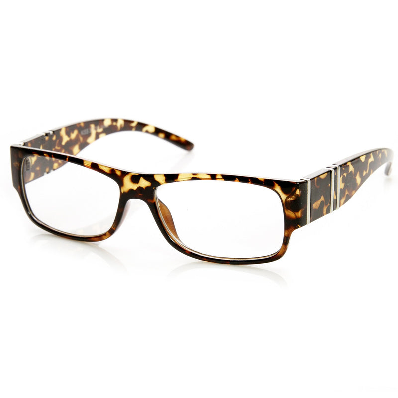 Large Modern Metal Accent Clear Lens Rectangle Glasses 9340