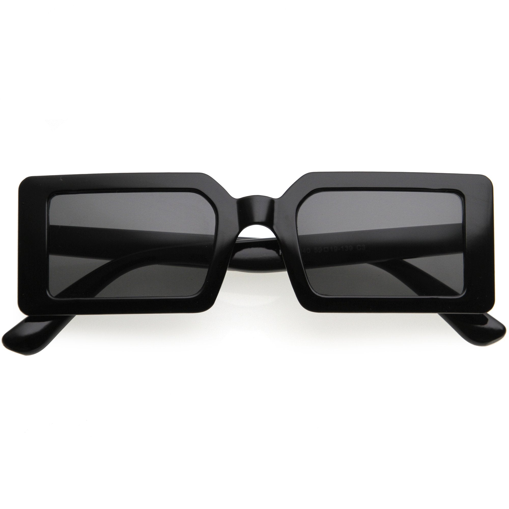 Retro Medium Square Flat Lens Thick Rimmed Rectangle Sunglasses D213