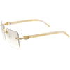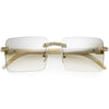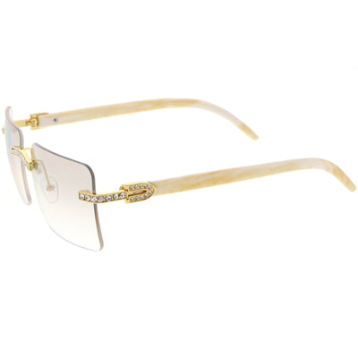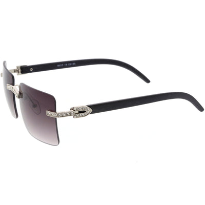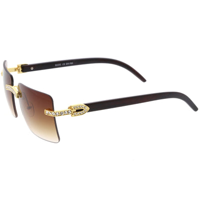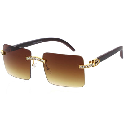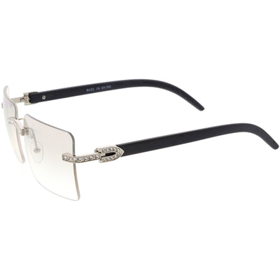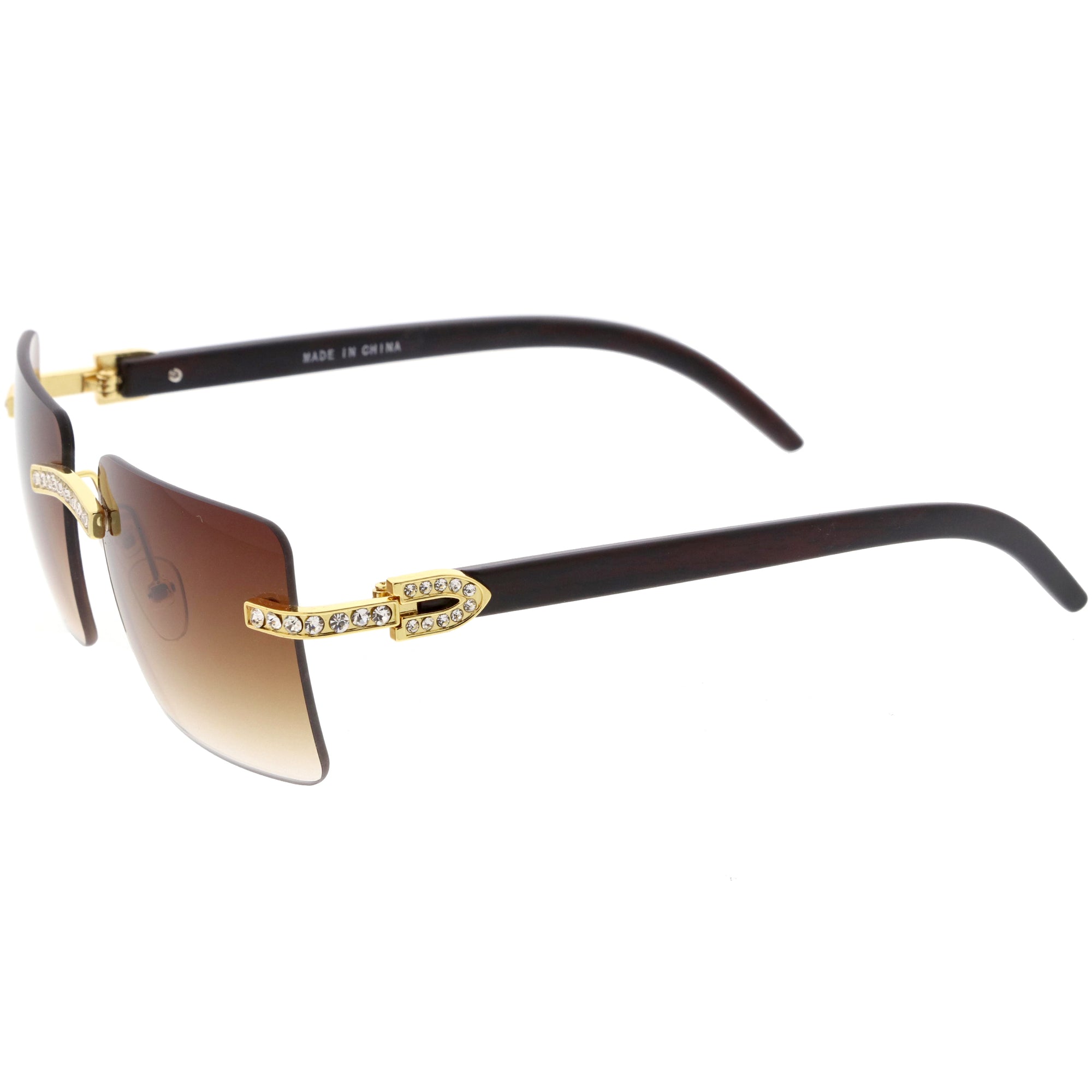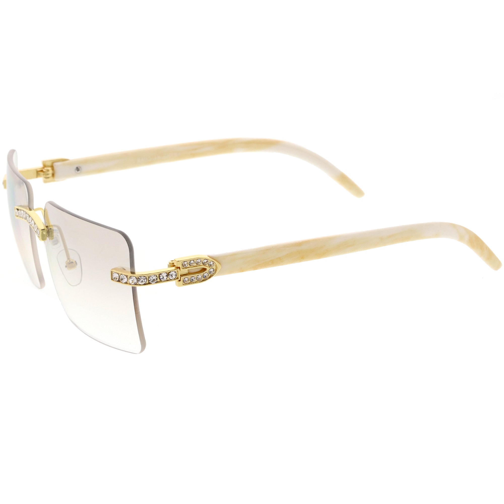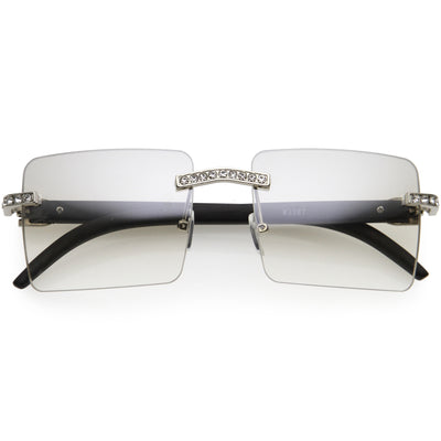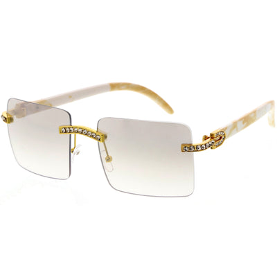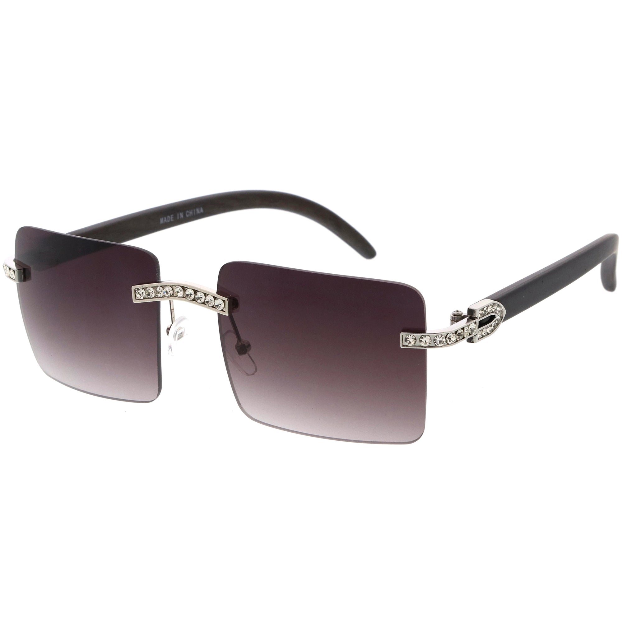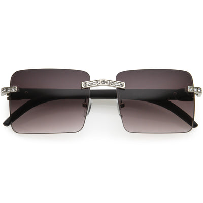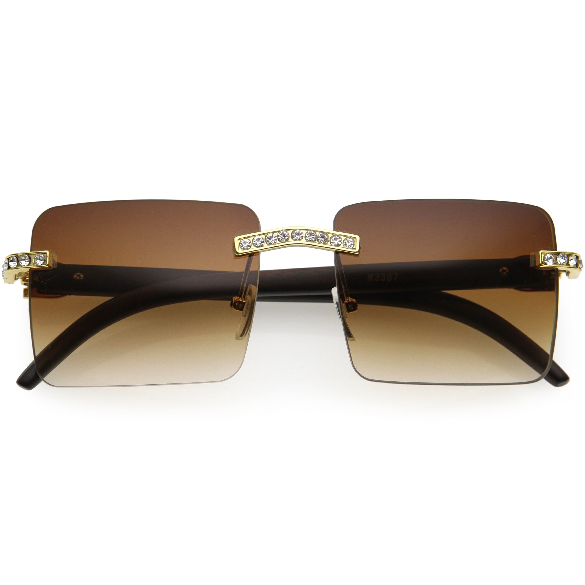 • Tap into the classy 90s trends with these premium rhinestones decorated shades. Featuring fashion rhinestones along the nosebridge and temples, these premium shades are designed with a full rimless square lenses. Made with a metal based frame, adjustable nose pieces, metal hinges, and 100% UV protected lenses.