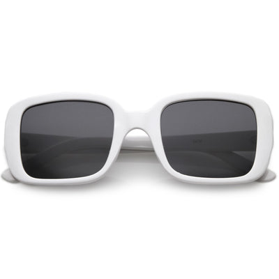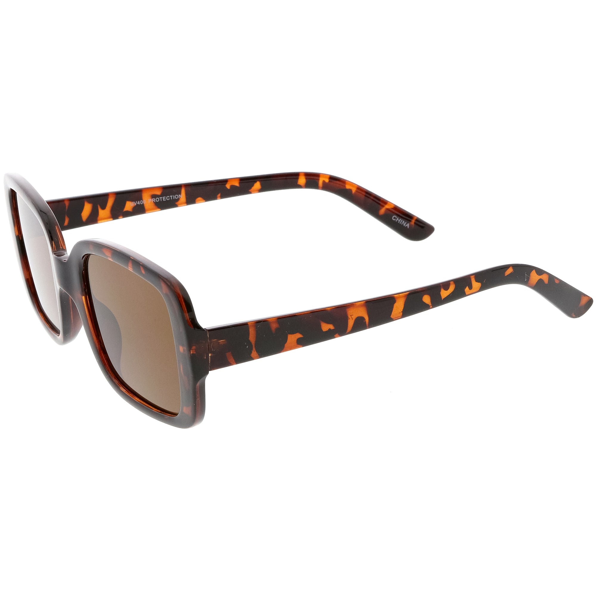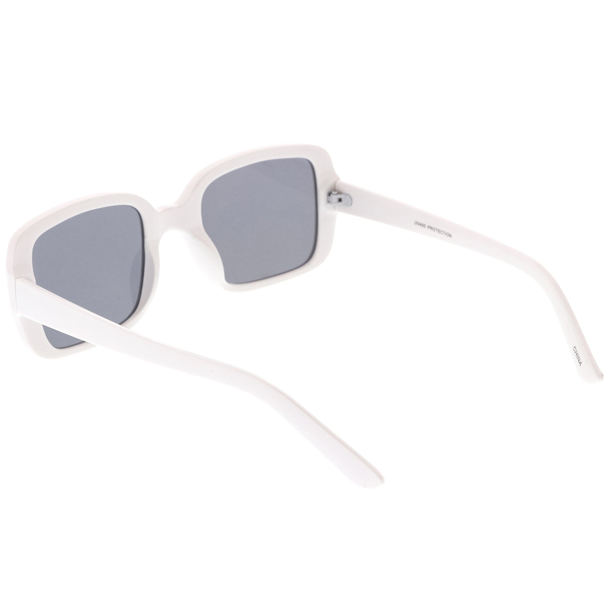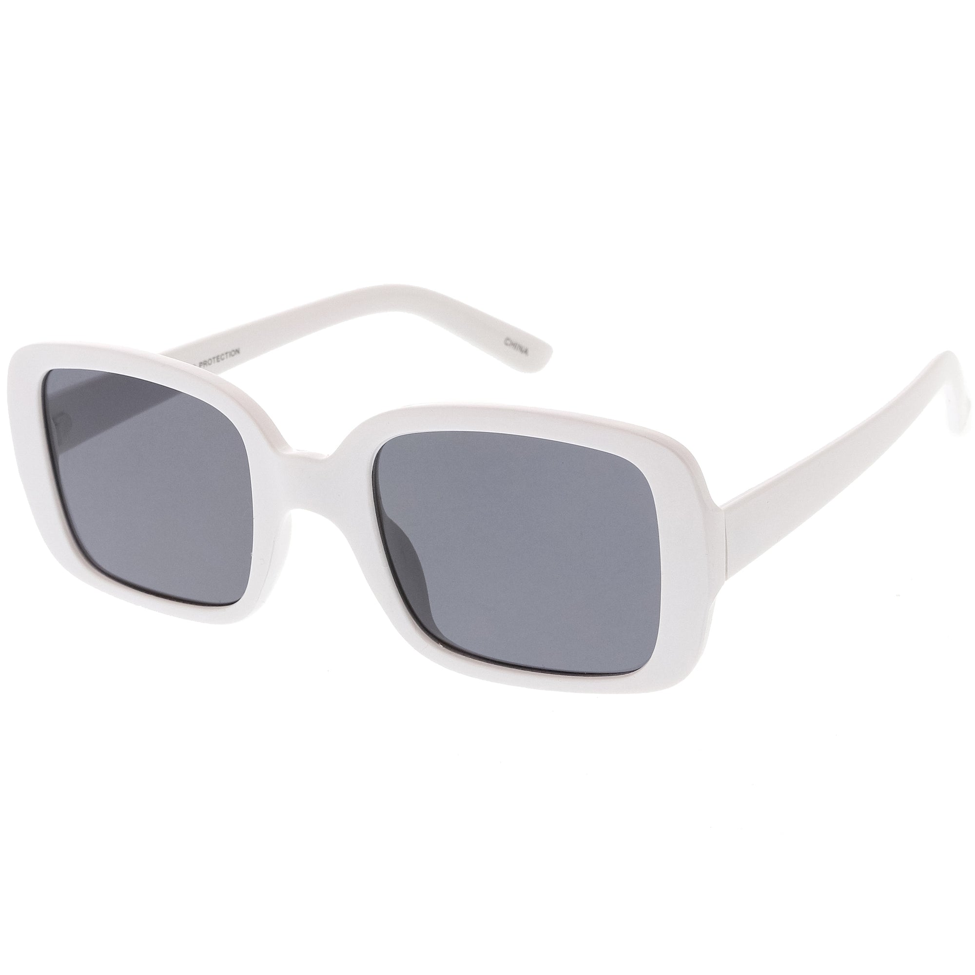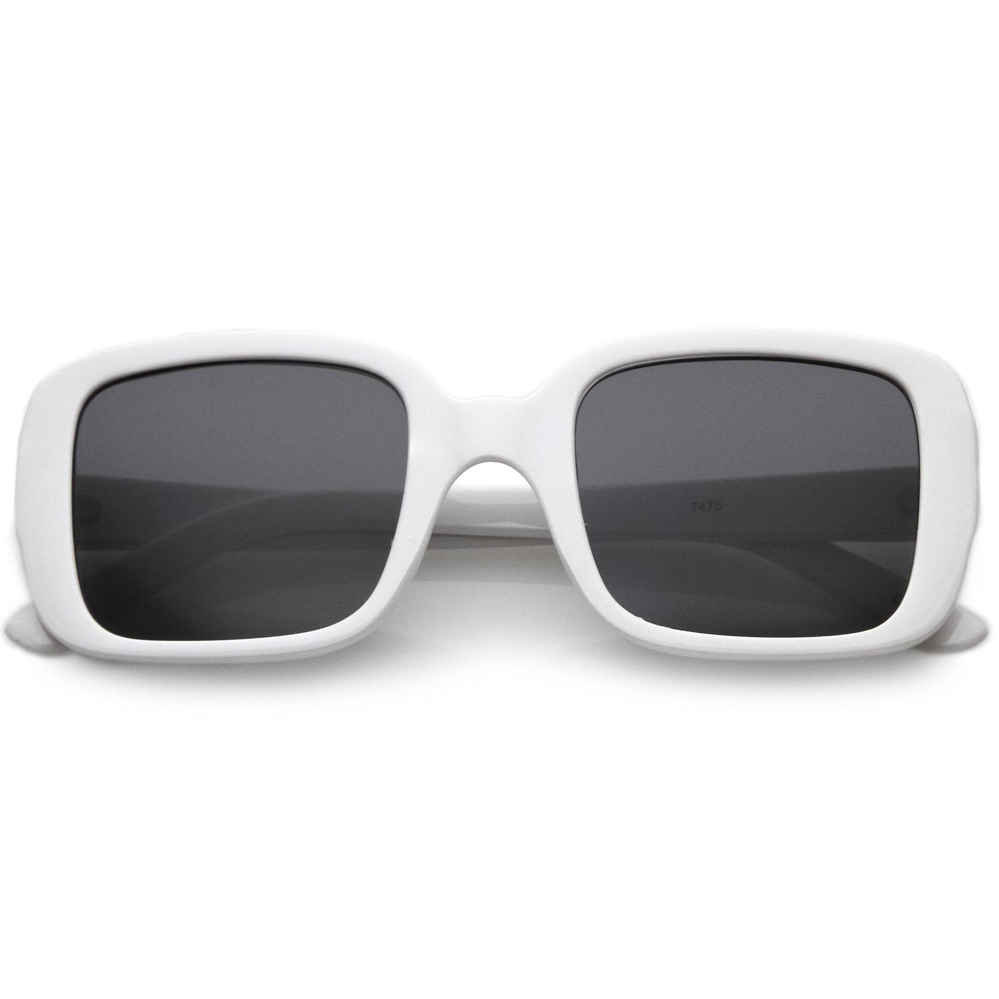 If you're looking for the perfect retro accessory, look no further. This bold, square style is designed with a thick frame so you are sure to stand out. These modern-meets-vintage sunglasses are complete with flat lenses and can be paired with any outfit. Finished with a plastic based frame, reinforced metal hinges, and 100% UV protected lenses.