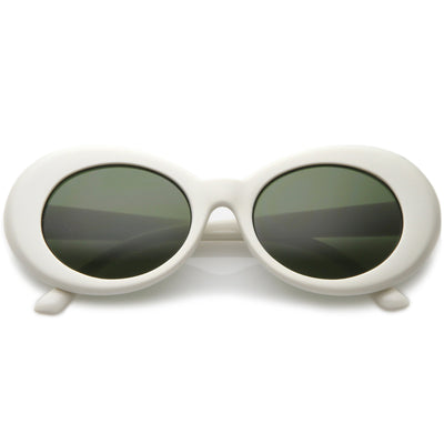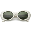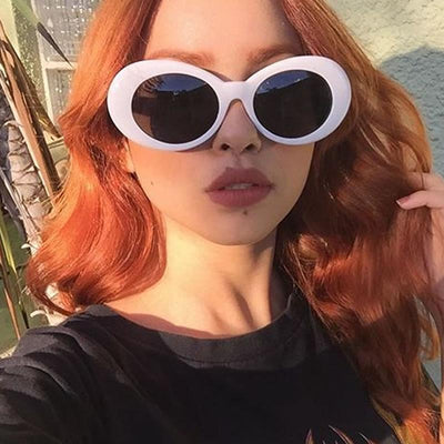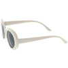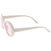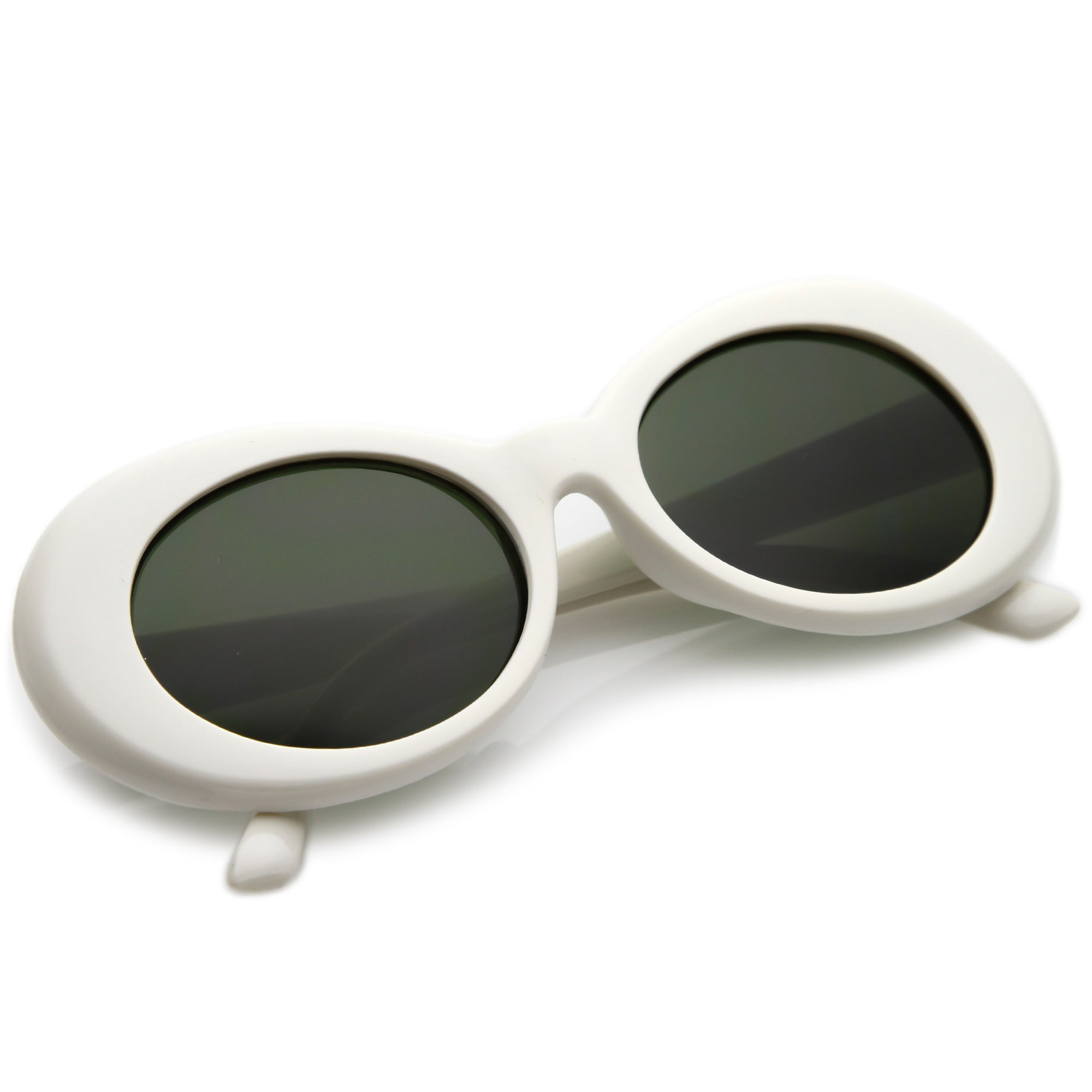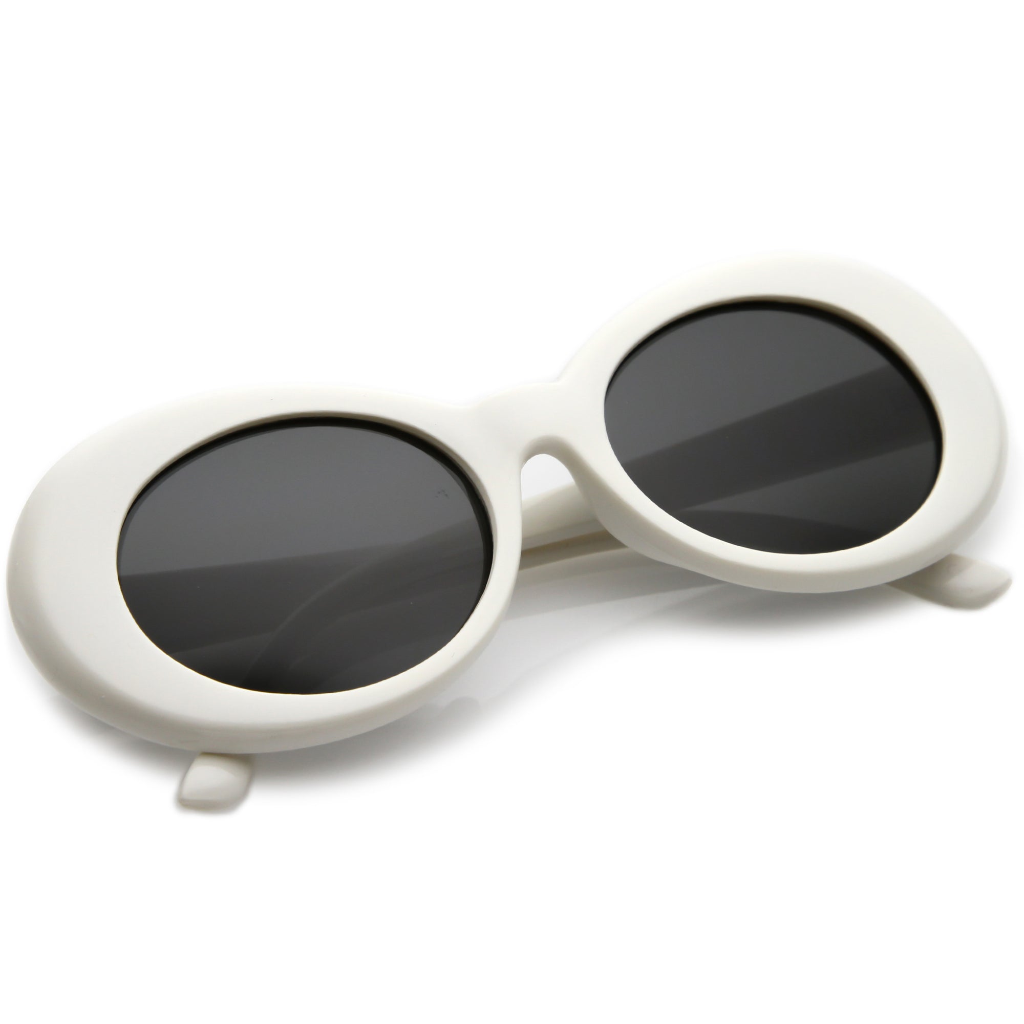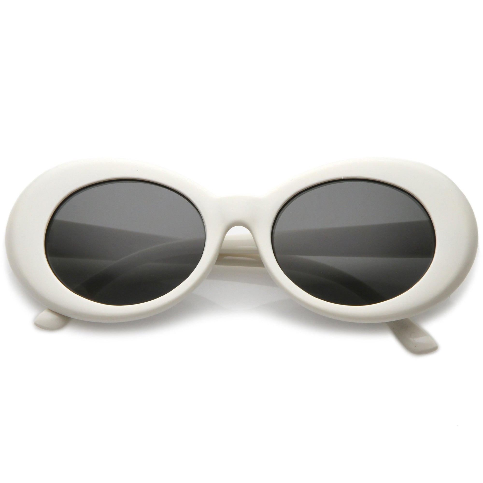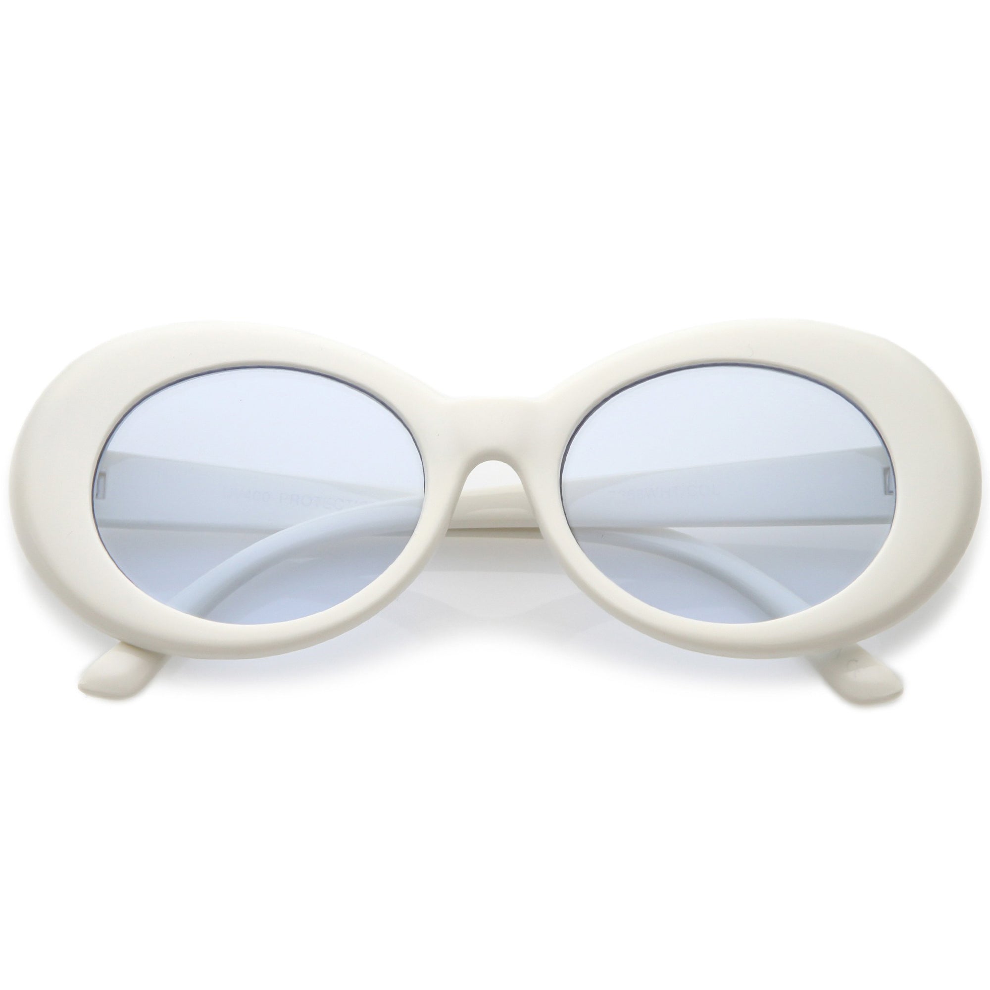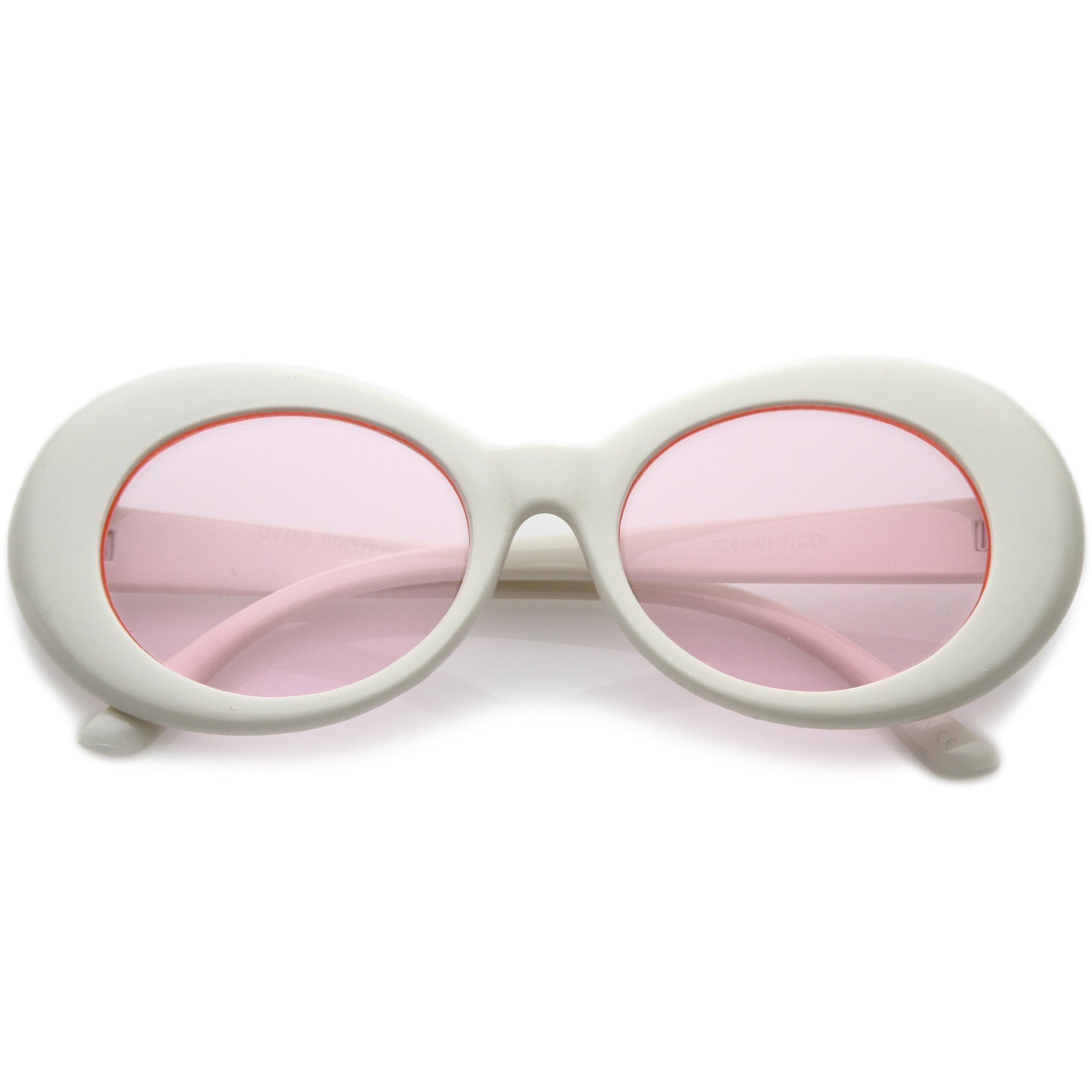 Retro and cool, these white oval clout sunglasses are designed with a rounded oval-shaped frame and round lenses in various colors. Complete with arms that taper at the ends and reinforced metal hinges, these chic sunglasses add a fun element to any outfit. Made with plastic based frame and 100% UV protected lenses.