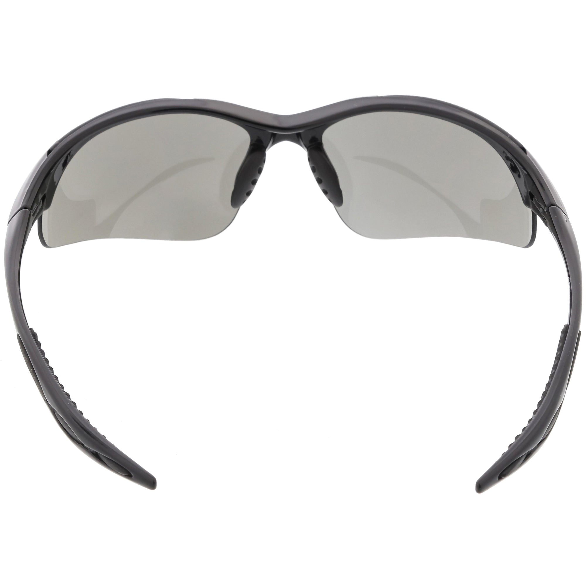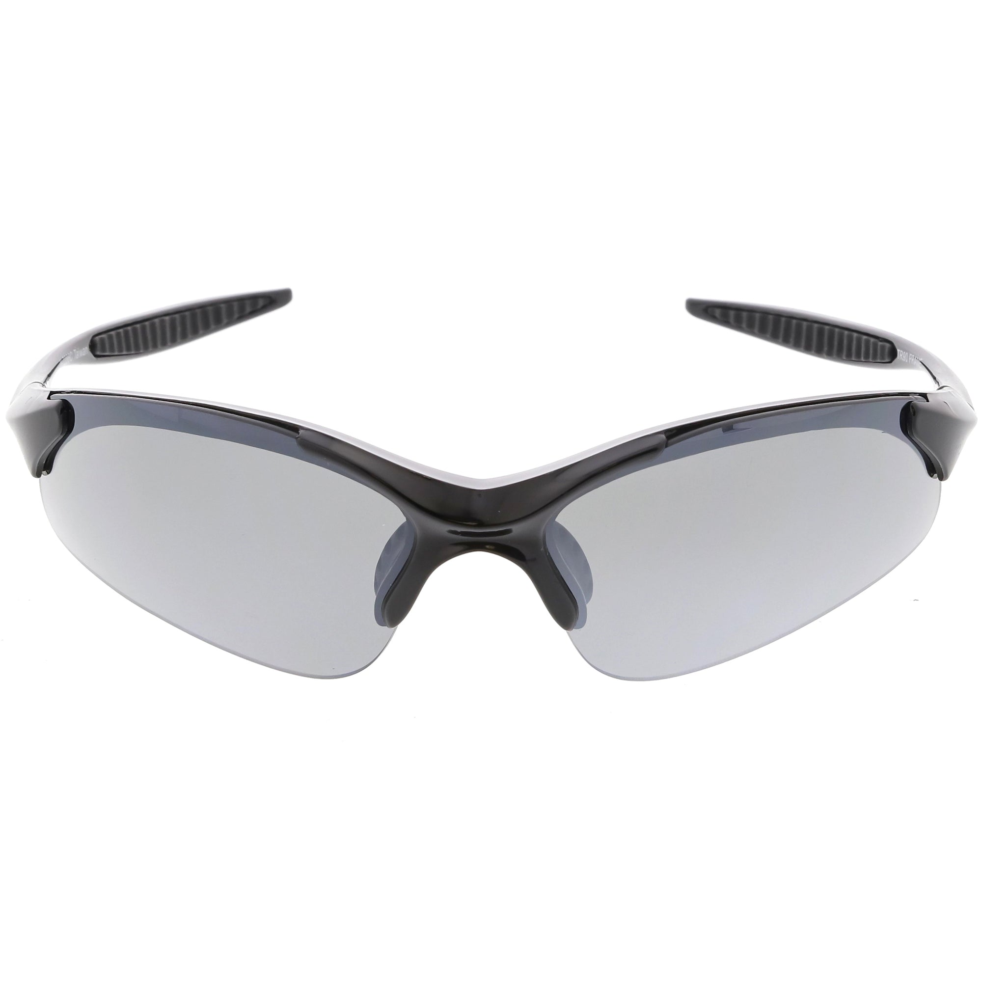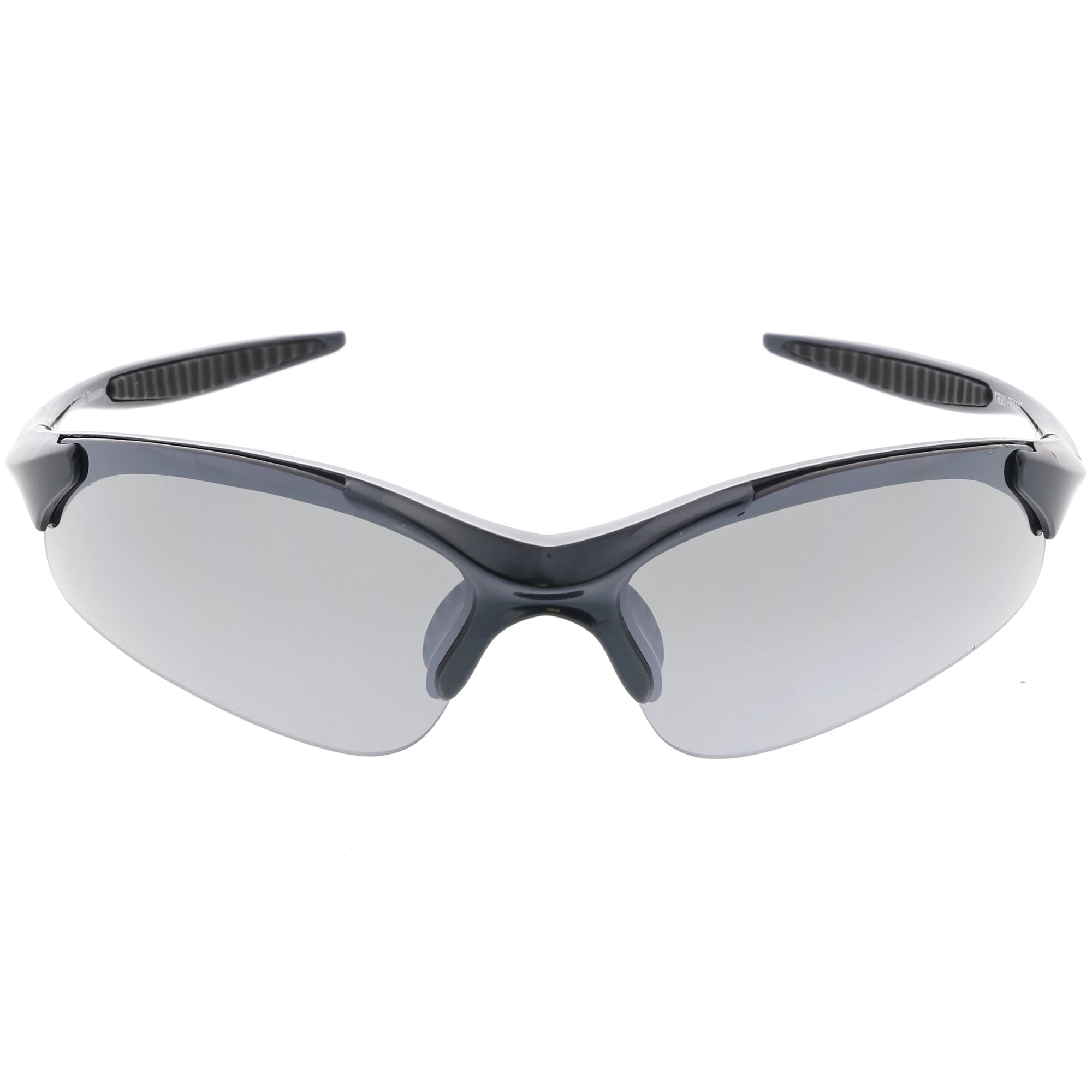 Keep up with the competition in these sports wrap sunglasses exquisitely crafted with TR-90 plastic for a lightweight and durable frame. A curved smoke colored lens makes it easier to match with your looks, while ventilated non-slip nose pads and injected mold temples keep them on and comfortable during perspiration. A great sport sunglasses that is ideal for multiple sports, these wrap sunglasses were built to perform. Made pin hinges, and 100% UV protected lenses.