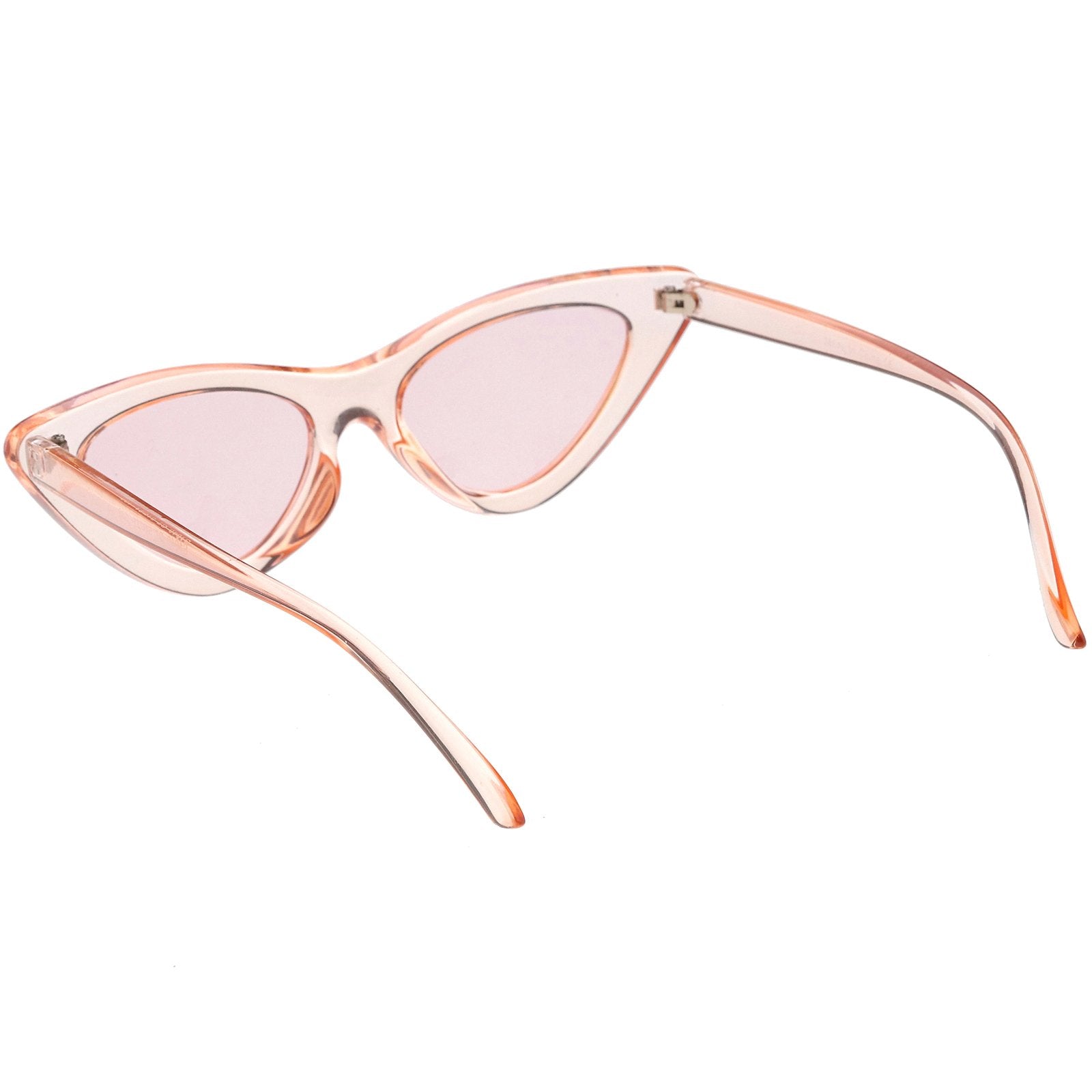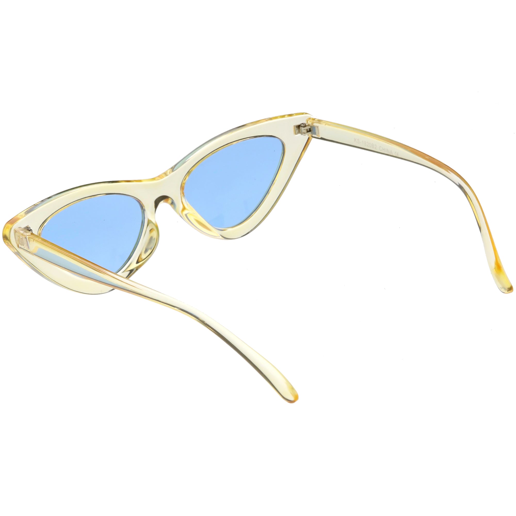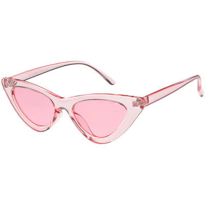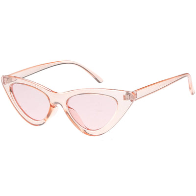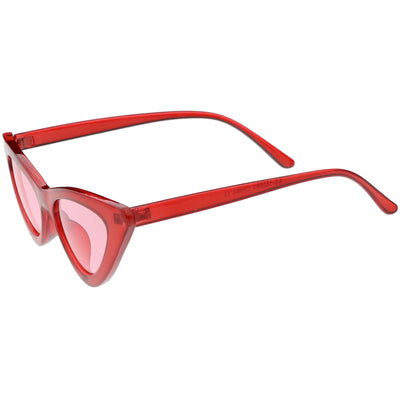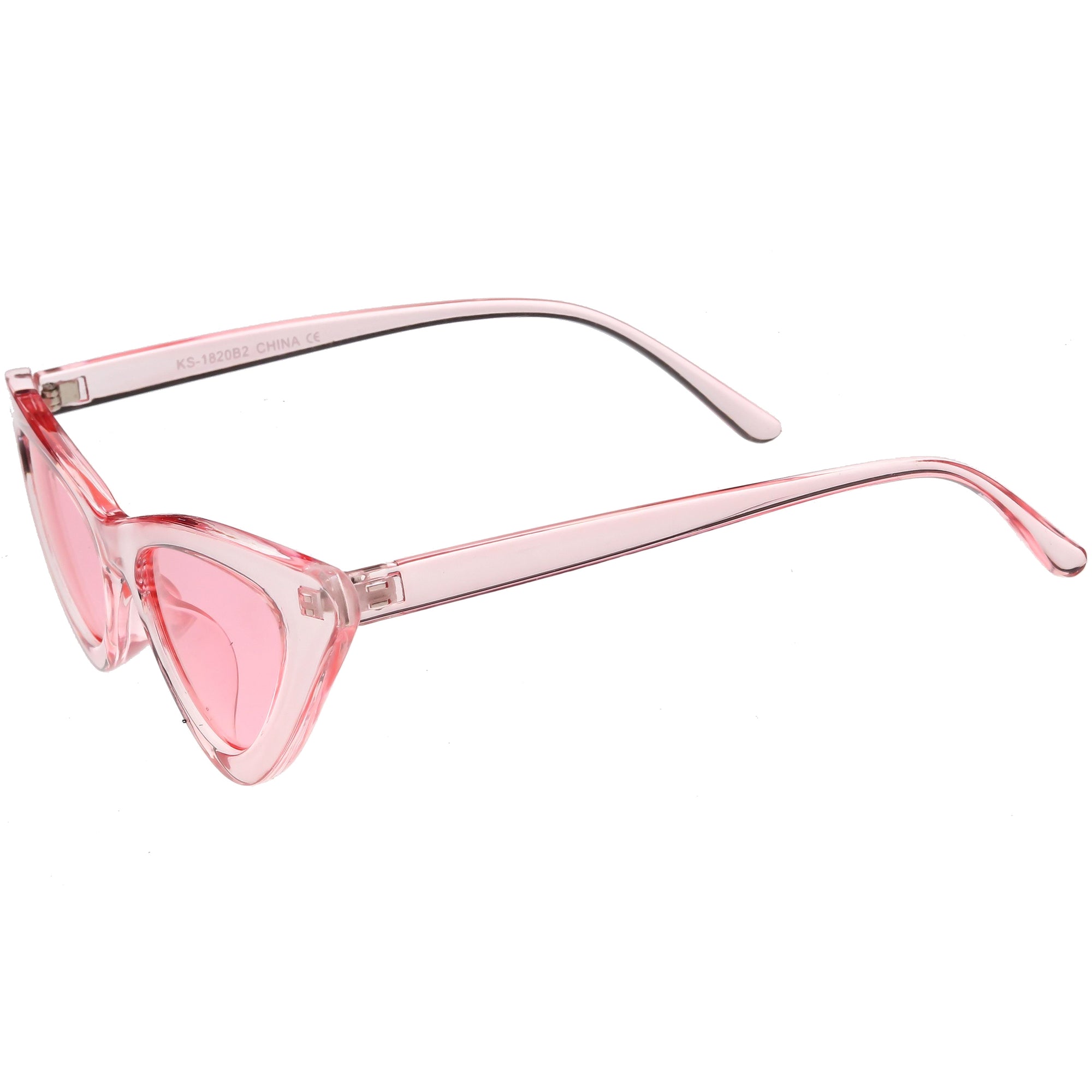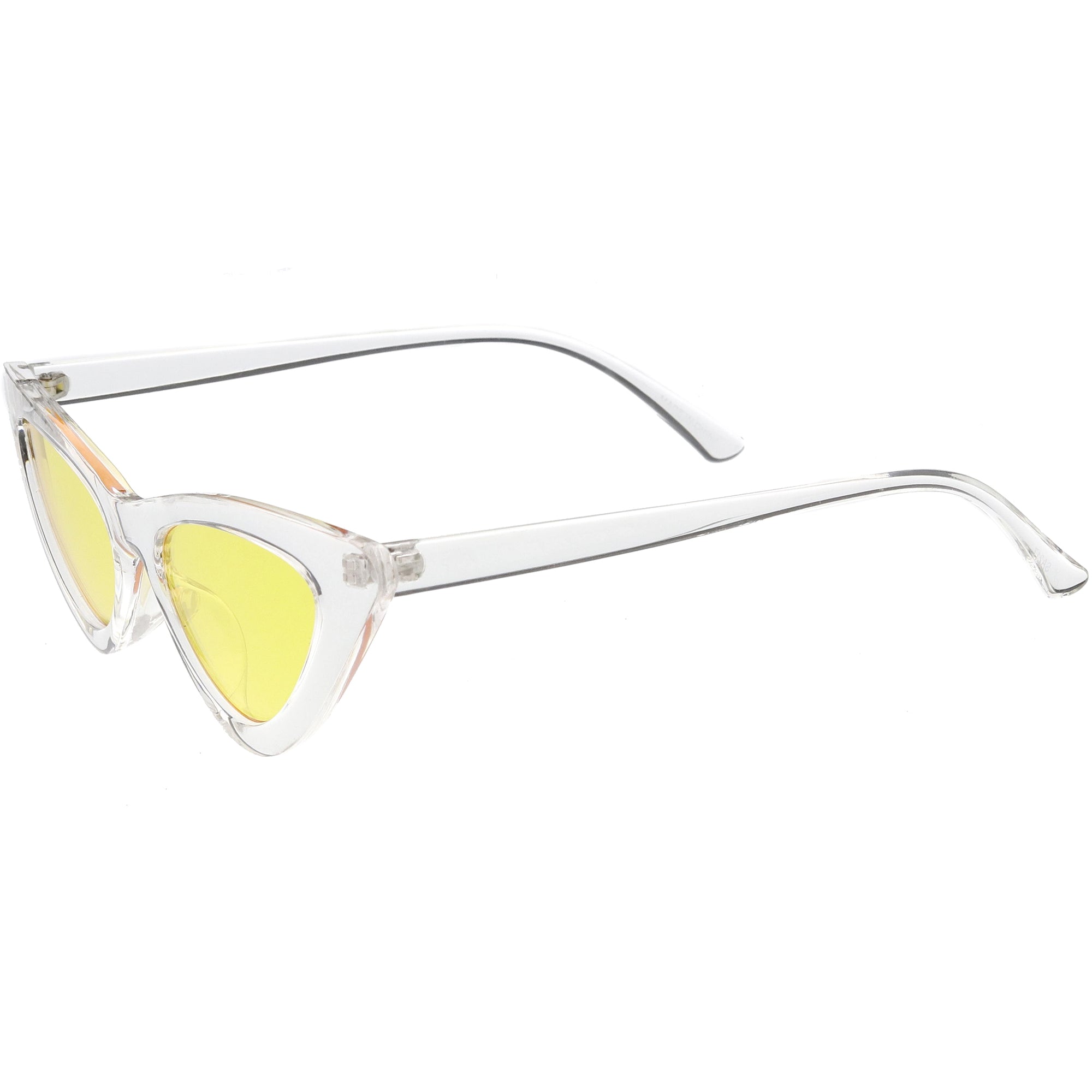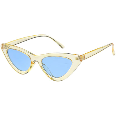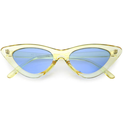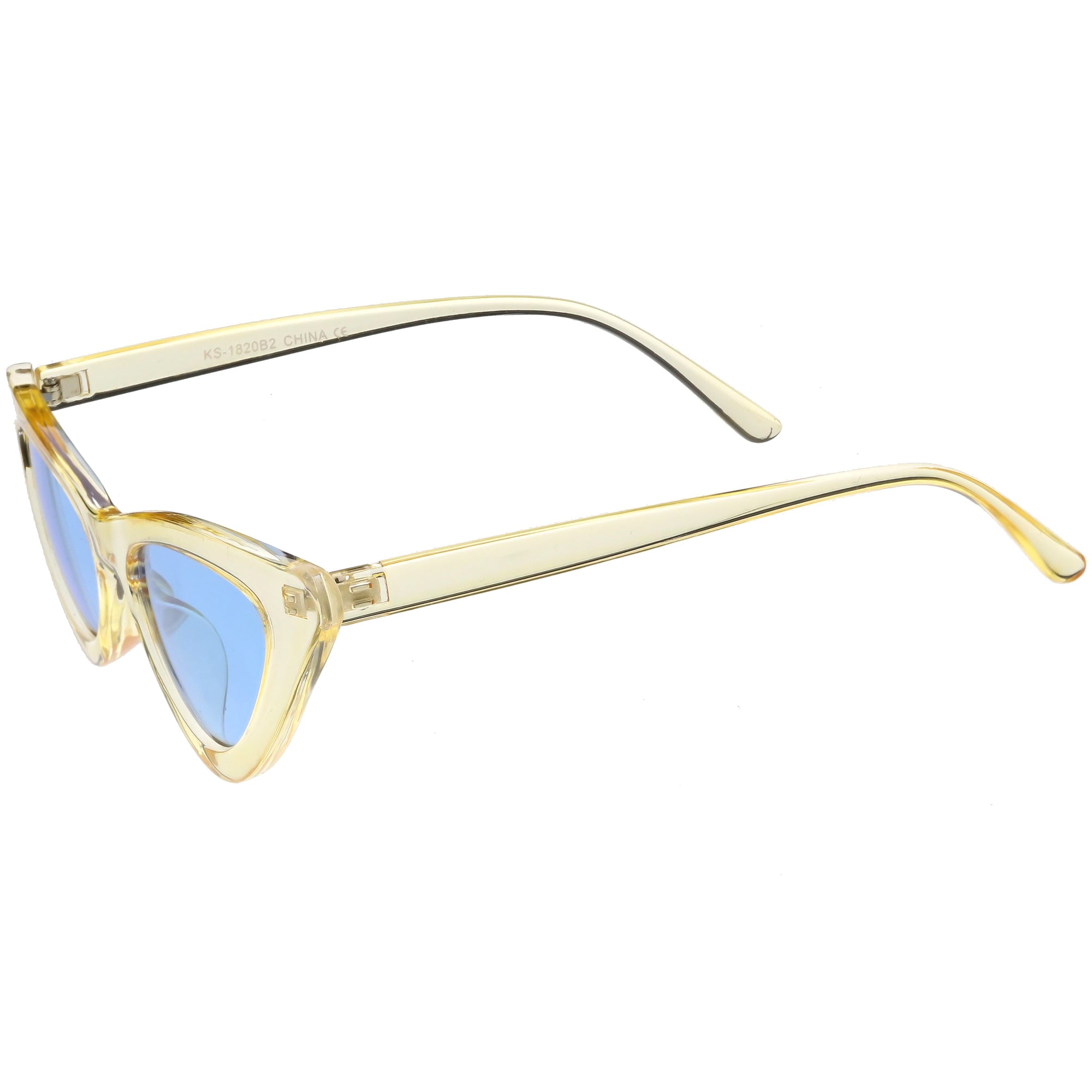 Retro 1990's fashion cat eye sunglasses featuring an exaggerated translucent cat eye frame. Complete with color tinted lenses and high sitting arms, these stylishly chic sunglasses are the must-have accessory to accent this season's outfits. Made with a plastic based frame, reinforced metal hinges, and 100% UV protected lenses.