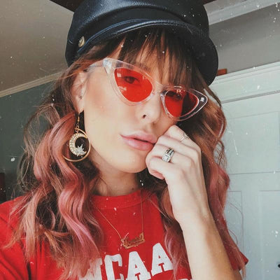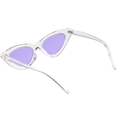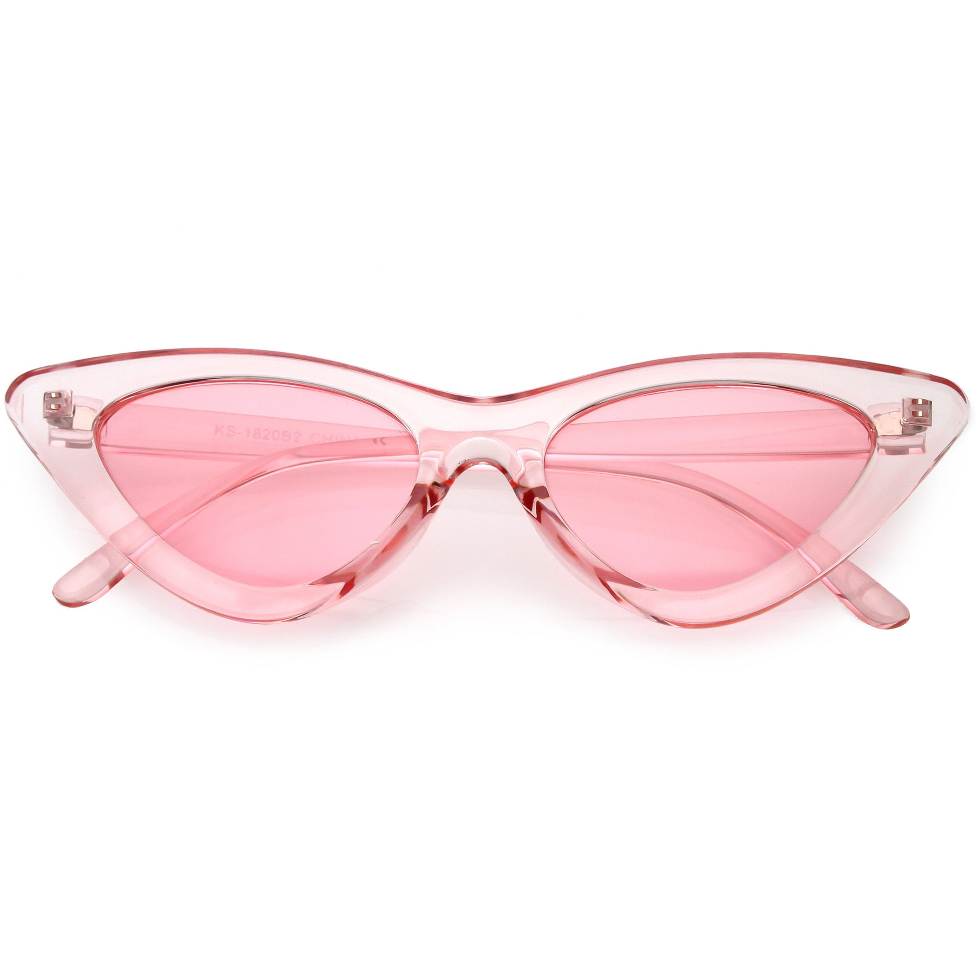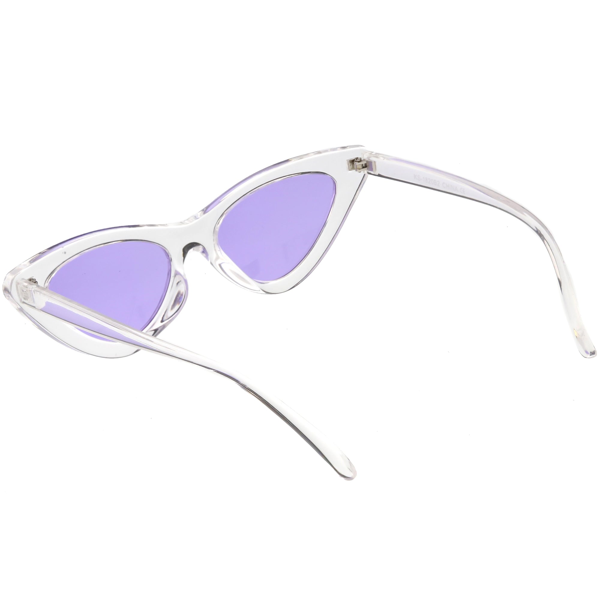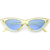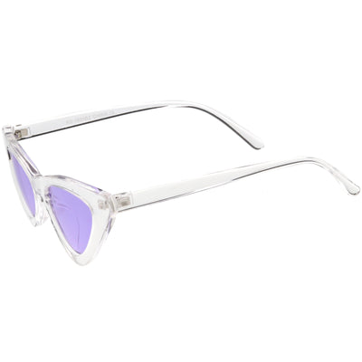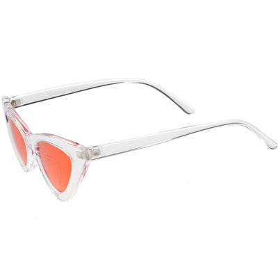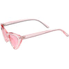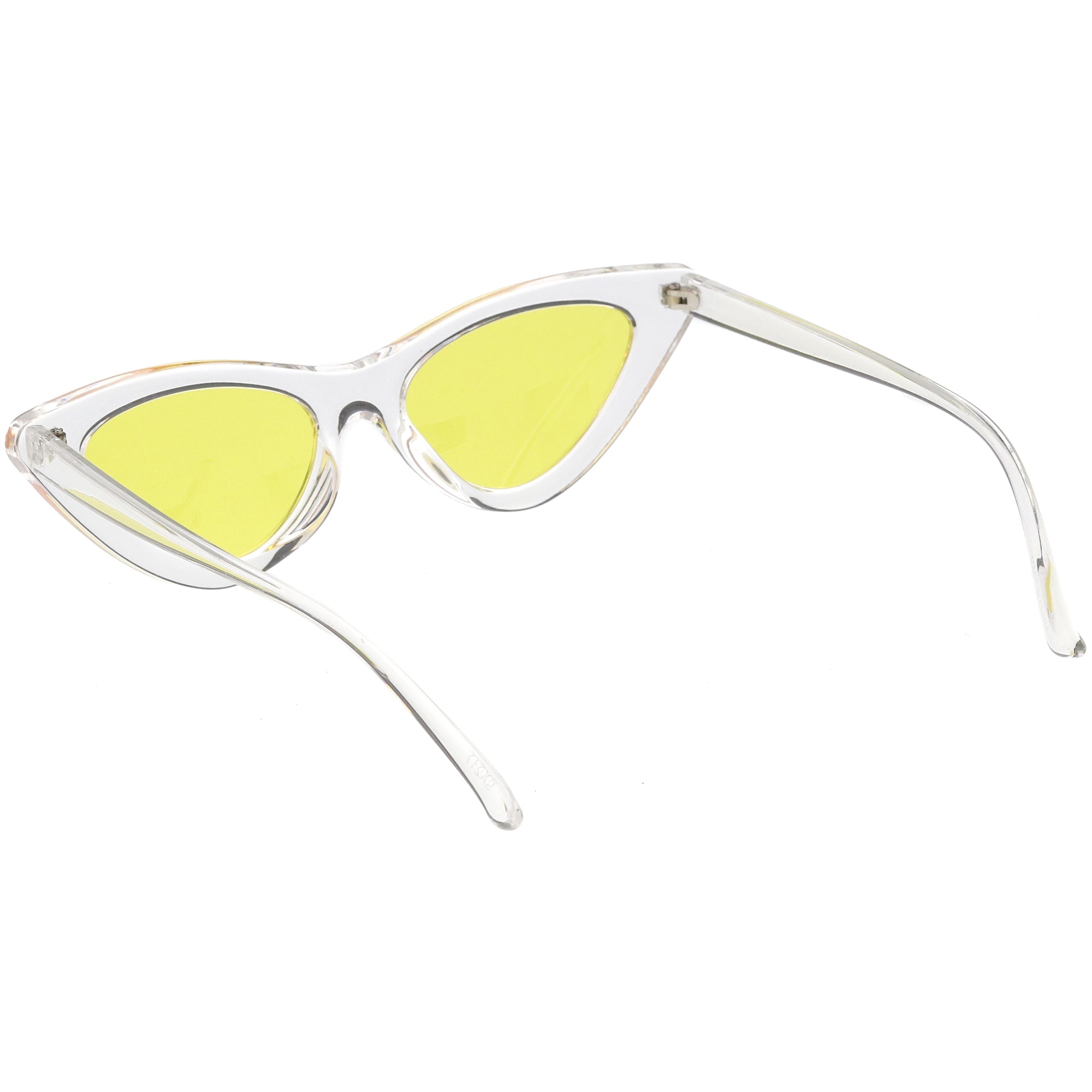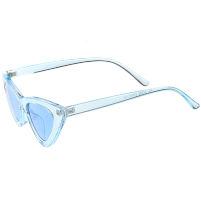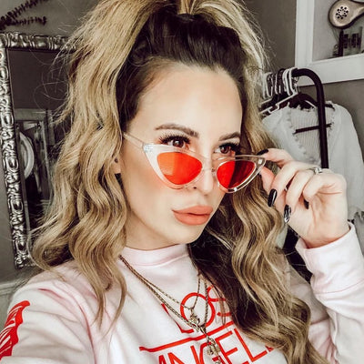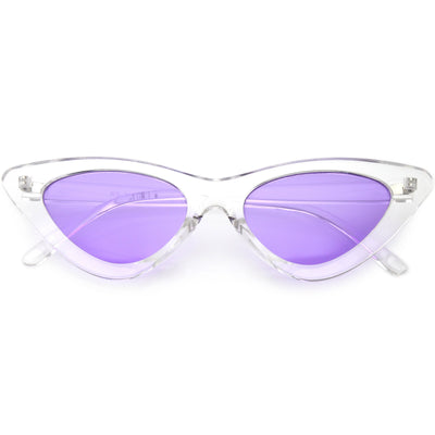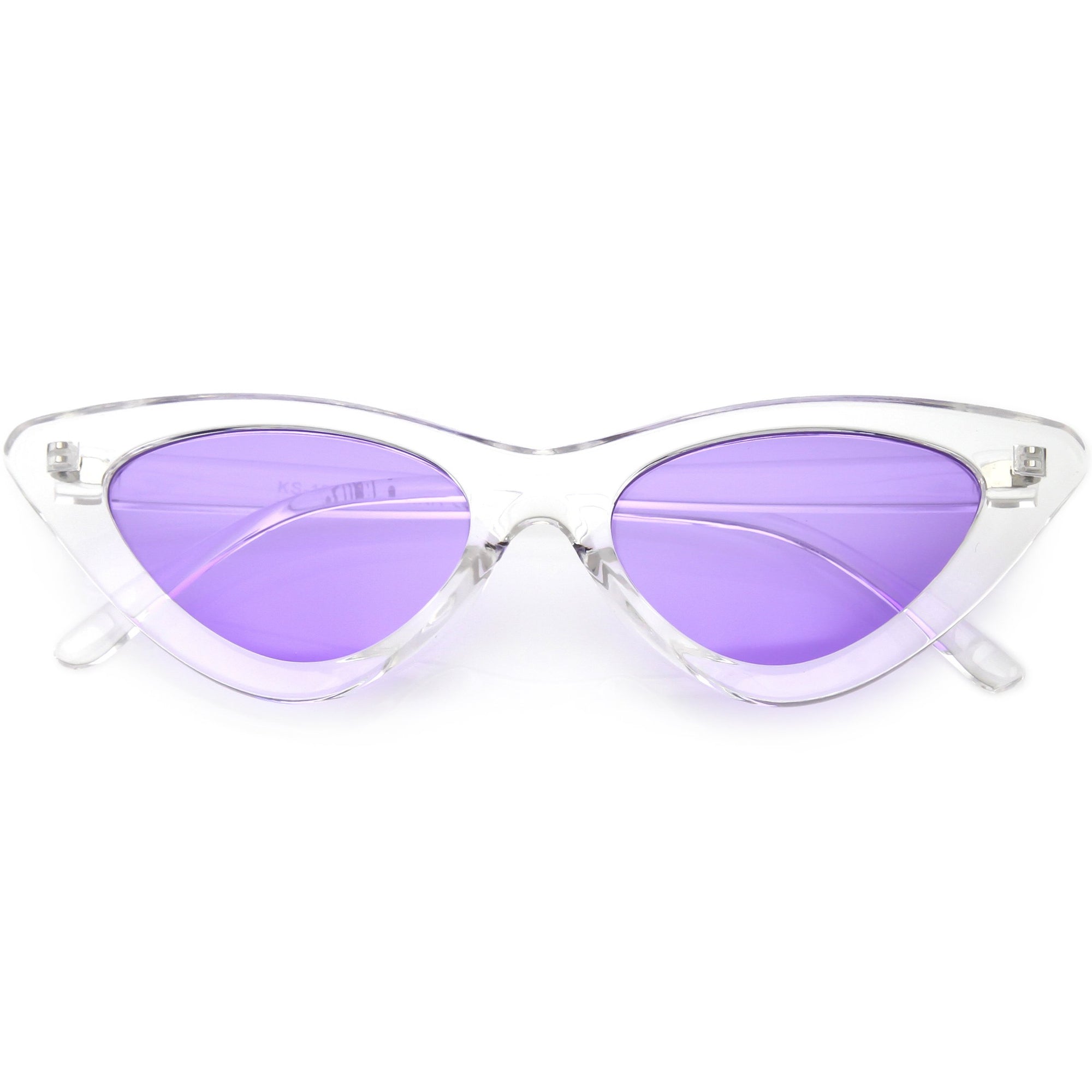 Retro 1990's fashion cat eye sunglasses featuring an exaggerated translucent cat eye frame. Complete with color tinted lenses and high sitting arms, these stylishly chic sunglasses are the must-have accessory to accent this season's outfits. Made with a plastic based frame, reinforced metal hinges, and 100% UV protected lenses.