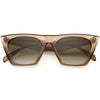 Classic cat eye sunglasses that features a semi thick plastic frame with neutral colored lenses. These minimal yet bold women's sunglasses stands out as a fashion staple piece for the everyday work professionals. Made with a plastic based frame, metal hinges and UV400 protected lenses.