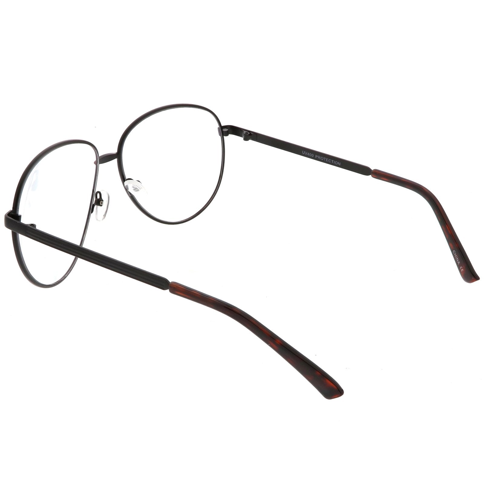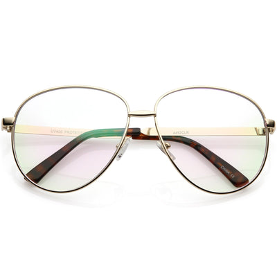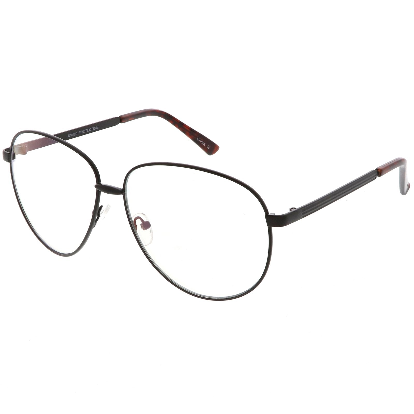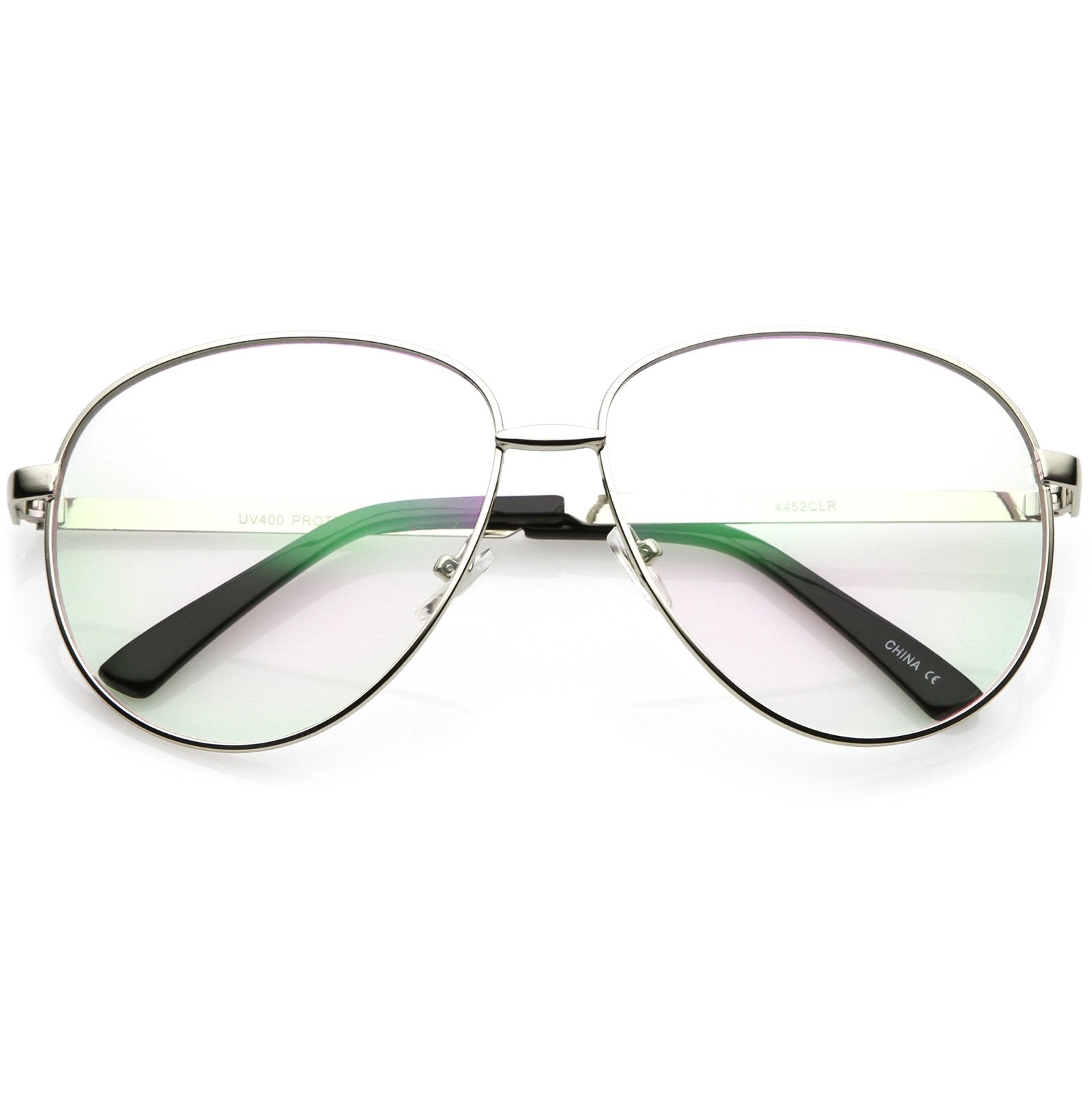 A classic design meshed with a clear lens makes for the perfect go-to accessory. This easy-to-wear oversize style is designed with a classic metal aviator frame and teardrop clear lens, making it simple to pair. Completed with a metal based frame, adjustable English style nose pieces, metal hinges, and 100% UV protected lenses.